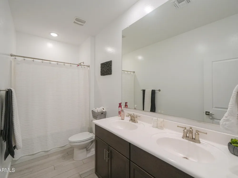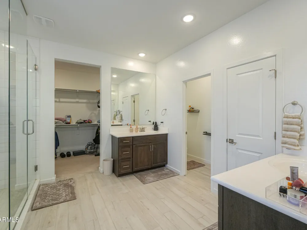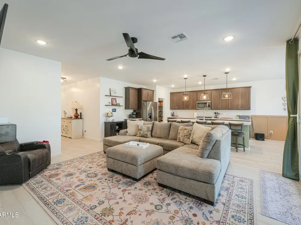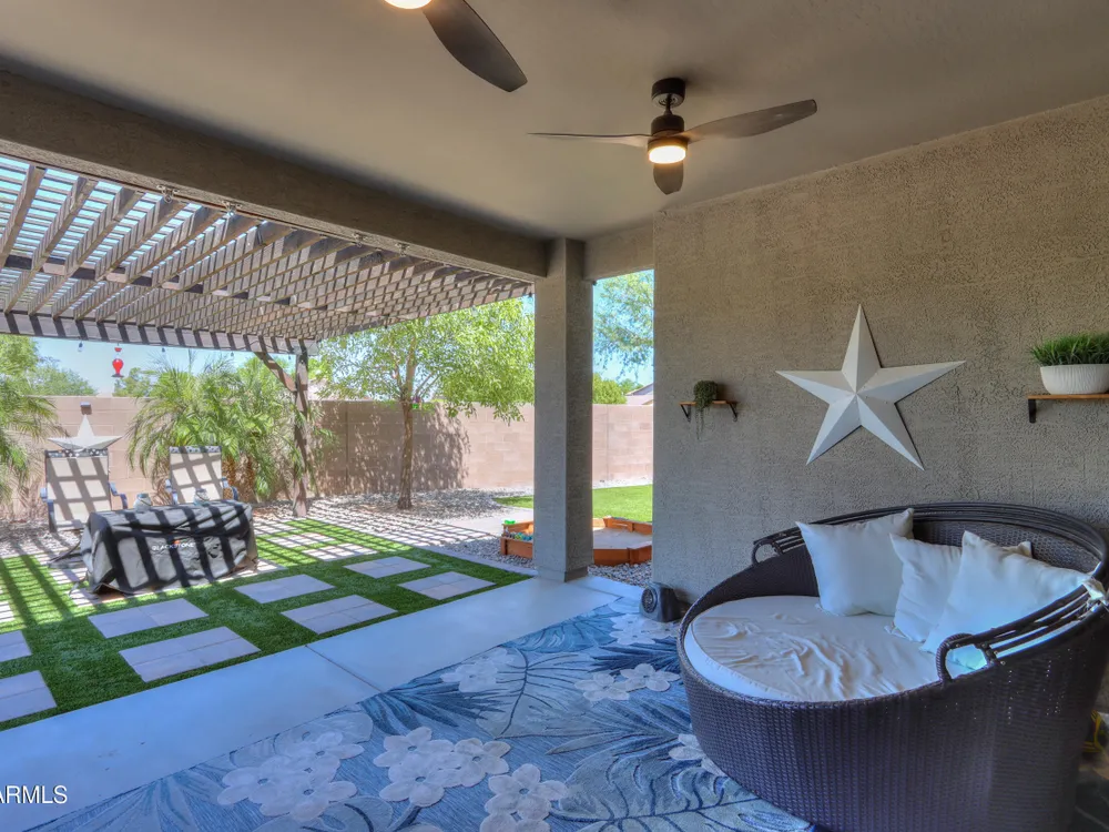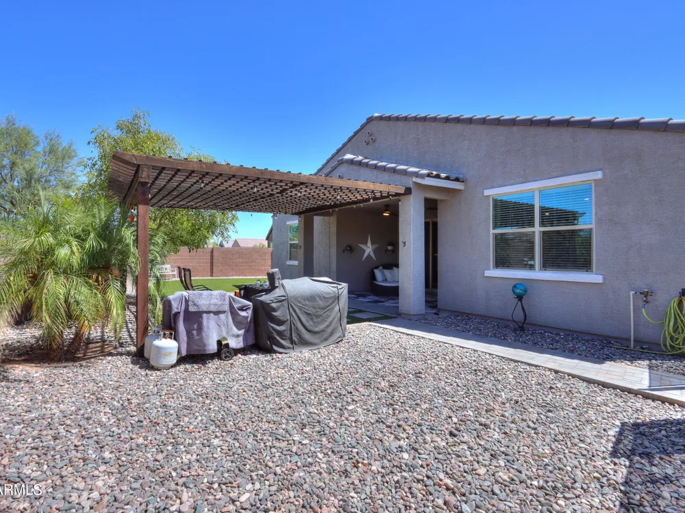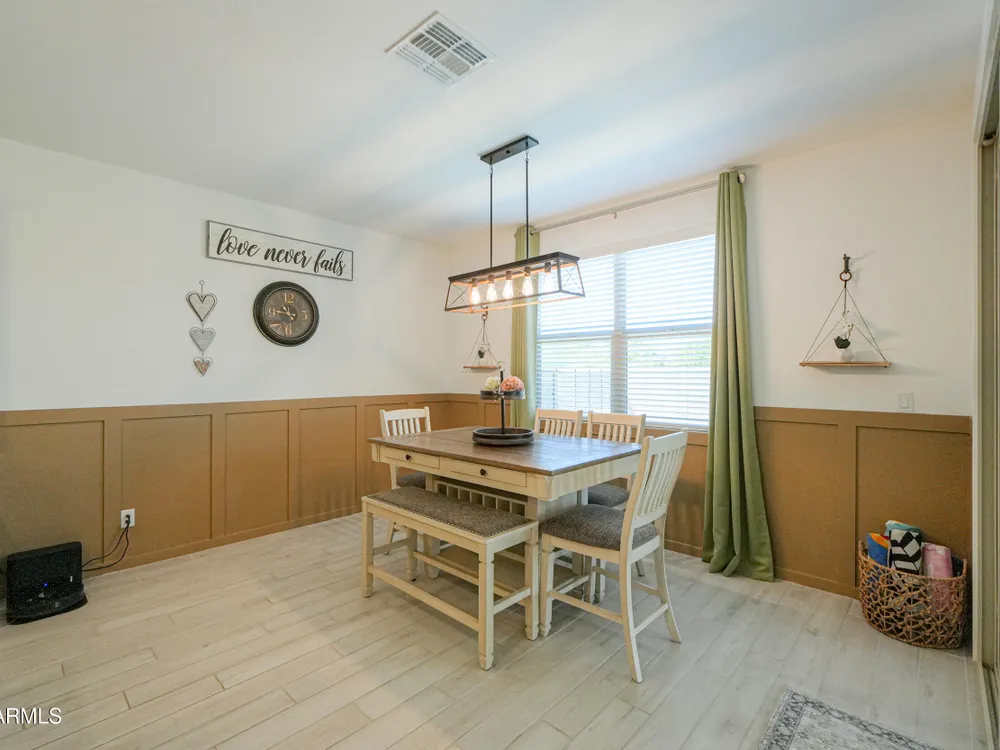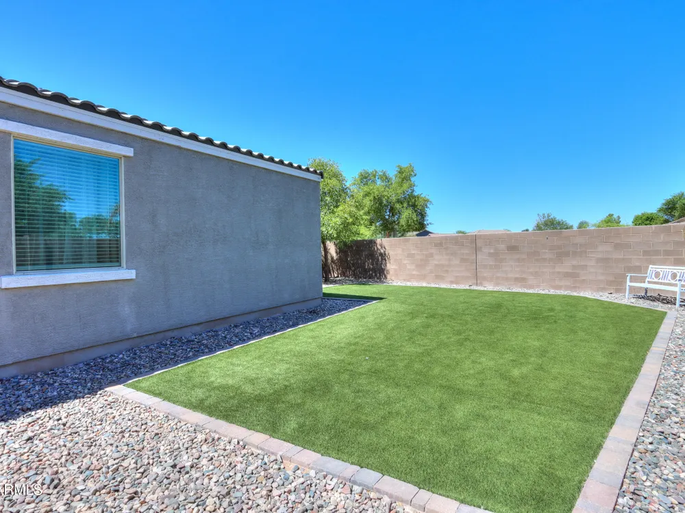 What an absolutely beautiful home! This 5 bedroom, 3 bath home with a split floorplan features a gorgeous master bath with a large walk-in closet, huge eat-in kitchen with Quartz countertops, cabinets galore, farm sink, walk-in pantry, kitchen island, breakfast bar and all appliances. Additional features include wood tile flooring, ceiling fans throughout, utility sink in laundry, triple panel sliding doors to the patio, R/O system with water softener and a 3 car tandem garage. Two of the bedrooms can be converted to a guest quarter if needed, each bedroom has a walk-in closet. The backyard is an oasis, covered patio, pergola, artificial turf and a salt water pool that is temperature controlled (heating & cooling). Located in the family section of Mission Royale, you also have access to the waterpark, playground and walking/biking paths. Conveniently located to shopping, dining and the freeway leading to both Tucson or Phoenix.