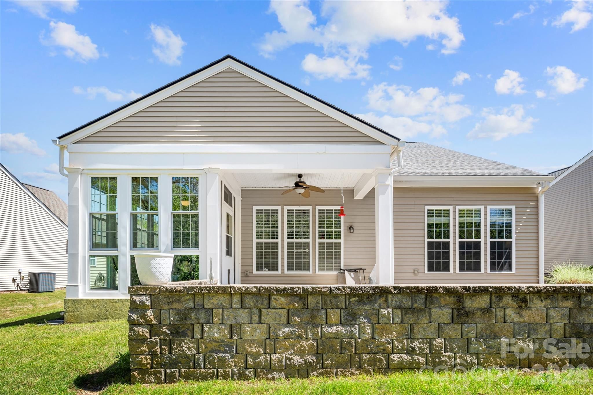 Welcome to this beautifully maintained 1.5-story Copper Ridge model in the highly sought-after Sun City Carolina Lakes - where comfort, style, and an active lifestyle come together. Step inside to a bright and inviting living room featuring a soaring vaulted ceiling and a cozy gas log fireplace, creating the perfect gathering space. A wall of windows fills the home with natural light and offers peaceful views of the backyard, while the open layout flows effortlessly into the dining area - ideal for both everyday living and entertaining. The kitchen is thoughtfully designed with a breakfast bar that connects the space, along with granite countertops, a tile backsplash, and a gas range - perfect for preparing meals with ease. Just off the main living area, double doors lead to a private home office or study, offering a quiet retreat for work or hobbies. The primary suite, tucked at the rear of the home for added privacy, features a tray ceiling and a well-appointed ensuite bath complete with a double sink vanity, soaking tub, and a glass-enclosed walk-in shower. A spacious secondary bedroom at the front of the home provides convenient access to a full hall bath. Upstairs, a versatile loft offers the perfect second living area, media room, or flex space. An additional bedroom with access to a full bath makes an ideal guest suite or multi-purpose room. Enjoy the best of Carolina living outdoors in the 3-season room or relax on the partially covered patio with a paver extension - perfect for soaking up the sun while overlooking mature shade trees and a serene backyard setting. Residents of Sun City Carolina Lakes enjoy an exceptional array of resort-style amenities, including golf, indoor and outdoor pools, tennis, pickleball, and a vibrant selection of social clubs and activities. This home offers the perfect blend of comfort, flexibility, and community living - don’t miss your opportunity to make it yours.