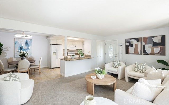Professional photos coming soon — additional photos will be updated shortly. Welcome to "Casa Linda" — one of the most sought-after models in Laguna Woods Village. Ground-floor living means you can pull up curbside and walk directly to your front door — no stairs, no elevator, just easy, everyday convenience. Prefer to drive right up? You can also park directly in front of your unit for the ultimate in ground-level accessibility. This 2-bedroom, 1¾-bath co-op offers approximately 1,040 sq ft of single-level living. The open floor plan connects an updated kitchen — featuring granite countertops, newer cooktop, microwave, refrigerator, sink, and fixtures — to a sun-filled living and dining area with direct access to a private patio. Step outside to enjoy the Southern California sunshine, tend your garden, or fire up the BBQ. Updated window and slider coverings and brand-new modern ceiling fan lights give every room a clean, contemporary feel. Both bedrooms are spacious with easy access to their own dedicated bathrooms and ample closet space. Washer and dryer included. Your dedicated carport includes built-in storage and a conveniently located EV charging outlet — guaranteed charging for your car or golf cart, day or night. Near Gates 5 and 6 and Clubhouses 1, 2, and 4 — and just minutes from Laguna Beach, the Great Park, Irvine Spectrum, top medical centers, shopping, and major freeways. Laguna Woods Village offers an unmatched resort lifestyle: 7 clubhouses, 5 pools, 4 spas, 2 golf courses, driving range, tennis, pickleball, bocce ball, fitness center, ballroom, hiking and walking trails, RV parking, workshops, and over 250 clubs and activities. Turnkey, move-in ready — Casa Linda delivers the Laguna Woods lifestyle without compromise.