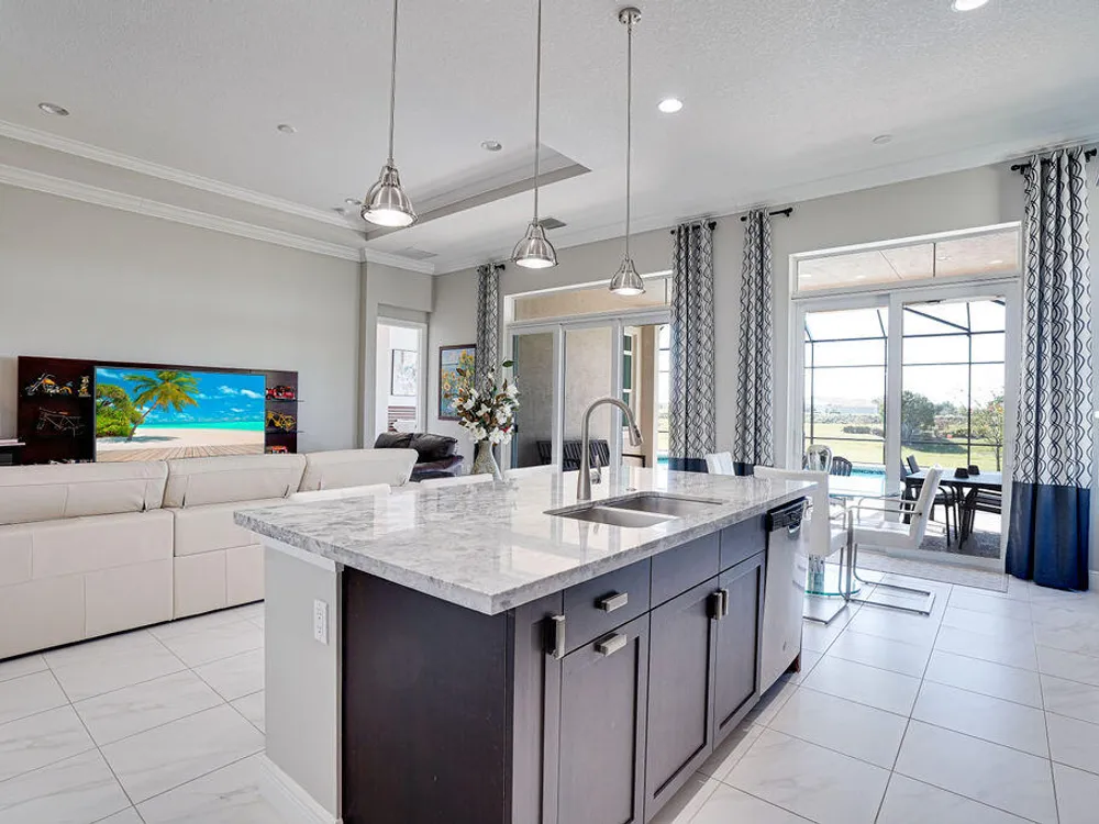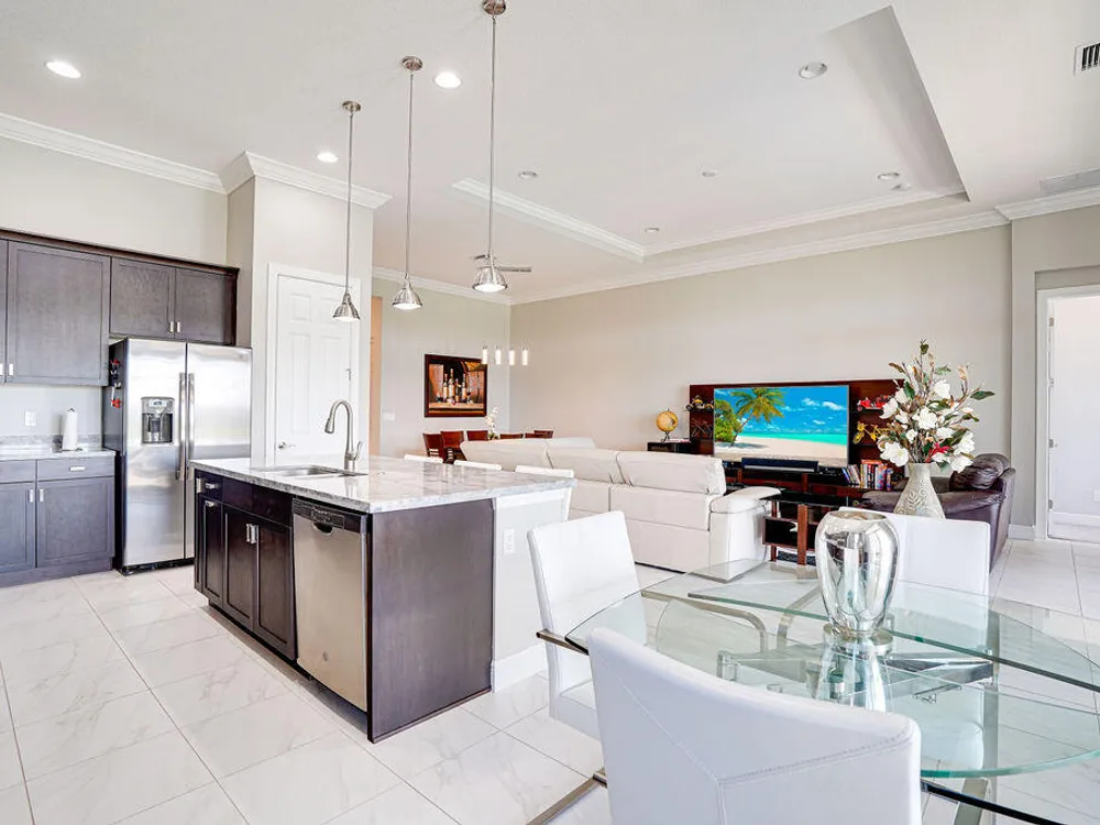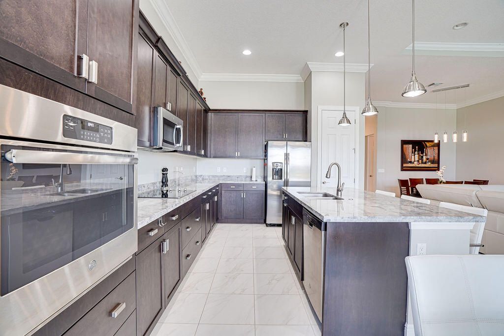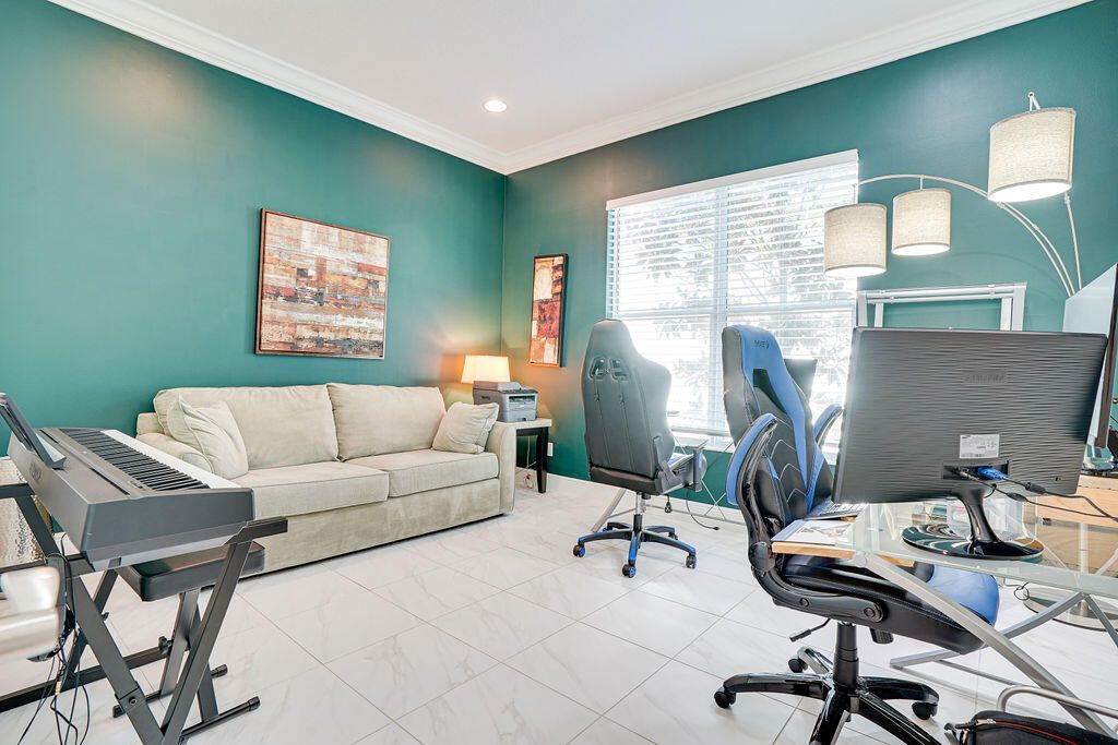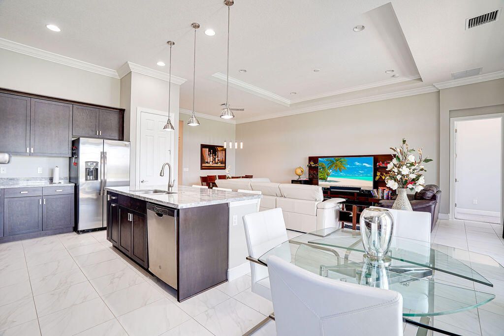 - Pantry, Split Bedrooms, High Ceilings, Walk-In Closet(s), Home Office, Great Room, Living/Dining Room, Eat-in Kitchen, Snack Bar, Impact Glass, Dual Sinks