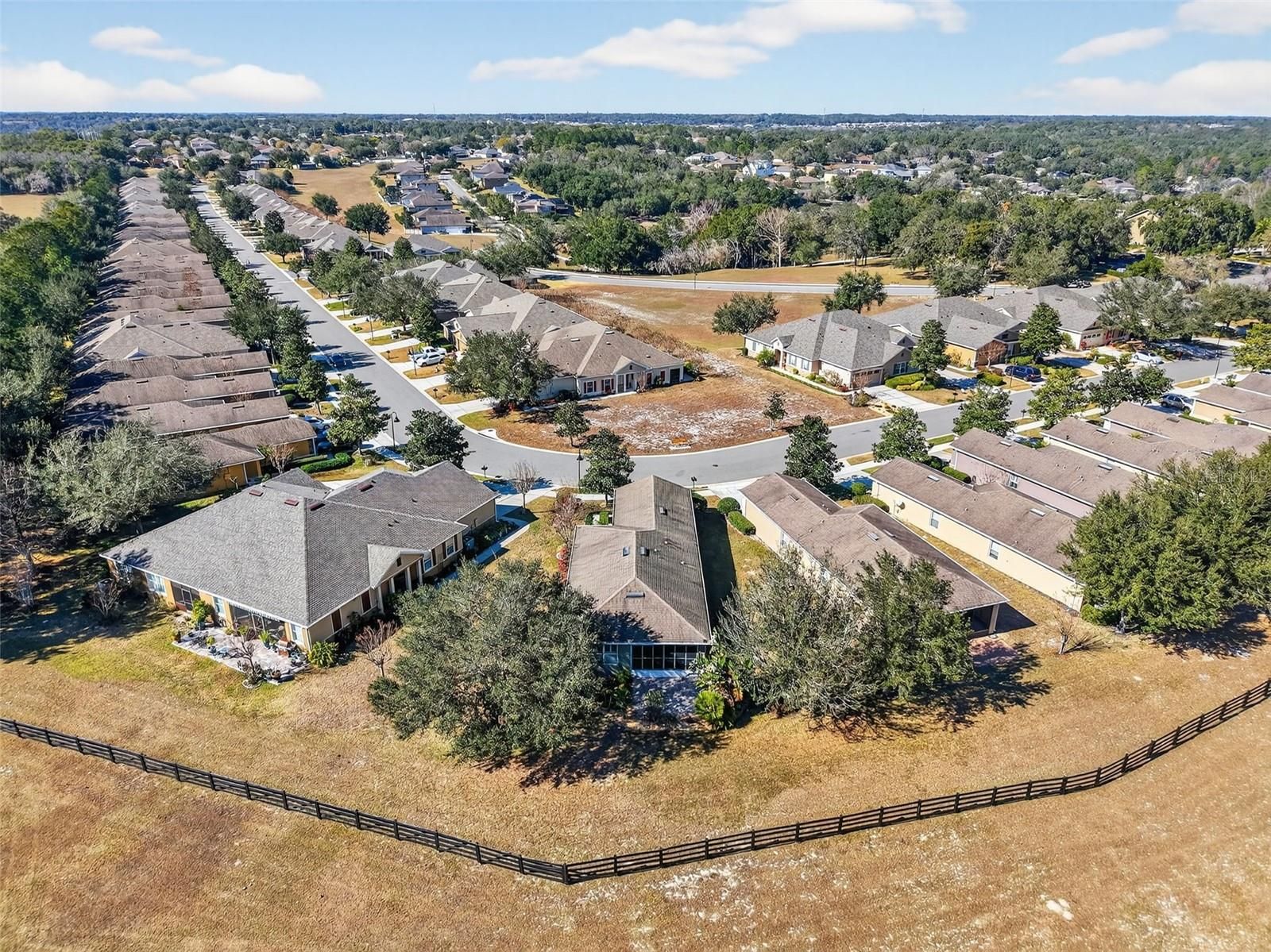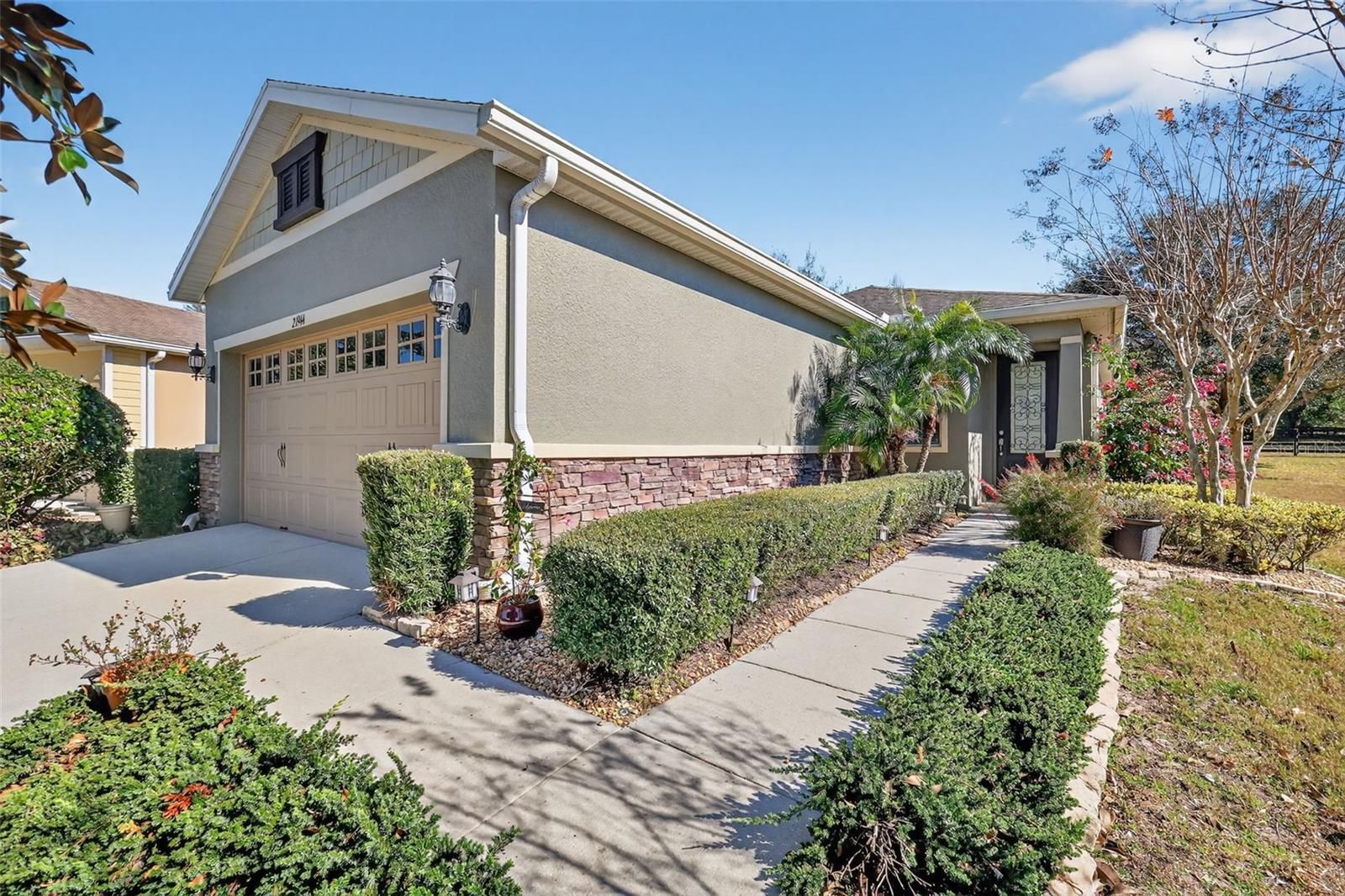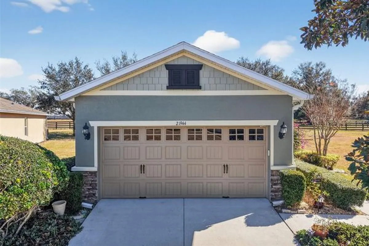 Welcome to 21944 Belgian Court — an impeccably maintained 3-bed, 2-bath garden home in the highly desired 55+ section of Sullivan Ranch, one of Mount Dora’s most sought-after gated communities. Sullivan Ranch welcomes residents with its attractive gated entrance and scenic wooden bridge. Cobblestone-accented streets, rolling hills and ancient oaks. Step through the charming leaded glass front door into light-filled living spaces and an inviting open layout. Thoughtful upgrades throughout include plantation shutters, engineered wood flooring throughout with matching laminate in the bedrooms. The well-appointed kitchen had new stainless steel appliance with new refrigerator, granite counters, espresso-toned cabinetry, center island, tile backsplash, and a breakfast bar — perfect for both everyday living and entertaining. The spacious primary suite offers a tranquil retreat with walk in closet. The ensuite bathroom has granite countertops with double sinks and large walk-in shower. The two additional bedrooms and versatile floor plan provide ideal space for guests or hobbies. The guest bathroom also has granite countertops and provides a tub with shower. Expand your living outdoors in the enclosed patio with tinted windows and peaceful pasture views. Enjoy quiet mornings or evening BBQs on the paver patio surrounded by lush landscaping. Situated on a larger-than-typical lot, this home features a 2-car garage with extended space and privacy that’s rare in maintenance-free living. New HVAC system 2025! The Sullivan Ranch lifestyle includes exterior maintenance, lawn care, irrigation, pest control, pressure washing, painting and roof replacement included in the HOA fee — giving you more time to enjoy community amenities featuring a 5,000 square-foot clubhouse with living room-style meeting area and wood-burning, fitness center and Junior Olympic size swimming pool. Residents also have use of a fenced, off-leash dog park. Live just minutes from historic downtown Mount Dora, with its charming shops, dining, seasonal festivals, and scenic Lake Dora. Easy access to SR-429 means beaches, Orlando attractions, and major airports are within reach. A perfect blend of comfort, convenience, and community — don’t miss the chance to make this Sullivan Ranch gem your new Florida home!