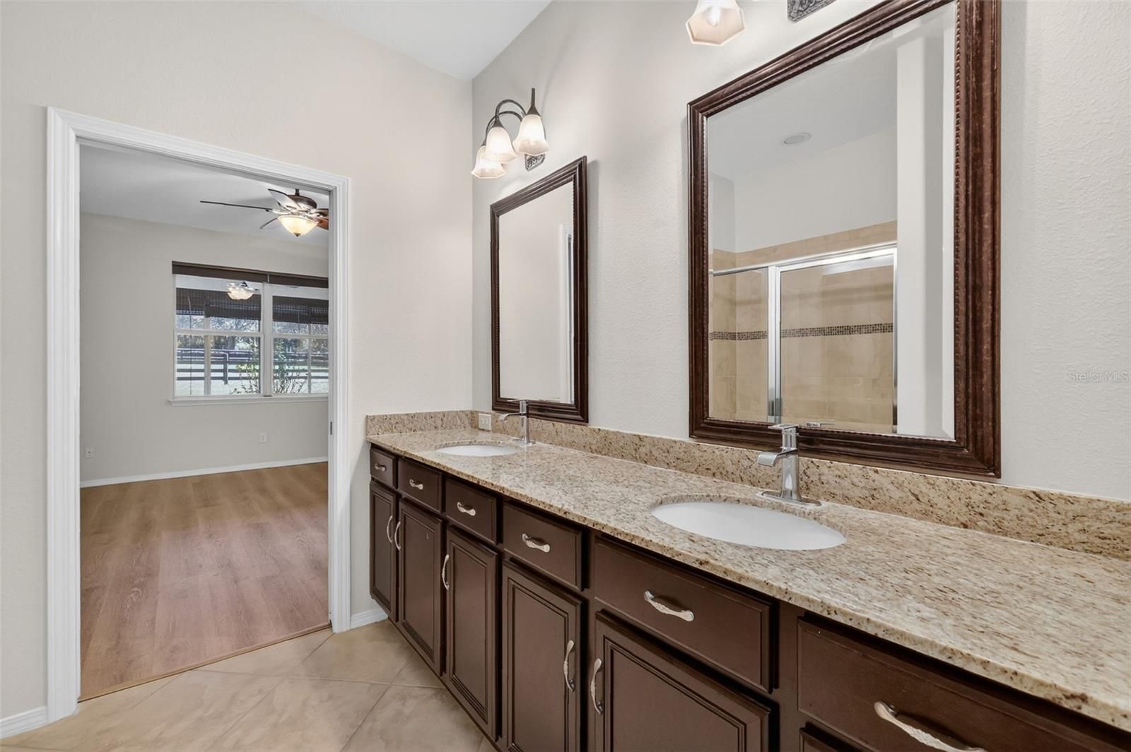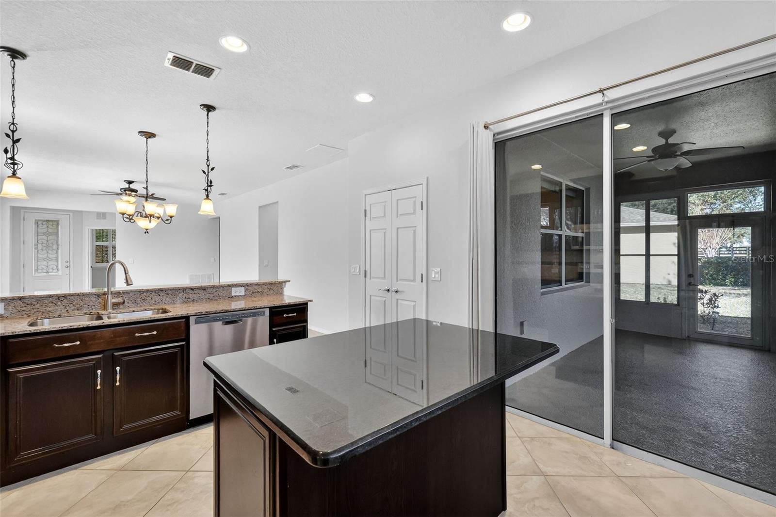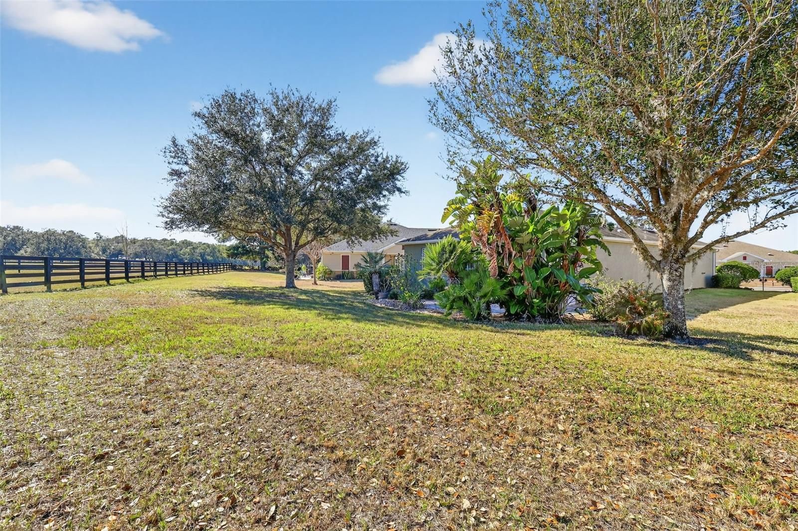 Welcome to 21944 Belgian Court — an impeccably maintained 3-bed, 2-bath garden home in the highly desired 55+ section of Sullivan Ranch, one of Mount Dora’s most sought-after gated communities. Sullivan Ranch welcomes residents with its attractive gated entrance and scenic wooden bridge. Cobblestone-accented streets, rolling hills and ancient oaks. Step through the charming leaded glass front door into light-filled living spaces and an inviting open layout. Thoughtful upgrades throughout include plantation shutters, engineered wood flooring throughout with matching laminate in the bedrooms. The well-appointed kitchen had new stainless steel appliance with new refrigerator, granite counters, espresso-toned cabinetry, center island, tile backsplash, and a breakfast bar — perfect for both everyday living and entertaining. The spacious primary suite offers a tranquil retreat with walk in closet. The ensuite bathroom has granite countertops with double sinks and large walk-in shower. The two additional bedrooms and versatile floor plan provide ideal space for guests or hobbies. The guest bathroom also has granite countertops and provides a tub with shower. Expand your living outdoors in the enclosed patio with tinted windows and peaceful pasture views. Enjoy quiet mornings or evening BBQs on the paver patio surrounded by lush landscaping. Situated on a larger-than-typical lot, this home features a 2-car garage with extended space and privacy that’s rare in maintenance-free living. New HVAC system 2025! The Sullivan Ranch lifestyle includes exterior maintenance, lawn care, irrigation, pest control, pressure washing, painting and roof replacement included in the HOA fee — giving you more time to enjoy community amenities featuring a 5,000 square-foot clubhouse with living room-style meeting area and wood-burning, fitness center and Junior Olympic size swimming pool. Residents also have use of a fenced, off-leash dog park. Live just minutes from historic downtown Mount Dora, with its charming shops, dining, seasonal festivals, and scenic Lake Dora. Easy access to SR-429 means beaches, Orlando attractions, and major airports are within reach. A perfect blend of comfort, convenience, and community — don’t miss the chance to make this Sullivan Ranch gem your new Florida home!