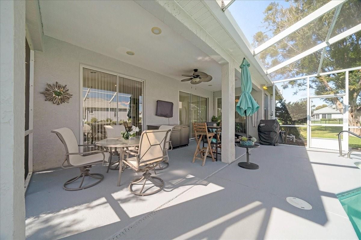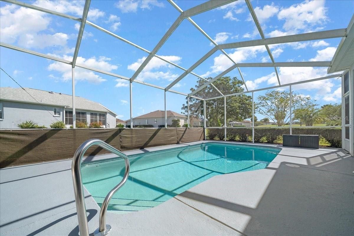 Pool Home – Just 1.5 Miles from the World Equestrian Center! Welcome to this beautifully maintained 3-bedroom, 2-bath home in the desirable Ocala Palms community. The open floor plan with vaulted ceilings and neutral tones throughout creates a bright, inviting atmosphere that’s ideal for both everyday living and entertaining. The kitchen features upgraded cabinetry with pull-out drawers, a decorative tile backsplash, and plenty of counter space. Flooring includes tile in the foyer, living, dining, kitchen, laundry, and baths; wood-style floors in the guest room and den; and carpet in the primary suite. Step outside to a large covered lanai overlooking the screened, solar-heated pool, perfect for year-round enjoyment. The property showcases beautiful mature landscaping accented with decorative concrete curbing, offering wonderful curb appeal and a serene outdoor setting. Additional highlights include a new roof in 2018, upgraded fans and fixtures, a newer water heater, and generator wiring for added peace of mind. Conveniently located just 1.5 miles from the World Equestrian Center, this home combines comfort, style, and location. Move-in ready and available for a quick closing—can be sold furnished. Put this one at the top of your list!