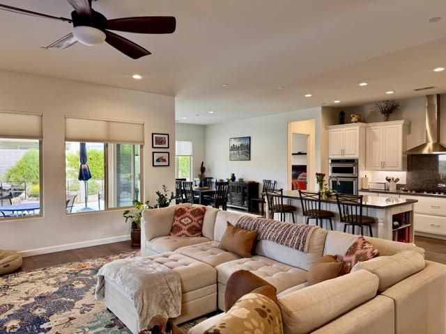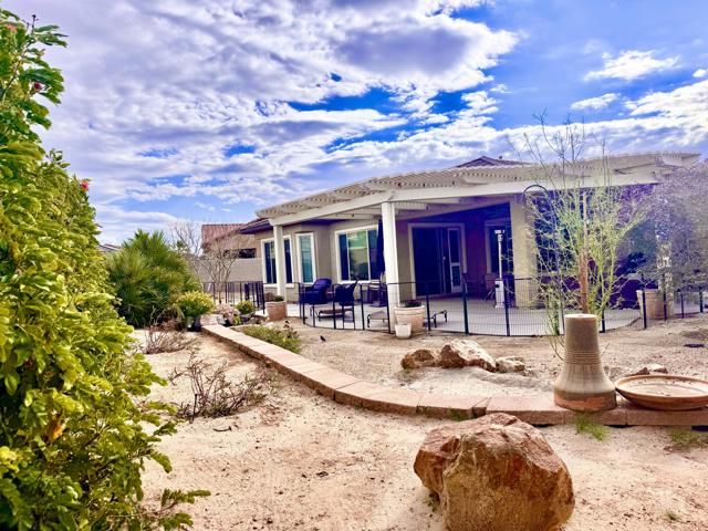 Set on a premium lot within Del Webb Rancho Mirage, this 1,855 sq. ft. Sanctuary model delivers a rare combination of refined desert living and exceptional energy efficiency. Designed for comfort, performance, and low operating costs, this residence stands apart from comparable homes in the community.The thoughtfully designed floor plan offers 2 bedrooms, 2 bathrooms, and a versatile den--ideal for a private office, media room, or fitness space. The home is enhanced by an Energy Package with upgraded air conditioning, additional insulation, and 13 fully paid solar panels, providing meaningful utility savings and year-round climate control.A standout feature is the insulated garage door with its own mini-split system, creating a temperature-controlled environment perfect for a workshop, home gym, hobby space, or protected storage--an uncommon and highly desirable upgrade.Interior finishes reflect both style and function, with wood-look a like tile flooring, upgraded lighting, and ceiling fans throughout. Upgraded Chefs kitchen offers premium appliances. Designed for everyday ease and entertaining, featuring granite countertops, a generous center island, expanded cabinetry, Outdoors, enjoy large premium lot with room for a pool. Expansive covered patio with plenty of room for entertaining. As part of this premier 55+ community, residents enjoy a state-of-the-art fitness center, multiple swimming pools, pickleball, bocce ball, tennis courts, a full-service clubhouse, and a robust calendar of social activities. HOA services include 24/7 security and maintenance of common areas, landscaping, and pathways.Ideally located near the shopping, dining, and cultural offerings of Palm Springs and Palm Desert, this home offers a smarter, more efficient alternative to other Sanctuary models--without compromising style, comfort, or lifestyle.