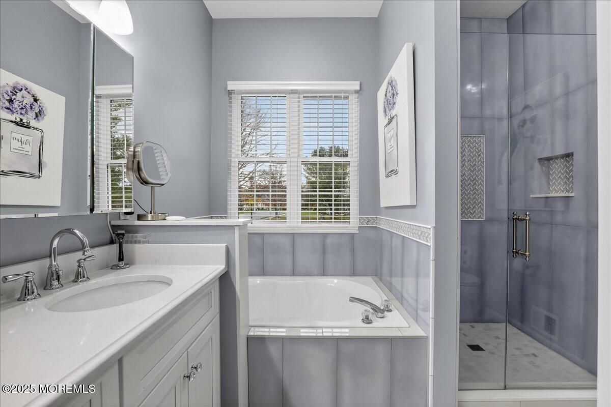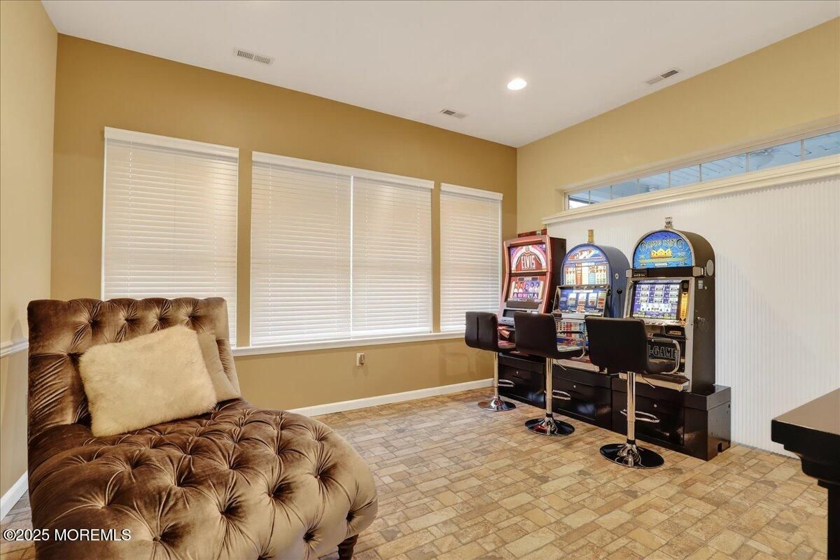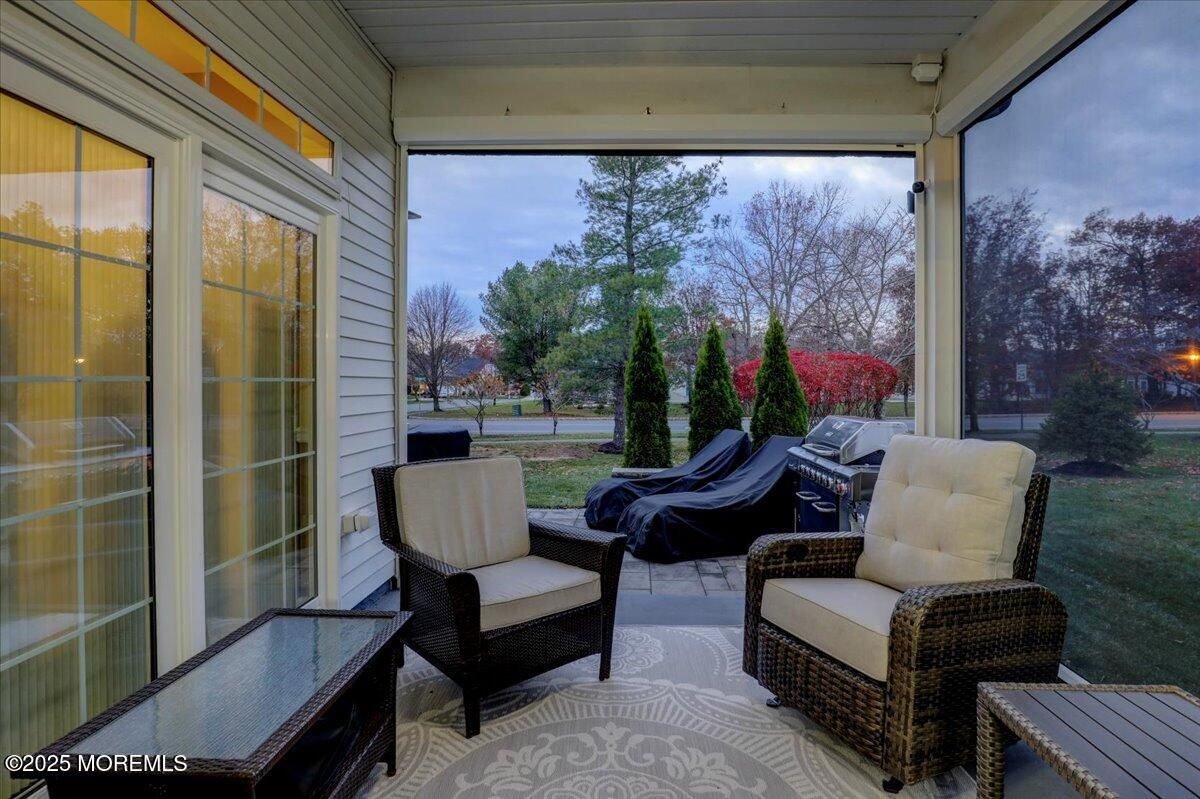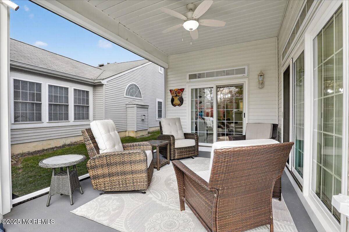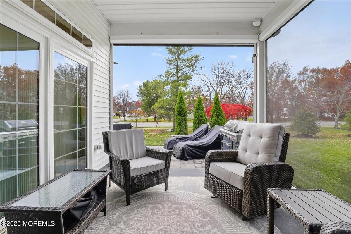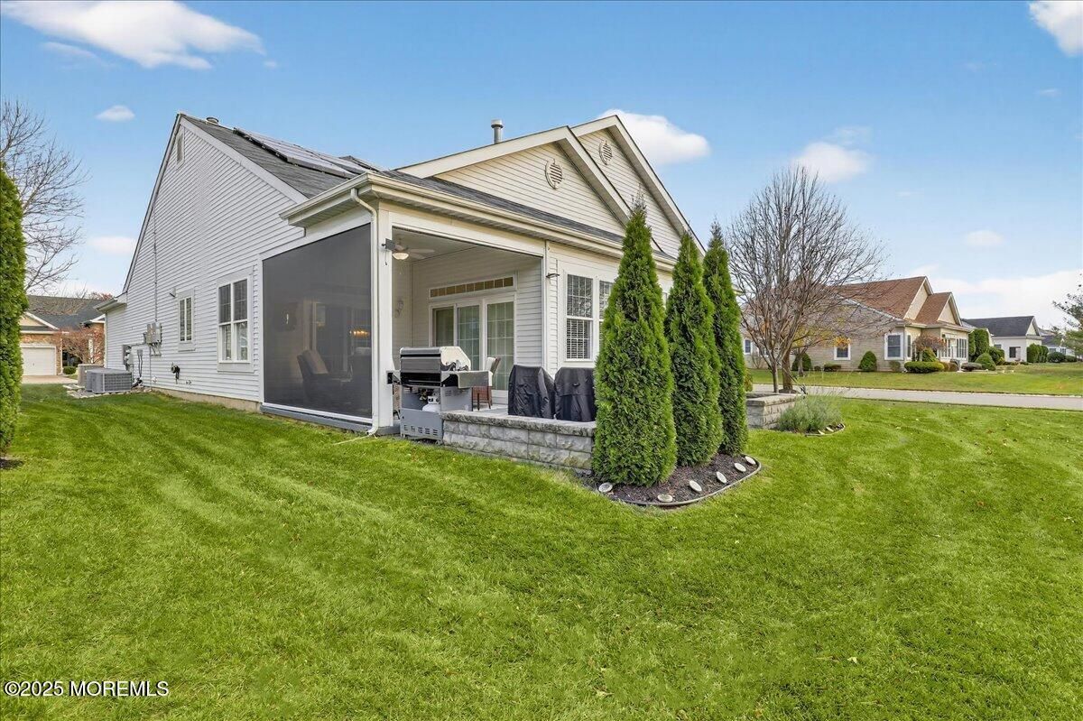 Westlake Golf and Country Club • Corner lot • Custom kitchen • Sunroom with triple slider • Screened patio with retractable screens • New windows • Newer HVAC • Whole house generator 2025 • Solar panels. Set on a corner lot in Jackson's Westlake Golf and Country Club, 22 Congressional Road brings together thoughtful upgrades and a welcoming country club lifestyle. The home opens to a bright, airy layout with a vaulted great room anchored by a stone gas fireplace with a blower, recessed lighting throughout, and high gloss porcelain floors that keeps everything feeling clean and open. A custom kitchen sits at the center of the home with granite counters, stainless appliances including a wall oven, and plenty of space for casual entertaining. Just off the kitchen, the sunroom features a triple slider that leads to a screened patio with retractable screens and newer patio with outdoor lighting for relaxed evenings outdoors. The first-floor layout includes a spacious dining room, a sitting room, and a large primary suite with closet organizers and newer bath. A second renovated bath and generous guest room round out the main level. Upstairs, the loft offers a comfortable additional living space with new carpet and built-ins, along with a third bedroom and full bath for guests or hobby space. New windows, newer HVAC, solar panels, motorized window treatments, and a whole house generator installed in 2025 add convenience and peace of mind. Living at Westlake means enjoying a gated 55+ community known for its active, social atmosphere and resort-like amenities. Residents have access to the 30,000 square-foot clubhouse, indoor and outdoor pools, tennis, pickleball, bocce, shuffleboard, a fitness center, restaurant and bar, plus a full calendar of clubs and activities. The Arthur Hills-designed 18-hole golf course winds throughout the neighborhood, creating a scenic backdrop for daily walks or afternoons on the green. The community sits close to everyday conveniences with ShopRite about 3.4 miles away, CVS around 3.6 miles, and the County Line Road dining corridor roughly 2 miles from the gate. Larger destinations like Freehold Raceway Mall, Monmouth Park Racetrack, and major roadways for trips to Philadelphia, New York City, or the Jersey Shore are all within easy reach.