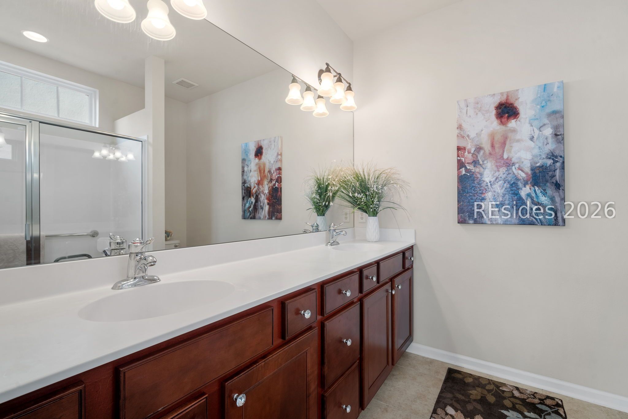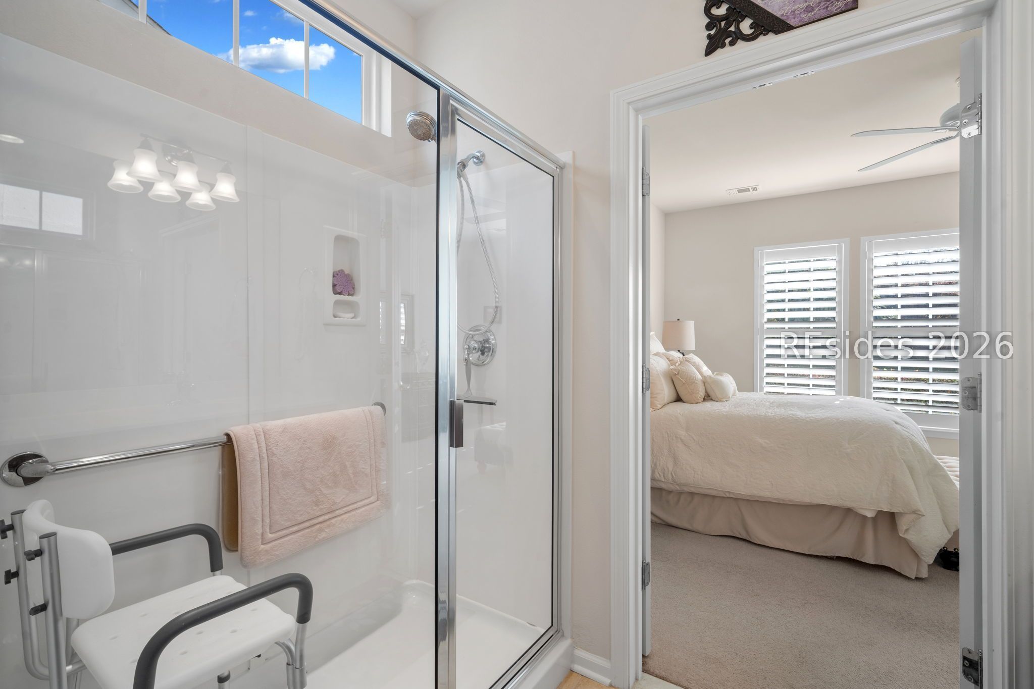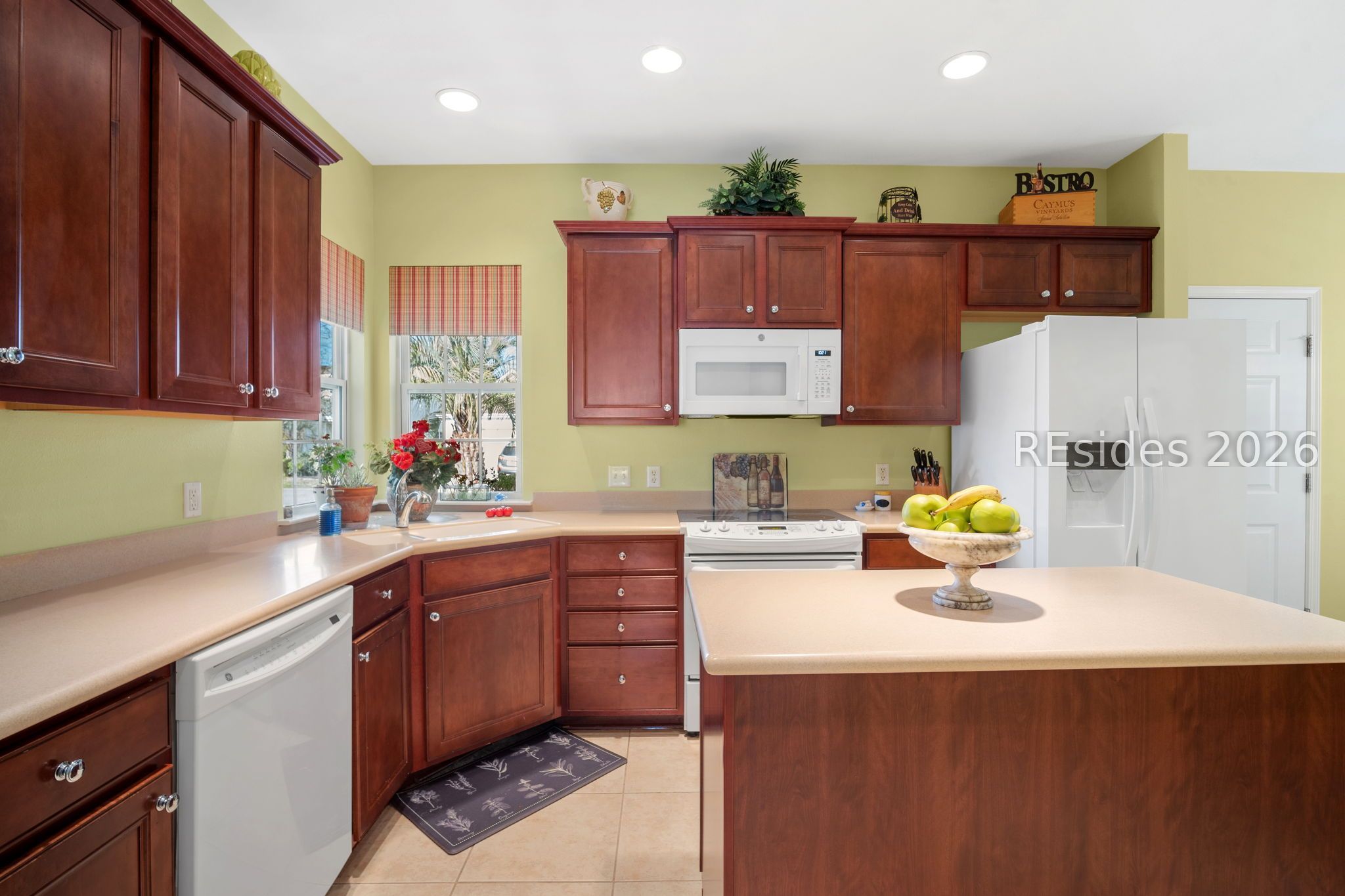 Move-in ready, meticulously maintained 2-bedroom, 2-bath highly sought-after Fox Run model on a corner lot in the Garden Walk neighborhood of Sun City Hilton Head, a 55+ community. This 1,356 sq ft home shines with recent updates: new roof (2020), new vinyl siding (2021), new refrigerator (2023), new water heater (2021), new washer (2019), and new HVAC (2019). Kitchen features Corian countertops, an island, and flows into a cozy living area with a sun-filled Carolina room. Tile floors in main living spaces and plantation shutters throughout add easy-care style and elegant light control, while bedrooms offer plush carpet. Low-maintenance exterior and all the Sun City perks: pools, trails, clubs, optional access to three golf courses (memberships available), and that classic Lowcountry charm. Buy with confidence, 1 year home warranty included!