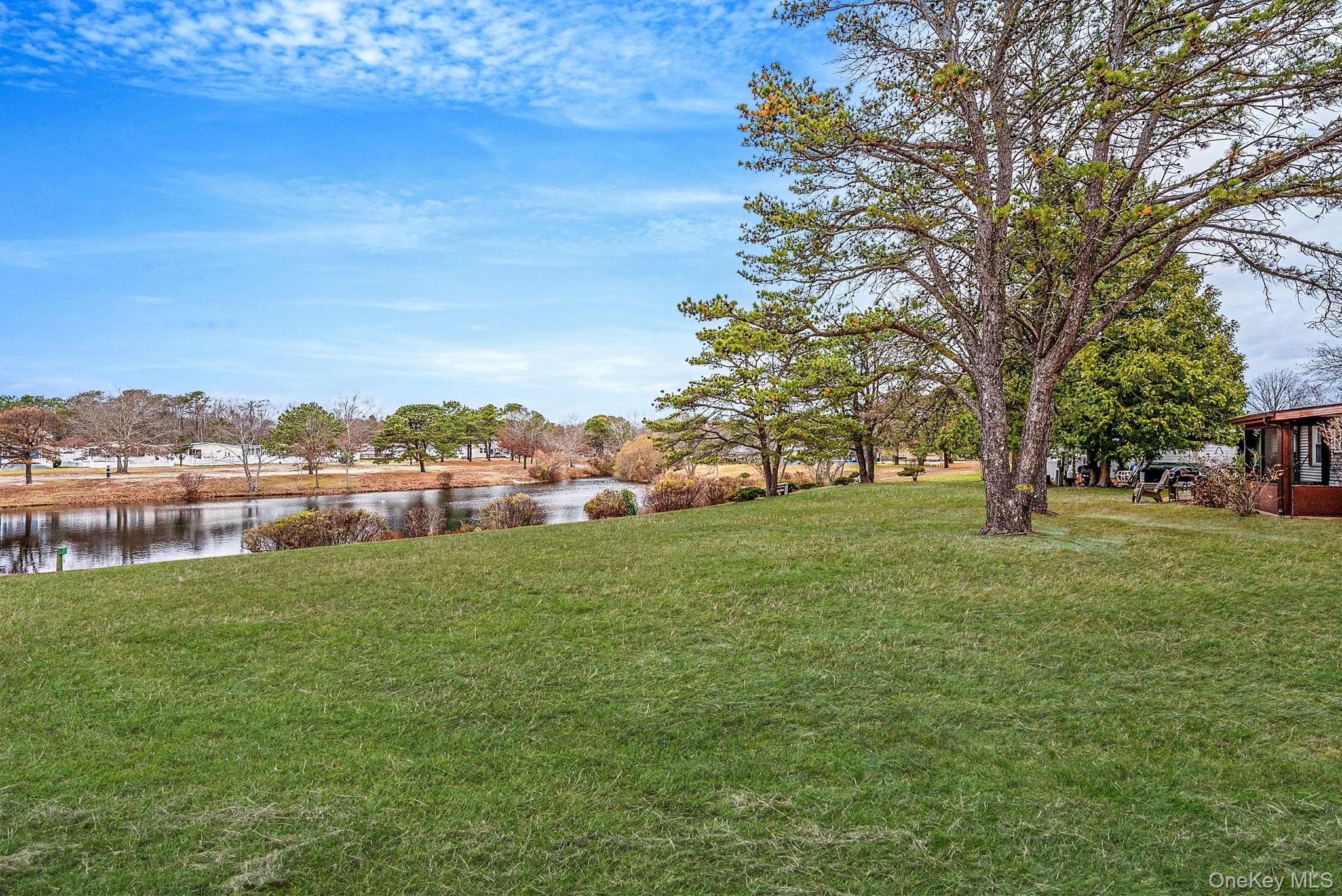Welcome to this delightful lakefront ranch style home featuring two bedrooms and two full baths, located in the pet-friendly, 55+ gated community of Greenwood Village. Inside, you’ll find a spacious living room, a comfortable kitchen, a new hot water heater, and a dining area with sliding glass doors that lead to a private backyard. The layout also includes a primary bedroom with an en suite bath, a second bedroom, an additional full bathroom, and a convenient laundry area. This home offers driveway parking, a large shed for extra storage, and a generous backyard with serene water views. With a bit of TLC, you can envision sunny afternoons on a future deck, relaxing under an umbrella, grilling, entertaining, or simply enjoying the tranquil pond and surrounding nature. Greenwood Village enhances everyday living with a socially active clubhouse, tennis courts, shuffleboard, bocce, and a community swimming pool. For wellness of body, enjoy the fitness center or take a refreshing dip in the pool. If relaxation is what you seek, unwind with friends and family at the scenic picnic area reserved for residents. Local shopping and dining options are plentiful, and beautiful area beaches are just a short drive away. The community also provides a bus service for shopping, worship, and scheduled outings. Please note: all purchases are cash only, and community application approval is required. Assoc Amenities: Clubhouse, Fitness Center, Gated, Landscaping, Lounge, Maintenance Grounds, Parking, Pool, Recreation Facilities, Snow Removal, Tennis Court(s), Trash