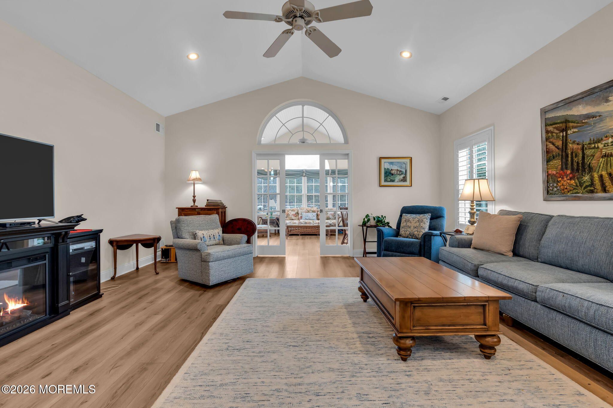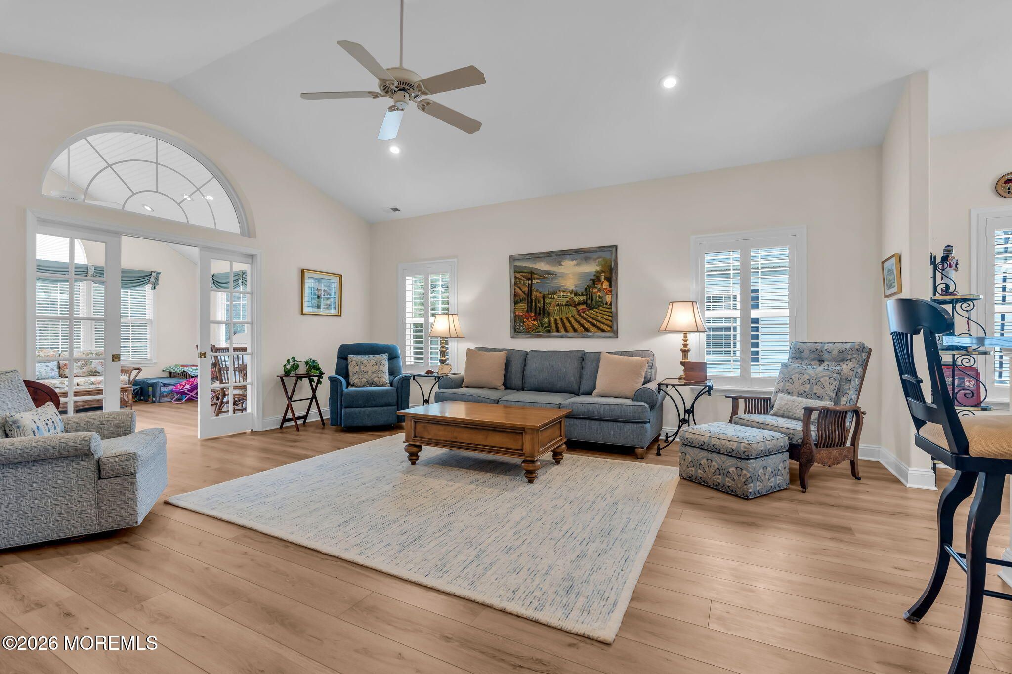 Welcome to this beautifully maintained Extended Raphael model located in the sought-after Renaissance 55+ community of Manchester. This spacious 2-bedroom, 2-bath home offers a bright and airy four-season room, perfect for enjoying your morning coffee or relaxing year-round. The home features elegant formal living and dining rooms, while the inviting family room showcases vaulted ceilings and recessed lighting creating a warm and open atmosphere ideal for both everyday living and entertaining. New vinyl flooring throughout! The eat-in kitchen is well appointed nice appliances, and under-cabinet lighting, offering both style and functionality. The primary suite includes a generous walk-in closet and a private bath with dual sinks and a stall shower. Additional features throughout the home include custom plantation shutters.Step outside to your private backyard retreat, featuring a paver patio backing to peaceful wooded views and beautifully landscaped surroundings -- a perfect setting for outdoor entertaining or quiet relaxation. The property also includes a spacious two-car garage with ample storage. Residents of Renaissance enjoy a vibrant lifestyle with access to a resort-style clubhouse, pool, fitness center, tennis courts, and numerous social activities. This immaculately kept home is truly move-in ready and offers an incredible opportunity to enjoy one of Manchester's most desirable active adult communities.