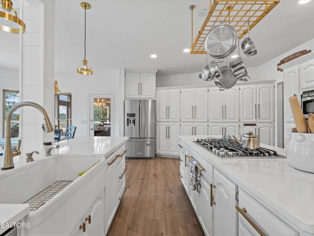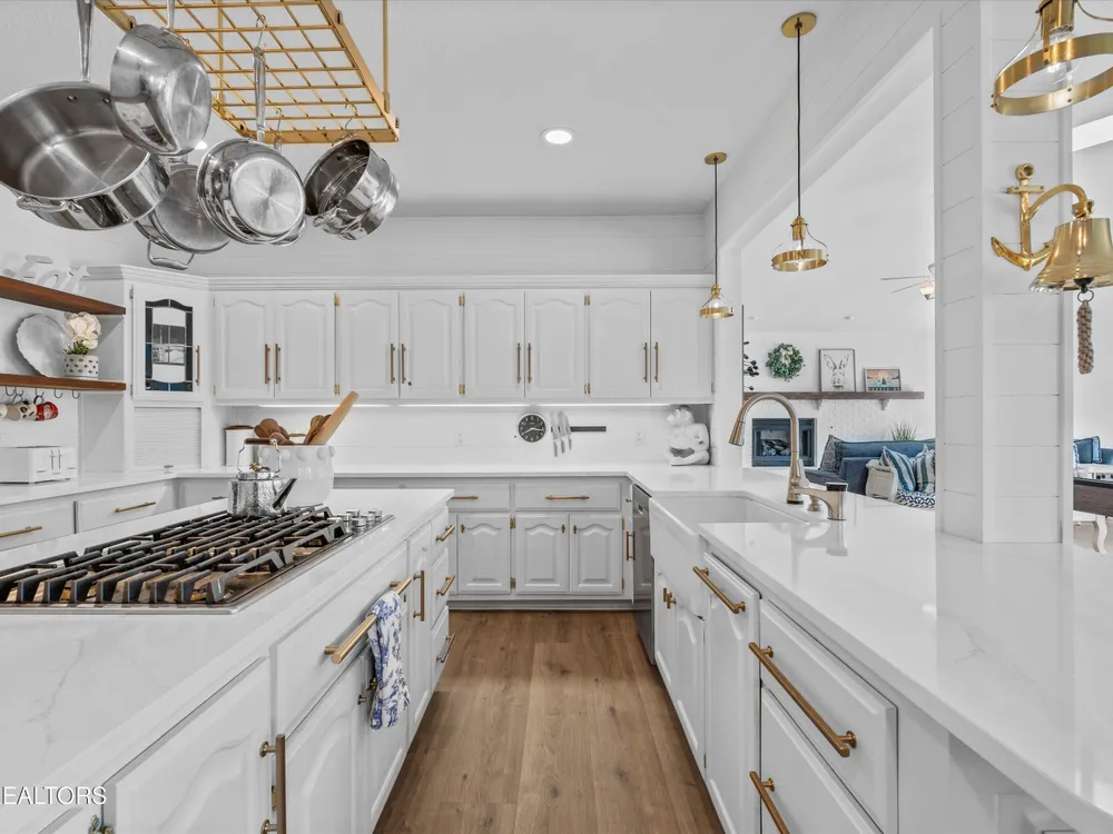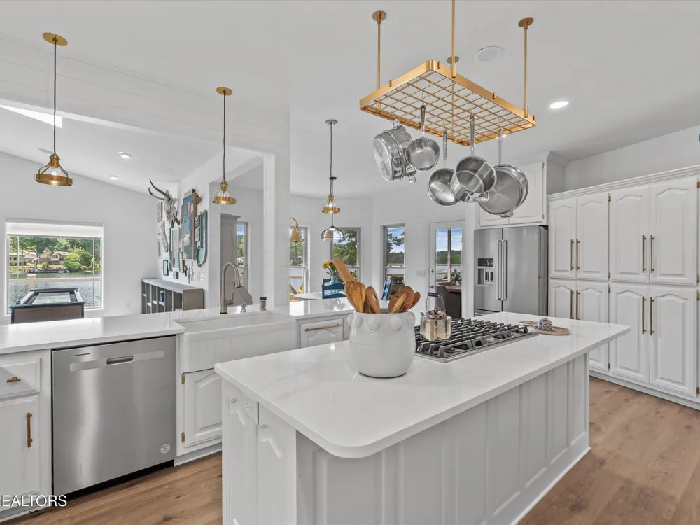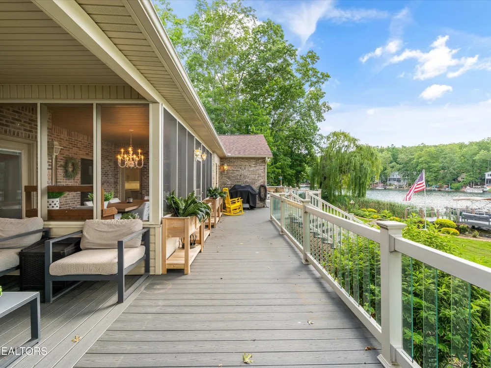 Back on market! No Fault of the Seller! A rare find in the golf capital of Tennessee! This stunning all-brick lakefront home sits on a level half-acre lot at the end of a quiet cul-de-sac. Inside, you're greeted by panoramic lake views from nearly every room. With four bedrooms plus an office - or the flexibility of five full bedrooms - there's space for everyone to spread out and enjoy. The back of the house is lined with windows so you can soak in the scenery from the oversized family room, breakfast nook, and open kitchen. The spacious master suite has its own private entrance to the back deck, and the grand bathroom features a relaxing soaking tub, a huge walk-in tiled shower, and a roomy walk-in closet. Throughout the home, you'll find bright, airy spaces with high ceilings, skylights, and gleaming new LVP floors. The bathrooms have been updated with granite/painted counters, new mirrors, bathtubs, toilets, and hardware, while the bright kitchen is refreshed with a new stove and light fixtures. Recent home updates include a new roof in 2023, brand new gas tankless water heater, plus a deck and dock recently redone with low-maintenance Trex planks. There's an oversized two-car garage with upstairs attic storage and plenty of space under the deck for kayaks and lake toys. Lakefront, move-in ready, and better than new - this is your perfect retreat on the water. Come see it today!