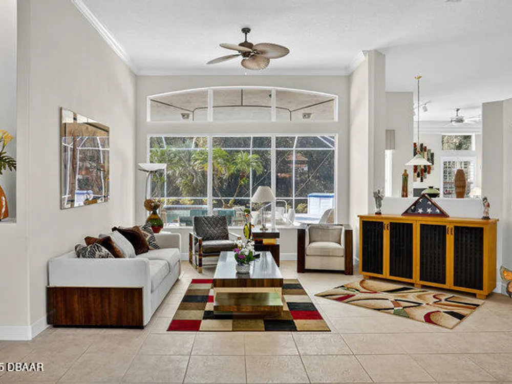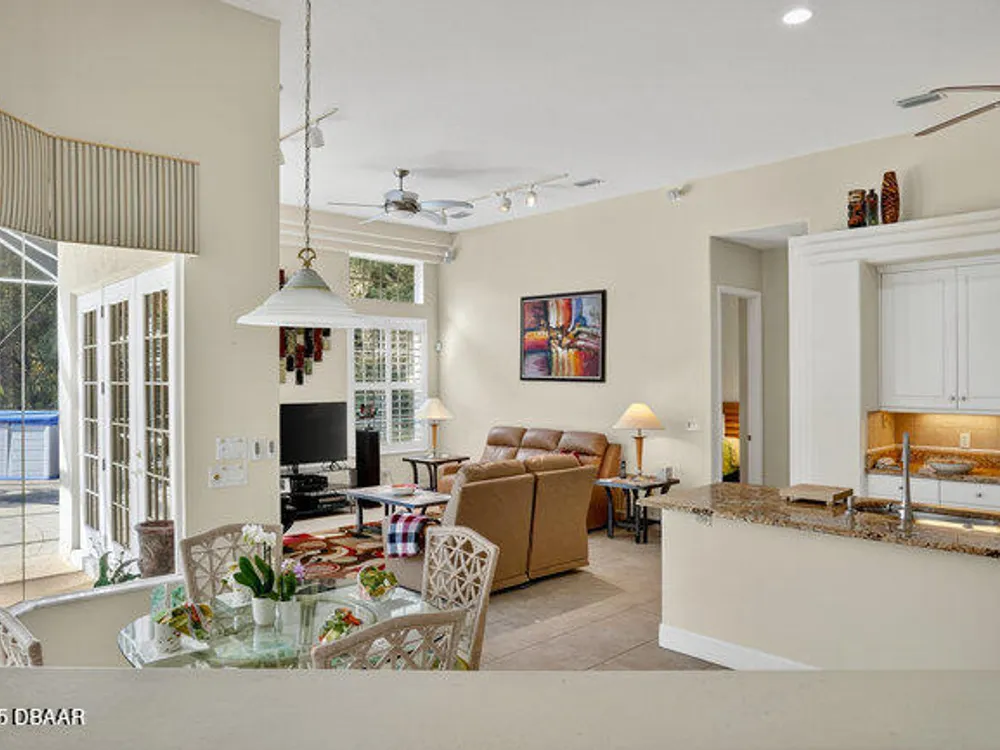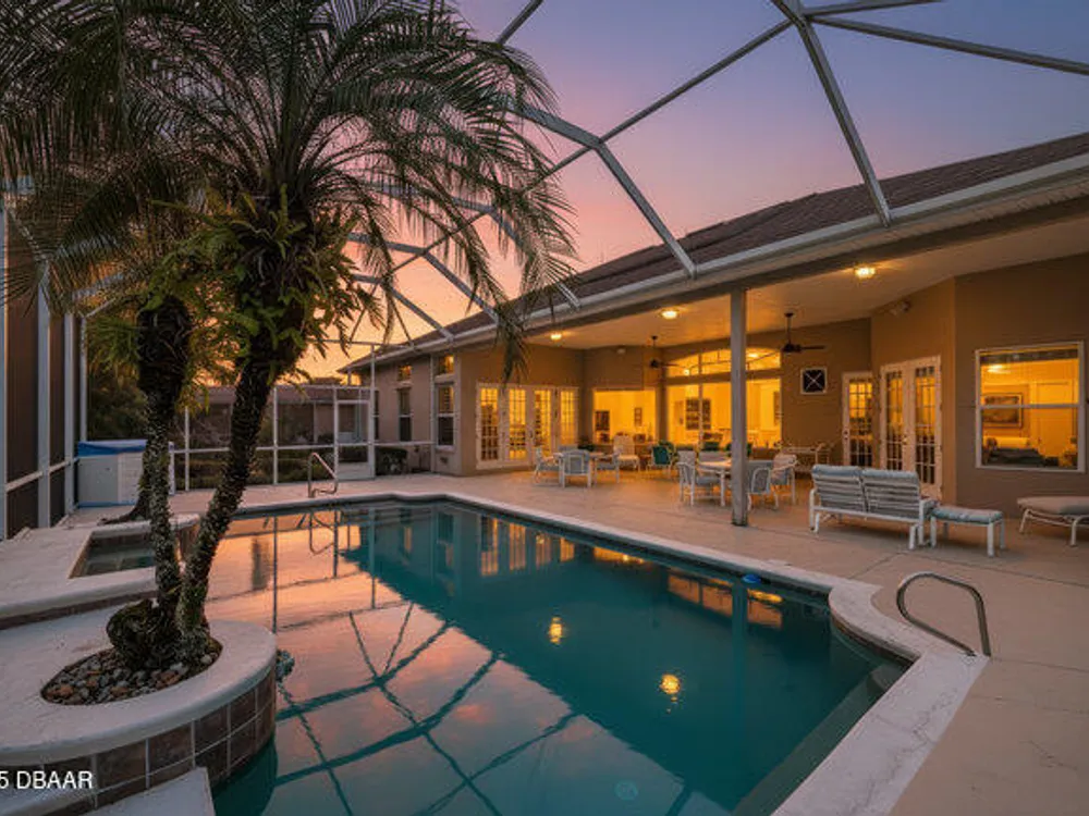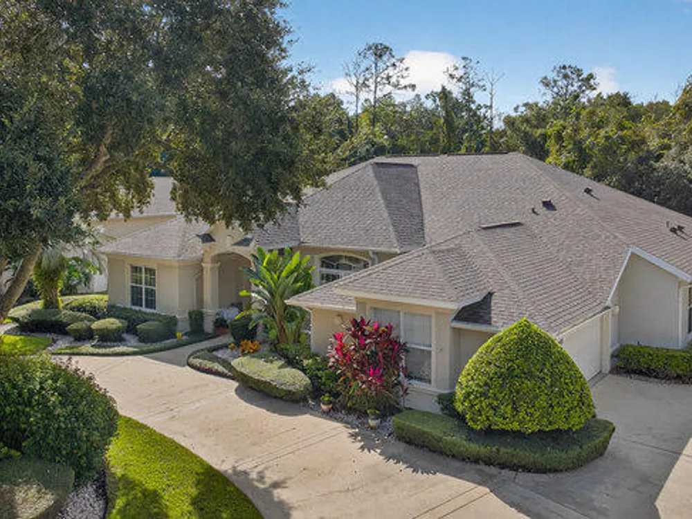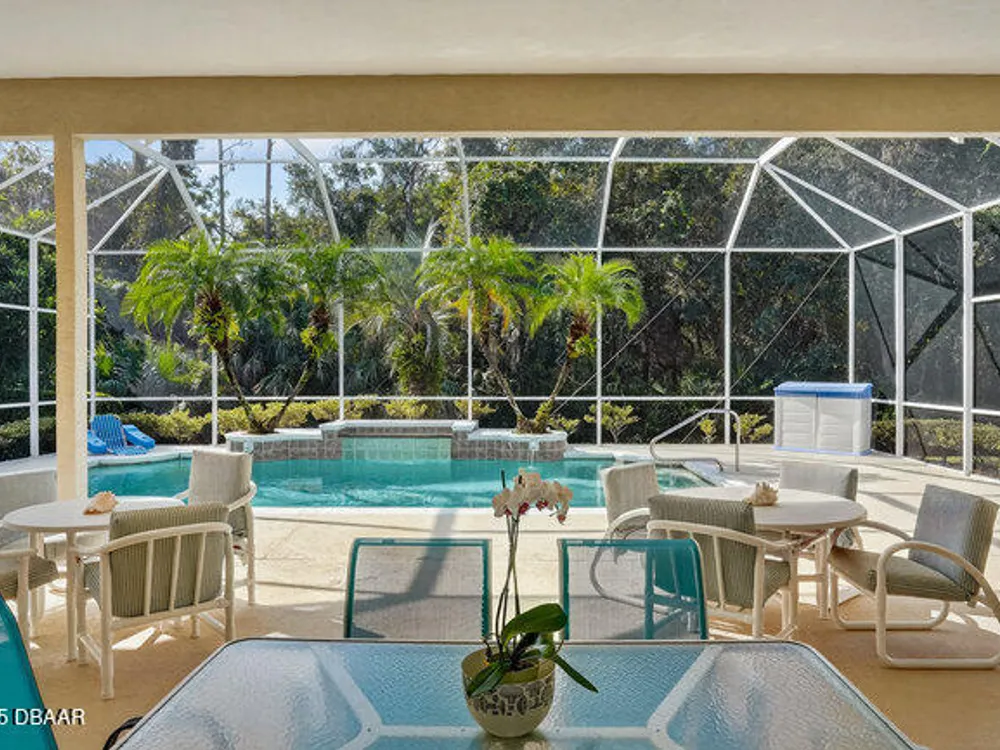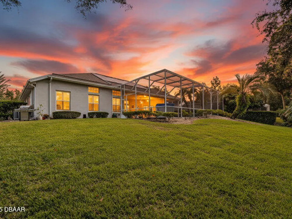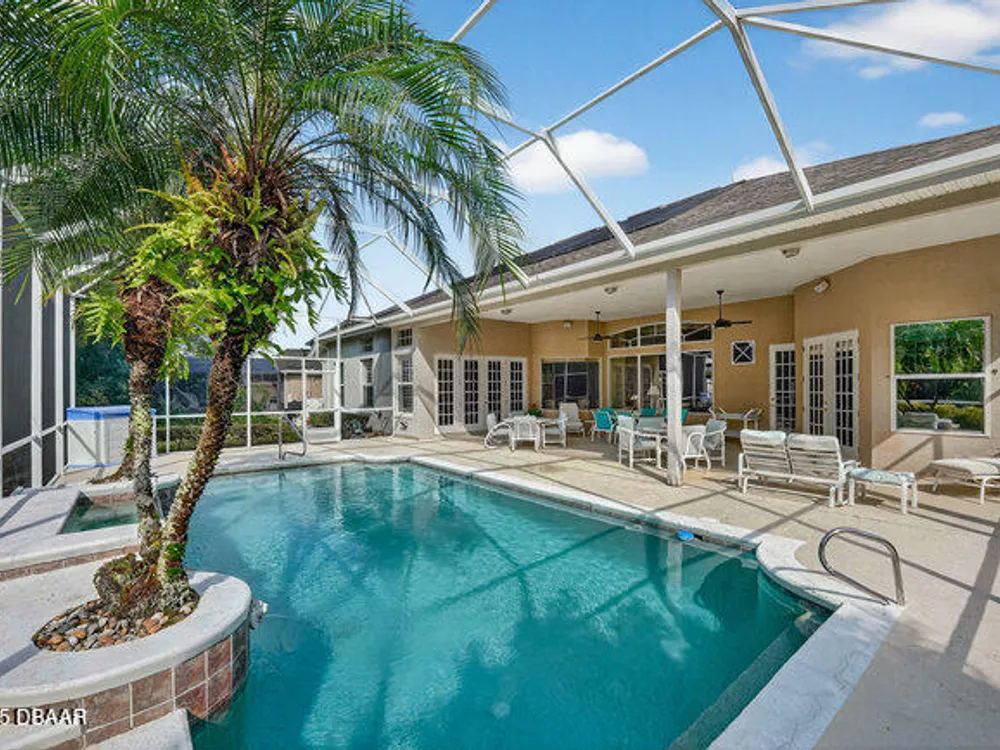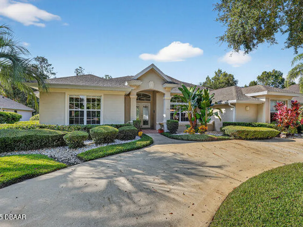 Kargar Custom Built Estate Home in the prestigious gated community of Breakaway Trails! From the moment you step inside, this immaculately maintained residence impresses with its open, inviting floor plan, soaring 12-foot ceilings, and an abundance of natural light. The grand living and dining rooms set the tone for elegant entertaining, while the gourmet kitchen offers an island with breakfast bar, solid surface counters, tiled backsplash, plentiful cabinetry, and a cozy breakfast nook. The split floor plan ensures privacy, featuring 2 serene guest bedrooms and two full baths each with direct bedroom access on one side of the home. On the opposite wing, the spacious owners' suite delivers a true retreat with French doors to the pool, a custom California closet system, double vanities, garden tub, and walk-in shower. The 4th bedroom and pool bath are conveniently located nearby. Perfectly designed for indoor-outdoor living, the family room and owners' suite open to an .. an expansive screened lanai with sparkling pool overlooking a peaceful preserve. Additional enhancements include crown molding, built-ins, plant shelves, porcelain tile flooring, central vacuum, NEW roof (2019), NEW HVAC (2019), NEW water heater (2025), and an oversized two-car garage with abundant storage. Set on nearly half an acre, this estate home offers both privacy and tranquility all within one of Ormond Beach's most desirable communities. Every detail reflects pride of ownership, making this home move-in ready! --