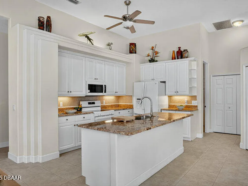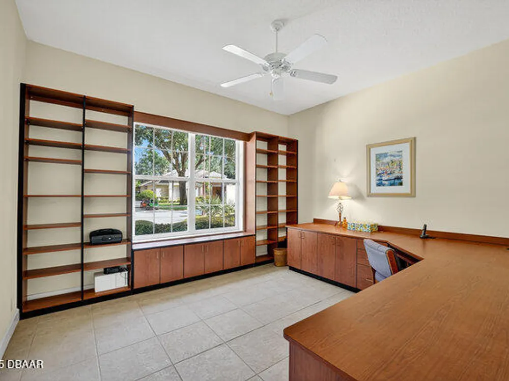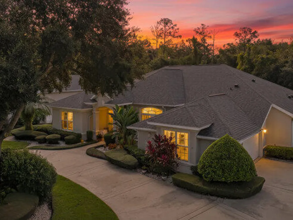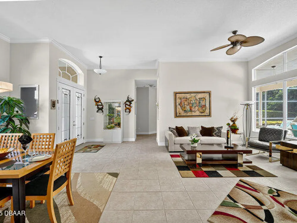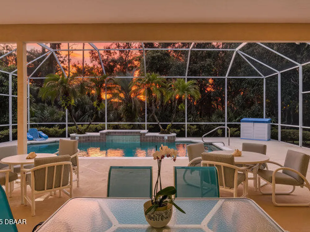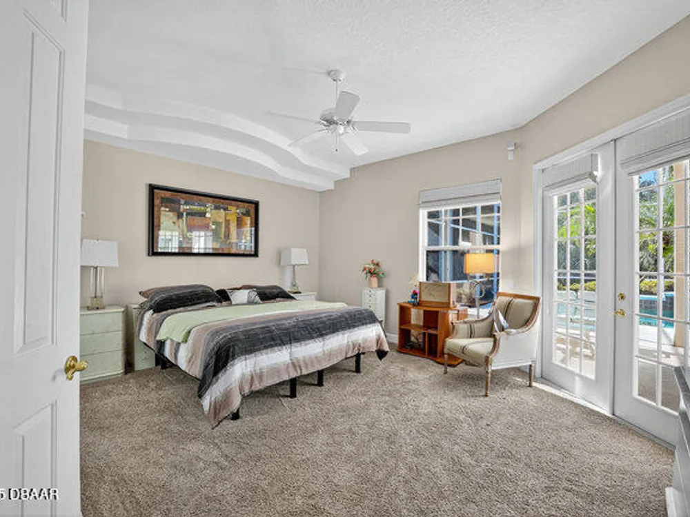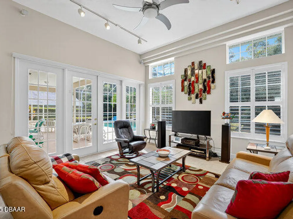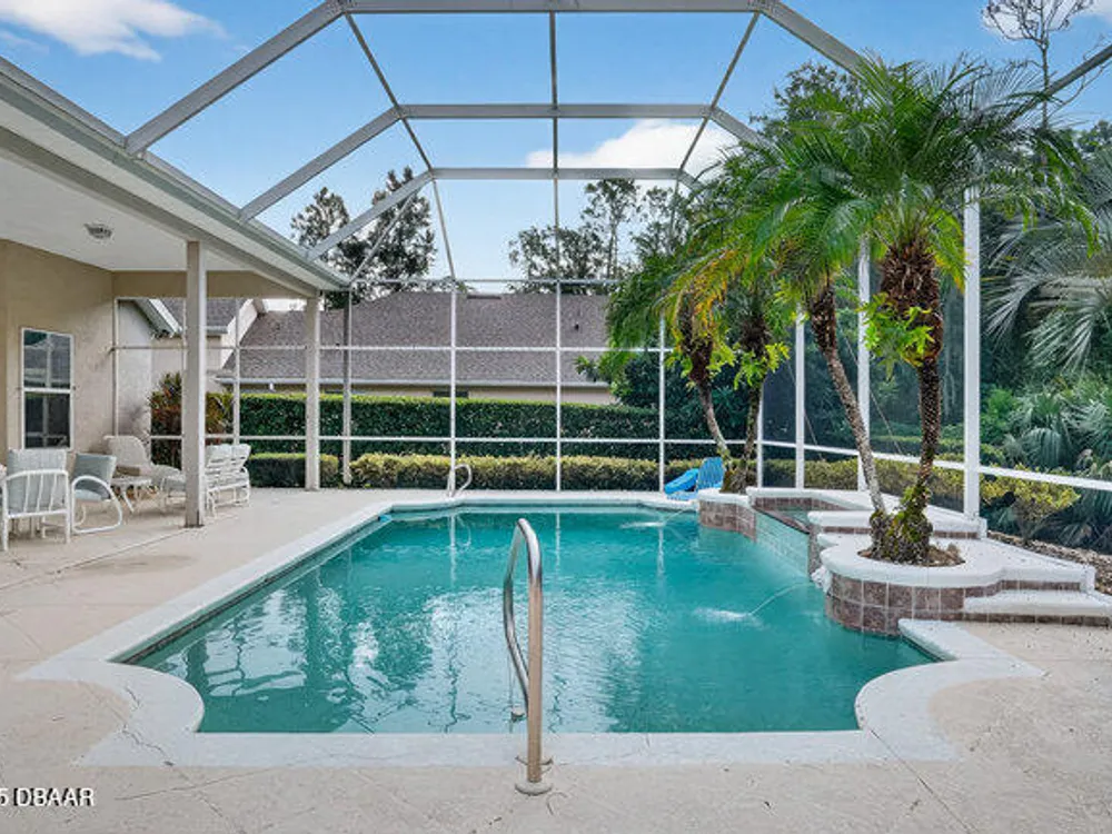 Kargar Custom Built Estate Home in the prestigious gated community of Breakaway Trails! From the moment you step inside, this immaculately maintained residence impresses with its open, inviting floor plan, soaring 12-foot ceilings, and an abundance of natural light. The grand living and dining rooms set the tone for elegant entertaining, while the gourmet kitchen offers an island with breakfast bar, solid surface counters, tiled backsplash, plentiful cabinetry, and a cozy breakfast nook. The split floor plan ensures privacy, featuring 2 serene guest bedrooms and two full baths each with direct bedroom access on one side of the home. On the opposite wing, the spacious owners' suite delivers a true retreat with French doors to the pool, a custom California closet system, double vanities, garden tub, and walk-in shower. The 4th bedroom and pool bath are conveniently located nearby. Perfectly designed for indoor-outdoor living, the family room and owners' suite open to an .. an expansive screened lanai with sparkling pool overlooking a peaceful preserve. Additional enhancements include crown molding, built-ins, plant shelves, porcelain tile flooring, central vacuum, NEW roof (2019), NEW HVAC (2019), NEW water heater (2025), and an oversized two-car garage with abundant storage. Set on nearly half an acre, this estate home offers both privacy and tranquility all within one of Ormond Beach's most desirable communities. Every detail reflects pride of ownership, making this home move-in ready! --