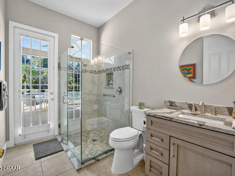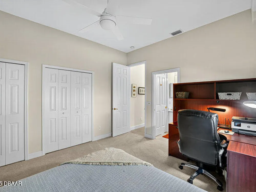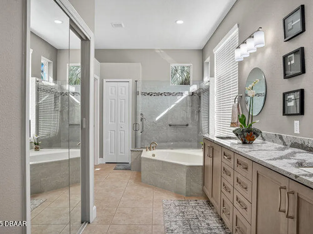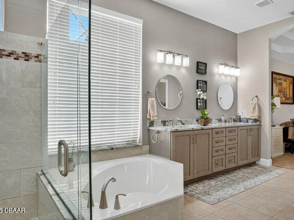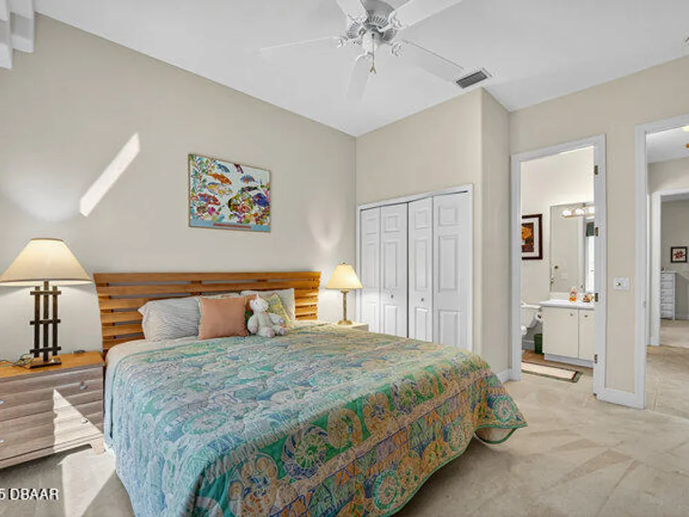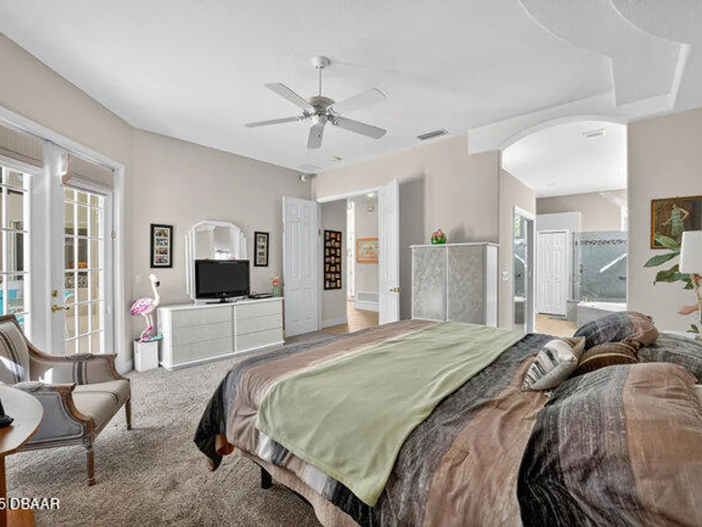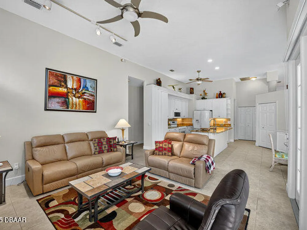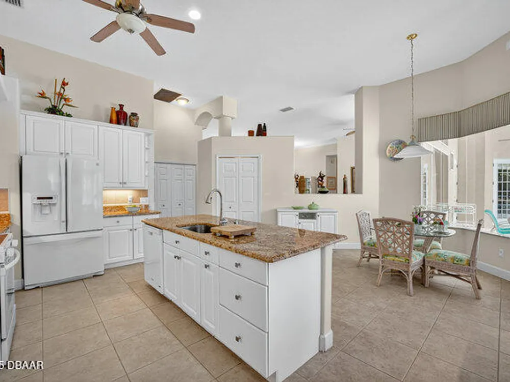 Kargar Custom Built Estate Home in the prestigious gated community of Breakaway Trails! From the moment you step inside, this immaculately maintained residence impresses with its open, inviting floor plan, soaring 12-foot ceilings, and an abundance of natural light. The grand living and dining rooms set the tone for elegant entertaining, while the gourmet kitchen offers an island with breakfast bar, solid surface counters, tiled backsplash, plentiful cabinetry, and a cozy breakfast nook. The split floor plan ensures privacy, featuring 2 serene guest bedrooms and two full baths each with direct bedroom access on one side of the home. On the opposite wing, the spacious owners' suite delivers a true retreat with French doors to the pool, a custom California closet system, double vanities, garden tub, and walk-in shower. The 4th bedroom and pool bath are conveniently located nearby. Perfectly designed for indoor-outdoor living, the family room and owners' suite open to an .. an expansive screened lanai with sparkling pool overlooking a peaceful preserve. Additional enhancements include crown molding, built-ins, plant shelves, porcelain tile flooring, central vacuum, NEW roof (2019), NEW HVAC (2019), NEW water heater (2025), and an oversized two-car garage with abundant storage. Set on nearly half an acre, this estate home offers both privacy and tranquility all within one of Ormond Beach's most desirable communities. Every detail reflects pride of ownership, making this home move-in ready! --