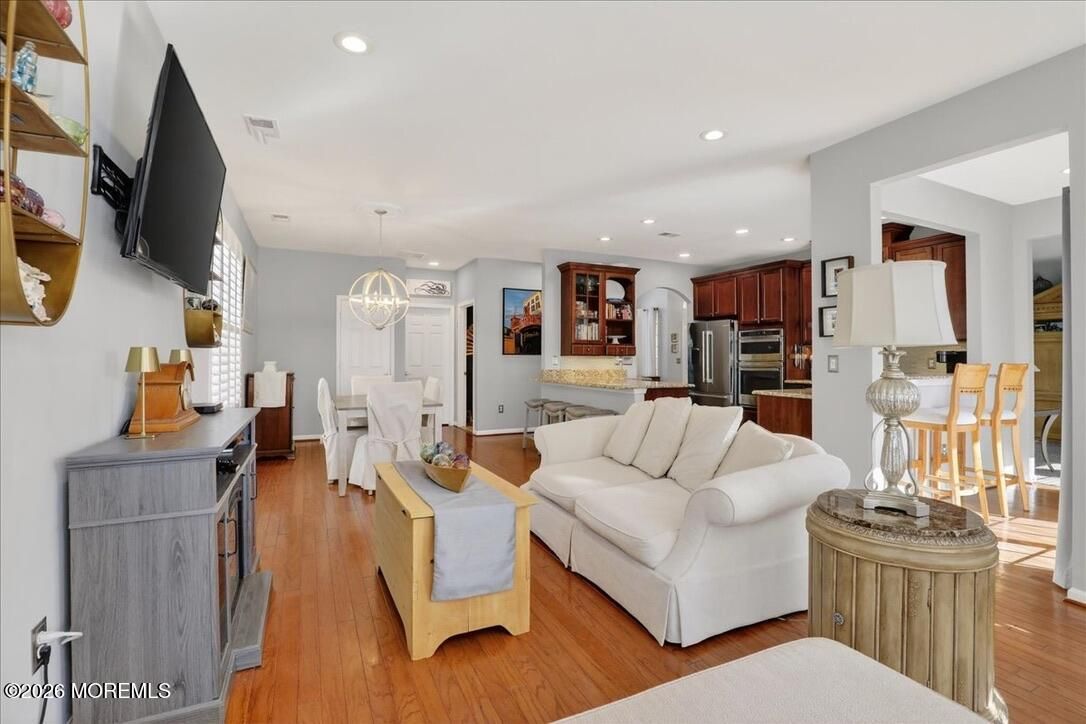 Coming Soon~No showings until 2/17. Built by Mignatti, this 55+ community features 2 clubhouses, indoor & outdoor heated pools, spa, gym, tennis courts, putting greens, & more! Open-concept Cape May model offers 2 BR's w/ensuite newer baths, wood floors, 9' ceilings, and an eat-in kitchen w/SS appliances, 48'' wood cabinetry, granite countertops, and a stunning NEWER sparkling backsplash. Thoughtful upgrades include new chandeliers, plantation shutters in the breakfast & family room, & NEW Trex Deck! Large laundry/mud room with utility sink is conveniently located next to garage. Originally one of the model homes, the current artist-owners have created a warm, stylish space with a keen eye for color and detail. Enjoy the natural beauty of Barnegat Bay, LBI beaches, & AC only 45 min away
