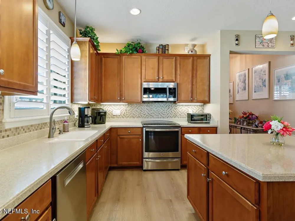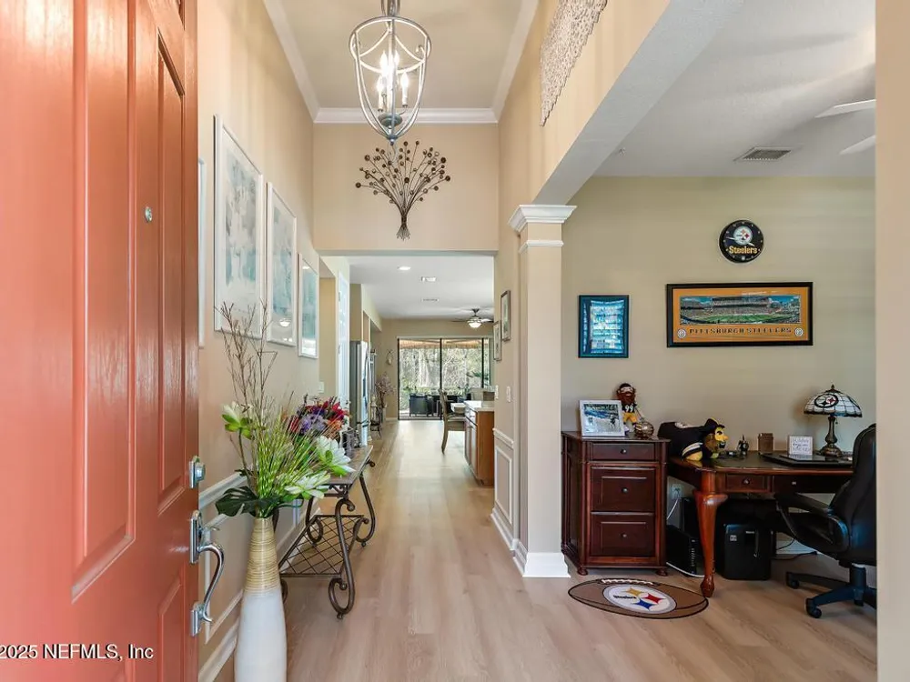 BRAND NEW ROOF (SEP 2025). Discover the Willow floorplan in the highly sought-after, gated 55+ community of Del Webb Ponte Vedra in Nocatee. Nestled on a tranquil cul-de-sac and surrounded by a serene nature preserve, this beautifully designed block construction home offers 2 bedrooms, 2 bathrooms, office/flex room, plus 16x40 sqft of screened outdoor living space on peaceful preserve lot. Step outside to the extended covered and screened lanai, where you can relax and enjoy sweeping views of the lush preserve. Inside, the open-concept kitchen features elegant 42'' cabinets with under and over-cabinet lighting, a spacious kitchen island, convenient roll-out drawers, a stylish backsplash, and updated stainless steel appliances. Recent upgrades include new Roof (2025), 6 new Anderson windows (2021), vinyl wood plank flooring (2022), updated interior paint (2023), and a newer HVAC system with a Nest thermostat (May 2022).