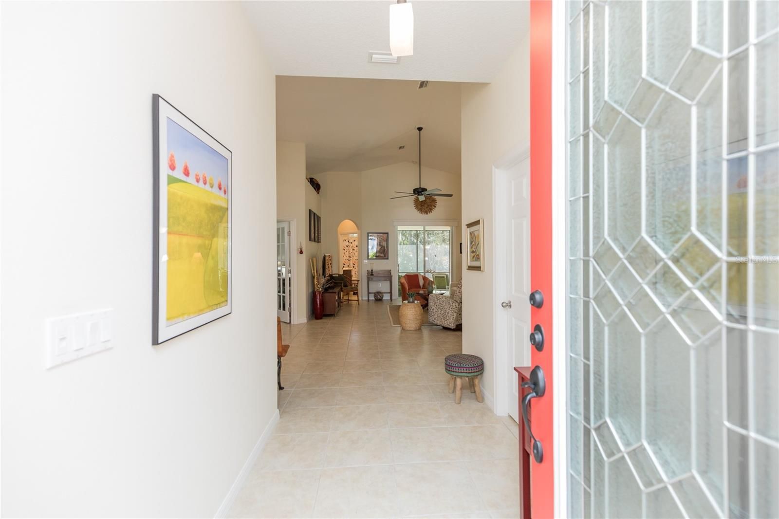 Charming Grand Haven Retreat with Ultimate Privacy and Resort-Style Living! Nestled in the sought-after, gated community of Grand Haven, this beautifully maintained 3-bedroom, 2-bathroom home backs up to a serene wooded area with no rear neighbors -- you'll enjoy peaceful mornings and quiet evenings surrounded by nature. Step inside to discover a light-filled living room with soaring vaulted ceilings, creating an airy and inviting space for both relaxing and entertaining. The eat-in kitchen is warm and welcoming, featuring granite countertops, a spacious pantry, and ample room for casual dining. Plantation shutters add a touch of timeless charm throughout the home. The primary bedroom is a peaceful retreat with luxury vinyl plank flooring, a tray ceiling, a walk-in closet and a spacious ensuite bathroom with his and hers sinks, a large soaking tub and a separate walk-in shower. The third bedroom, accented with elegant French doors, is perfectly designed for a cozy guest room or a stylish home office. Step outside to enjoy the charming covered front porch or relax on the screened-in rear porch, where you can sip your morning coffee while overlooking the lush, private backyard and wooded views. This lot says small with just under 10,000 square feet but the huge side yard says "wow". As a resident of Grand Haven, you’ll have access to two premier amenity centers featuring resort-style pools, state-of-the-art fitness facilities, and an impressive selection of tennis, pickleball, and bocce courts. The Jack Nicklaus Signature Golf Course provides a world-class experience, while the on-site café and golf club restaurant provide the perfect spots to meet friends and neighbors for casual dining. Whether you're seeking a peaceful retreat or an active lifestyle in one of Palm Coast’s most desirable communities, this home is the perfect place to call your own. Schedule your private tour today and fall in love with all that Grand Haven provides!
