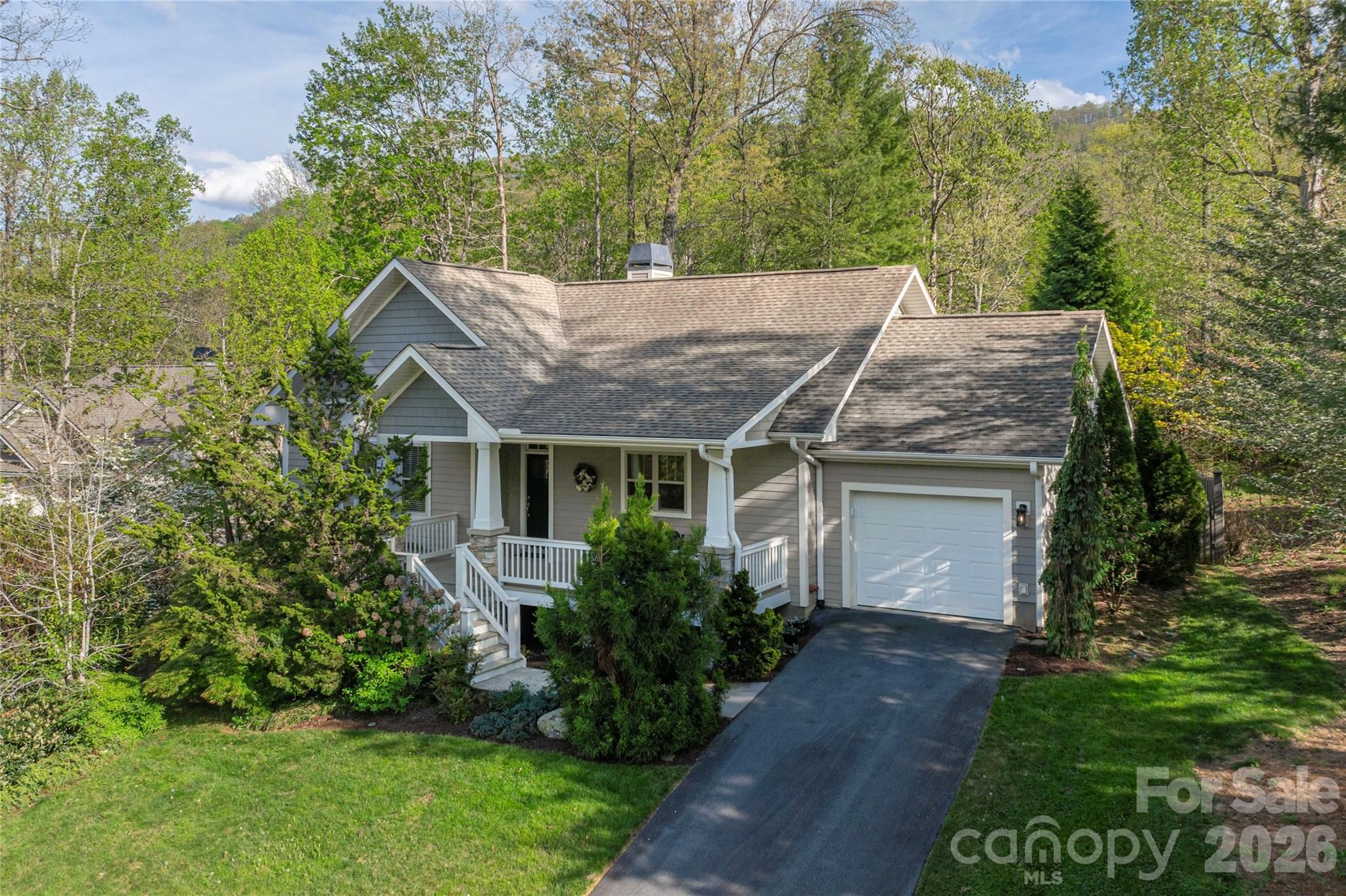 OPEN HOUSE SUNDAY APRIL 19th 2-4. Experience single-level living at its finest in this striking, meticulously maintained 2BR/2BA retreat on a private wooded lot in Biltmore Lake’s award-winning community. This open-concept home features vaulted ceilings, hardwood floors, and abundant natural light. The sun-dappled living room with classic stone gas fireplace flows into a contemporary kitchen with Viking range, Bosch refrigerator and dishwasher, rain forest granite counters, maple cabinetry, walk-in pantry, laundry room and breakfast bar. Entertain in the dining area or from the vaulted, screened-in back porch with garden views. Unwind in spacious bedrooms and savor peaceful mornings on the covered front porch. Located just a scenic stroll from the lake, this home offers prime access to Biltmore Lake’s many outdoor amenities, clubs, and community activities.