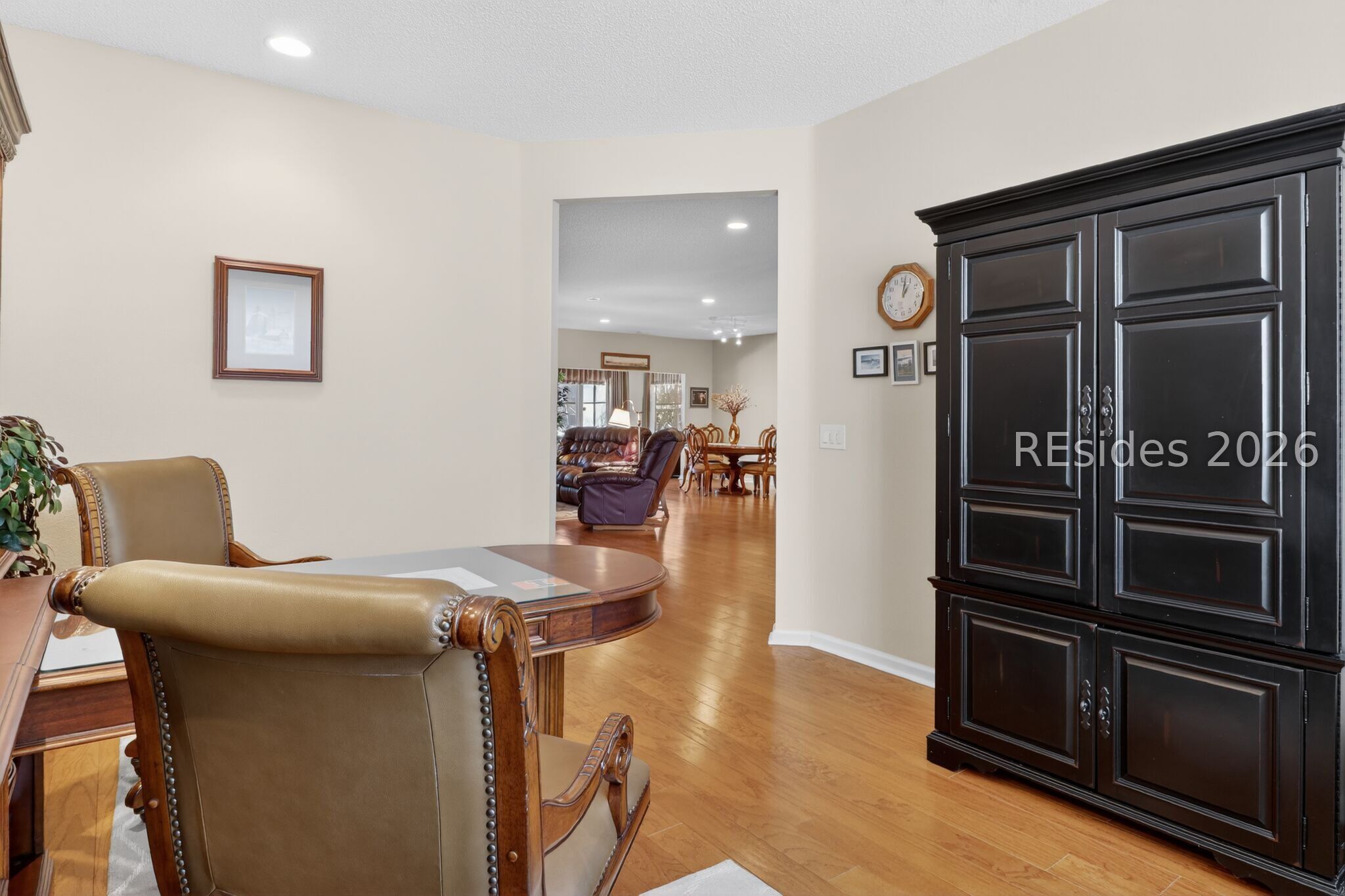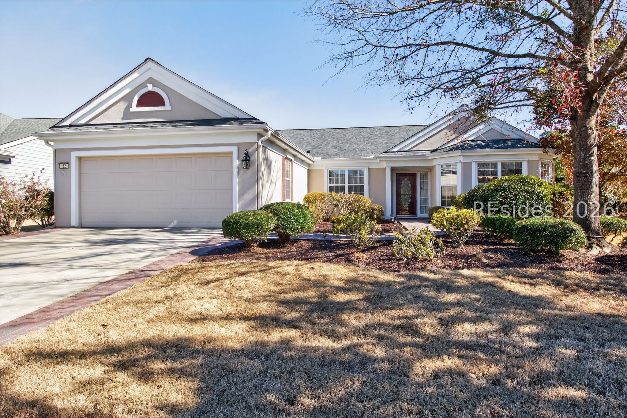 Popular Lilac model in Sun City Hilton Head offering 2 bedrooms, 2 bathrooms, a private den, and a rear Carolina Room. Enjoy Lowcountry living on the large screened, covered porch with paver flooring and vinyl windows for year-round use. Kitchen features cherry cabinets with roll-out shelving, Corian countertops, black appliances, natural gas cooktop, new Bosch dishwasher, eat-in bay window, and upgraded tile flooring. Wood floors in the great room and den. Spacious owner's suite with bay window, two walk-in closets, and raised bath vanities. Carpet in bedrooms, tile in baths. Major updates include new roof (2020) and HVAC (2017) with new compressor (2024). Additional highlights: 4-ft garage extension, attic storage, Tech Shield radiant barrier for improved energy efficiency, brick paver driveway ext. with brick paver walkway from driveway to the front door. Furnishings are available for sale. Enjoy the resort-style amenities of Sun City Hilton Head, including golf, pools, fitness centers, pickleball, tennis, and an active social calendar - all just minutes from historic Bluffton and Hilton Head Island beaches.