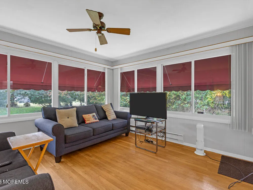 Coming Soon Showings Begin Saturday 10/18. Expanded Sussex Model - 2 BD, 1.5 BA, 1-Car Garage. Beautifully maintained home featuring natural gas, hardwood floors throughout, newer windows including a bay window in the living room, and a bright open-concept layout. The updated kitchen offers 42-inch cabinets, upgraded countertops, appliances, breakfast bar, and garden window. Sunroom provides access to the garage and patio. Spacious primary bedroom, nice-size second bedroom, full bath and half bath. Newer roof, gas heat and central air, 6-panel interior doors, and underground sprinklers on well. Enjoy the private yard with patio and motorized retractable awning. Located in desirable 55+ Silver Ridge Park East offering low taxes, low-maintenance living, and great amenities including clubhouse, tennis courts, shuffleboard, and more! Convenient to dining, shopping, doctors, beaches, hospital, and parks.