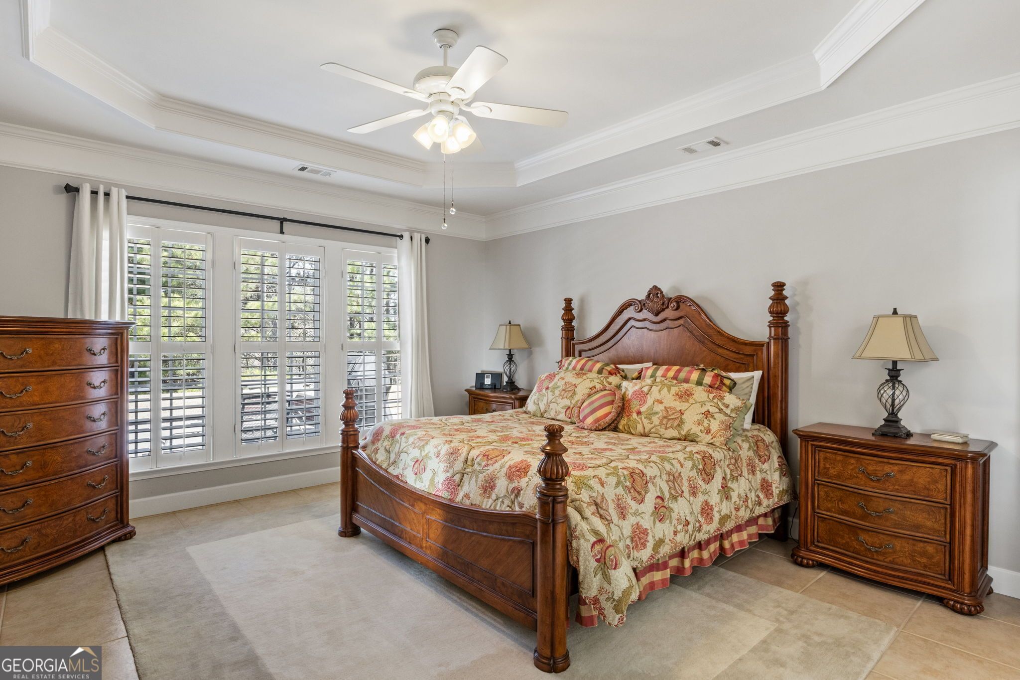 - Bookcases, Double Vanity, High Ceilings, Main Level Primary, Separate Shower, Soaking Tub, Split Bedrooms, Tile Bath, Tray Ceiling(s), Walk-In Closet(s), Dual Pane Window(s), Family Room, Entrance Foyer, Laundry Facility, Library, Home Office, Sunroom