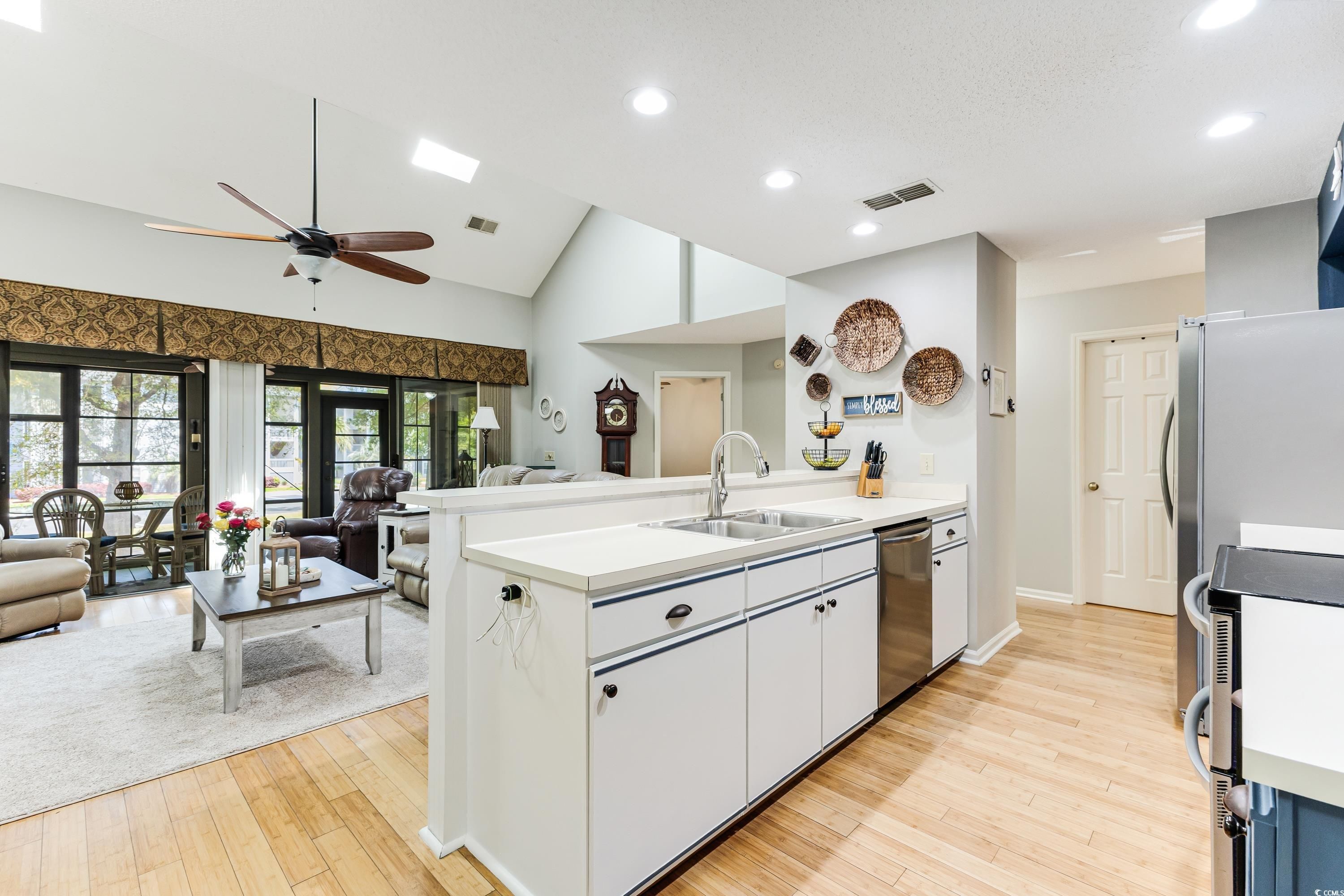 Rare opportunity to own a Club Villa in Sea Trail Plantation offering 4 bedrooms and 4 full bathrooms! In this floor plan, the main villa offers a master bedroom on the first level with a full size kitchen with tile backsplash, bamboo flooring, nice dining area and a huge open living room that also boasts bamboo flooring. You can also enjoy the outdoors in a spacious 3 season porch or a ground level covered patio. The main level has a 4th bedroom/lockout unit with gorgeous wood look ceramic tile, kitchenette, full size bathroom and a private 3 season balcony. The second level has two spacious bedrooms, each with their own full size bathrooms. Both HVAC units were replaced in 2025. The tandem style garage is one a kind with over 1,000 sq ft and can park several cars and has a huge storage area. Unit is being sold partially furnished. Possibilities for this property are endless as you can have a great investment/rental opportunity, a spacious beach get-away or just a nice beach/golf home! Sea Trail Plantation offer 3 championship courses, 2 resident clubhouses, outdoor pools, tennis, pickleball, fitness center, beach parking, library and a superb location near the beautiful Sunset Beach. Convenient to shopping, dining and everything the Grand Strand has to offer.
