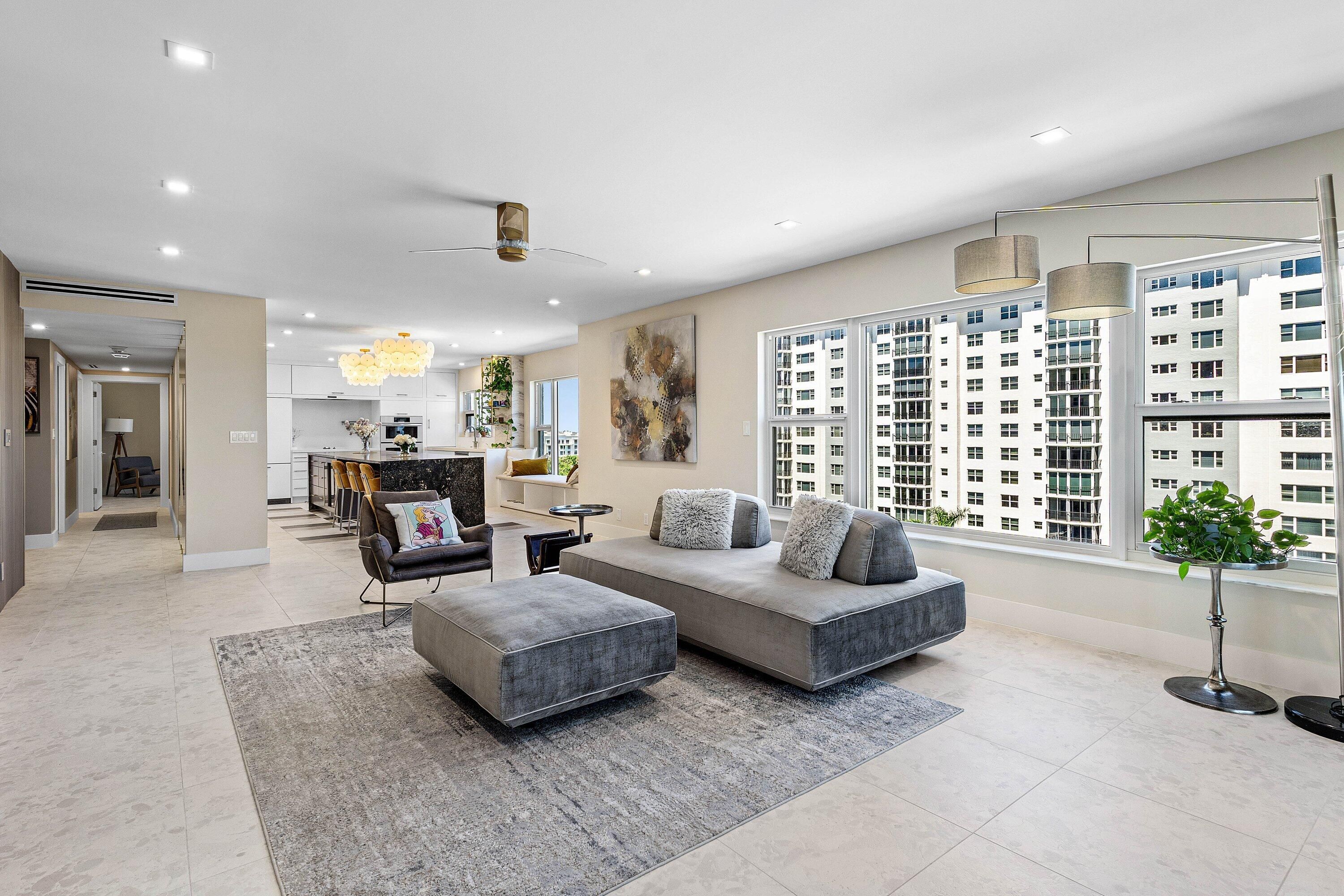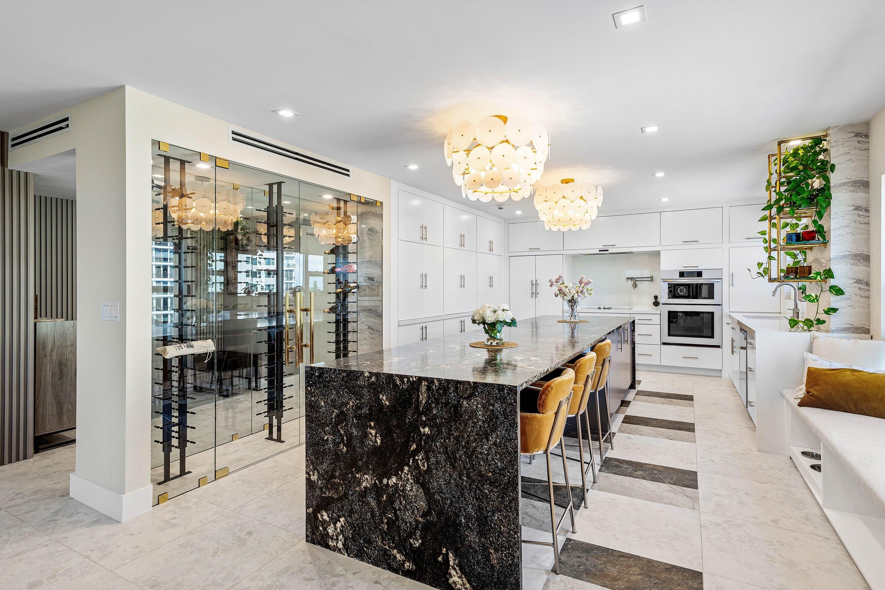 Experience luxury coastal living in this stunning, newly renovated 8th-floor corner unit with breathtaking intracoastal and panoramic ocean views. Spanning 1,760 square feet of elegant living space and a total of 1,970 square feet, this meticulously updated residence is designed to satisfy even the most discerning buyer. The smartly designed split bedroom plan provides privacy and comfort, complemented by large impact windows and sliding doors throughout that frame the spectacular vistas. Enjoy your own fully enclosed private patio—a perfect retreat for relaxing or entertaining guests. The sophisticated kitchen is a chef's dream, featuring a Fisher & Paykel refrigerator, Samsung double oven, microwave, dishwasher, and a massive kitchen island adjacent to a striking glass wine closet. Beautiful porcelain tile flooring flows seamlessly throughout, accentuated by designer accent walls in the living room and primary bedroom, custom lighting, and electric shades. The spacious primary suite boasts stunning ocean views, a luxurious en-suite bath, and a generous walk-in closet. The guest bedroom offers a versatile Murphy bed, an ample outfitted walk-in closet, and a beautifully updated bathroom. Seagate Towers offers an unparalleled lifestyle, ideally located near Delray Beach, just 20 minutes from an international airport, and steps away from the vibrant Atlantic Avenue. Explore the area's chic restaurants, high-end galleries, boutique shoppes, and more....all just moments from your doorstep. This property is financially sound, featuring a new roof (2023), completed concrete restoration and ELSS, EV charging stations, and amenities including free boat dockage (availability permitting), on-site management, front desk personnel, night watchperson, and a huge heated pool. Enjoy the coastal room perfect for social events, along with BBQ, grilling, lounge areas, and more. Seagate Towers truly has it all. Your ideal oceanfront retreat awaits.