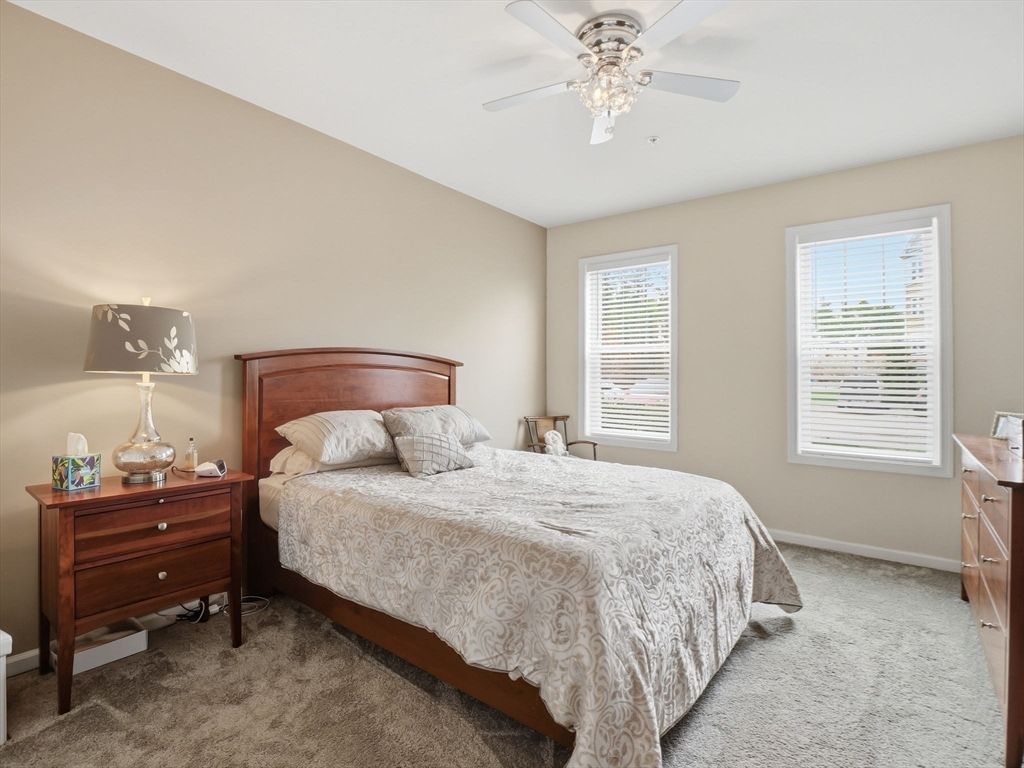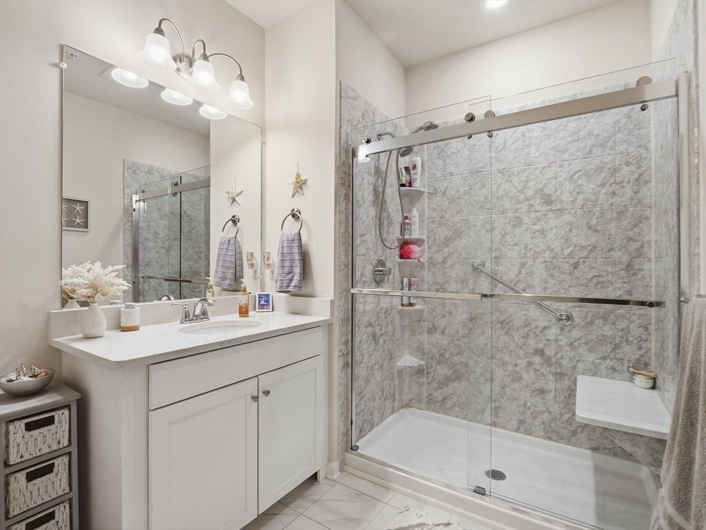 Welcome to Martins Landing, North Reading’s premier 55+ community, where refined, low-maintenance living meets an amenity-rich lifestyle. This move-in ready and upgraded residence offers effortless comfort, elevated design, and the ease of a true lock-and-leave experience for today’s discerning buyer. Inside, natural wood flooring flows through open living spaces, anchored by a bright, upgraded kitchen with quartz countertops and upgraded pendant lighting. The living and dining areas are designed for both everyday ease and entertaining. Enjoy coffee or read a book on your private patio. The spacious primary bedroom features a walk-in closet, while the versatile den is ideal for a home office or guest space. Additional highlights include upgraded lighting, ceiling fans, an enhanced walk-in shower with bench, and in-unit laundry. All just moments from shopping, dining, and major routes. A place where comfort, style, and ease come together, ready to welcome you home.