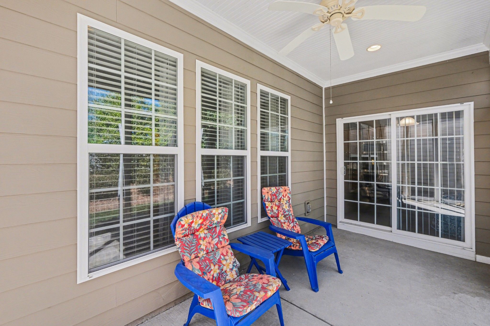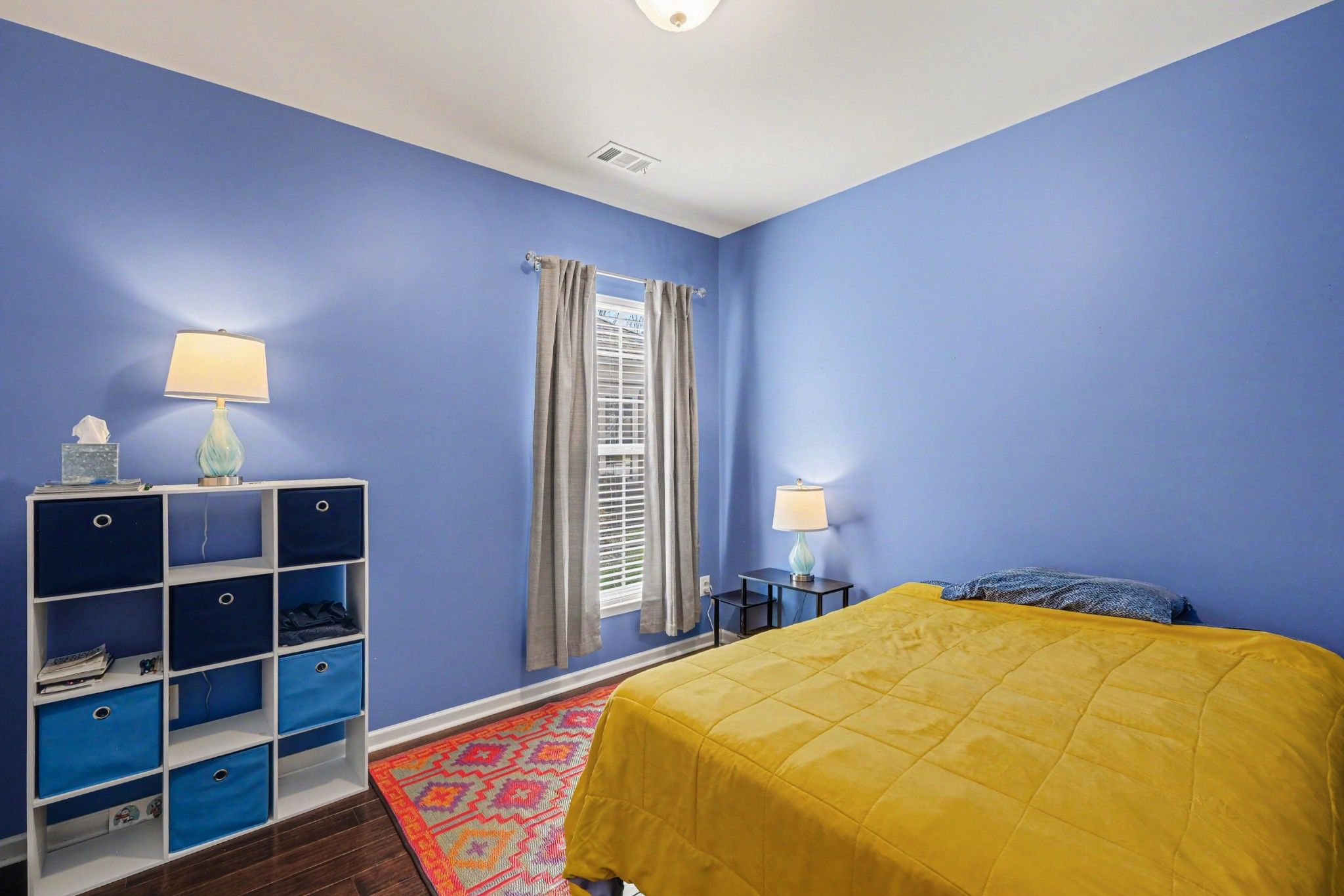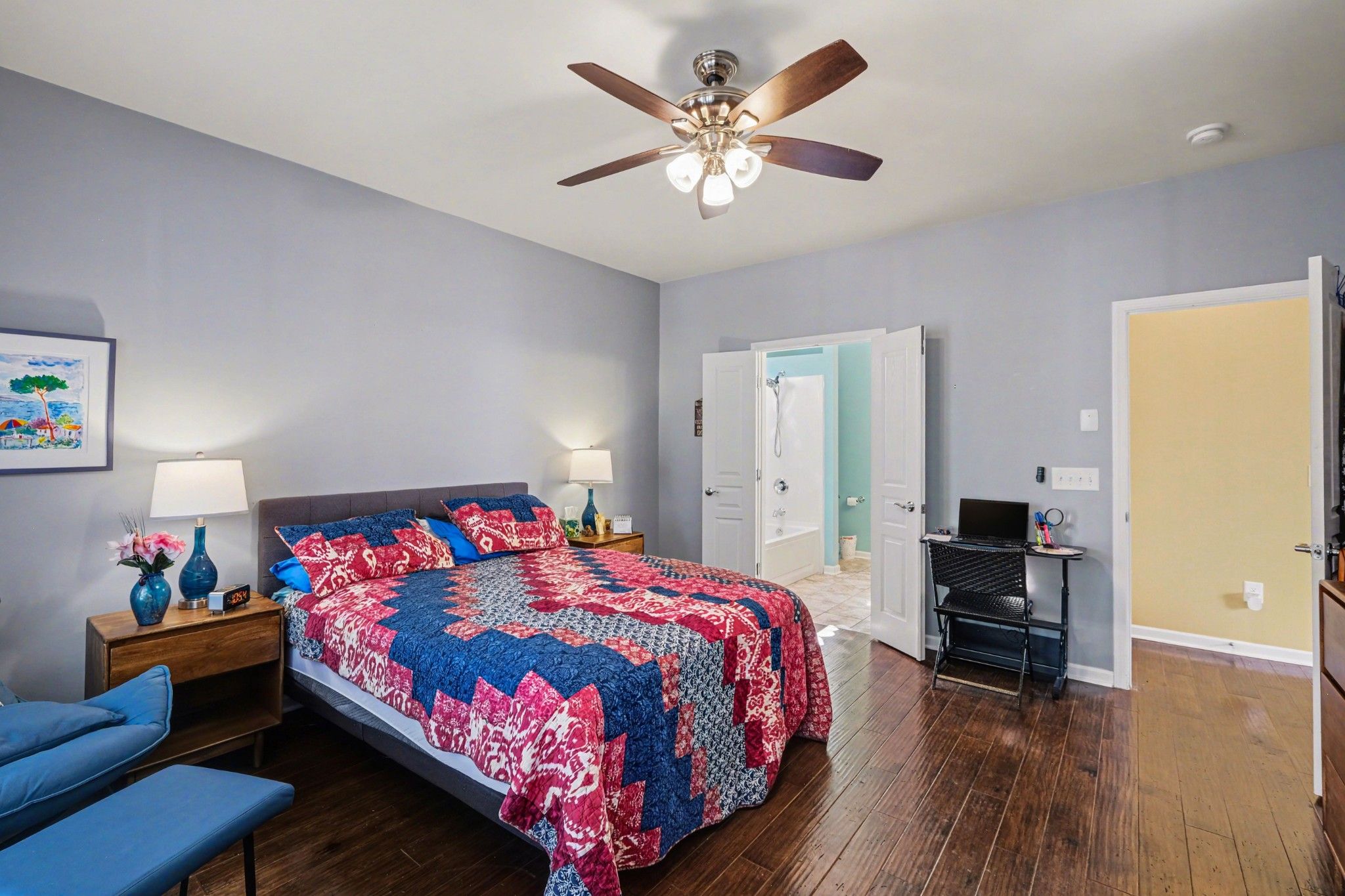 Well-kept Pine Springs plan in gated 55+ Del Webb at Lake Providence offering an active, amenity-rich lifestyle. Thoughtfully designed single-level, step-free home with 2 bedrooms, 2 full baths, and a flexible third bedroom ideal for office or guest use. Hardwood floors throughout with no carpet. Open layout with generous living and dining spaces and abundant natural light. Kitchen flows into living area and features granite countertops, gas range, tile backsplash, under-cabinet lighting, two pantries, and dining nook. Spacious primary suite includes double vanities, oversized walk-in closet, and plenty of natural light. Screened-in patio backs to a private, tree-lined berm, creating a peaceful outdoor setting. 2-car garage with attic storage, whole house surge protector, and irrigation system. Community offers clubhouse, indoor and outdoor pools, fitness center, indoor walking track, pickleball, tennis, walking trails, paddle boats, and stocked lake.