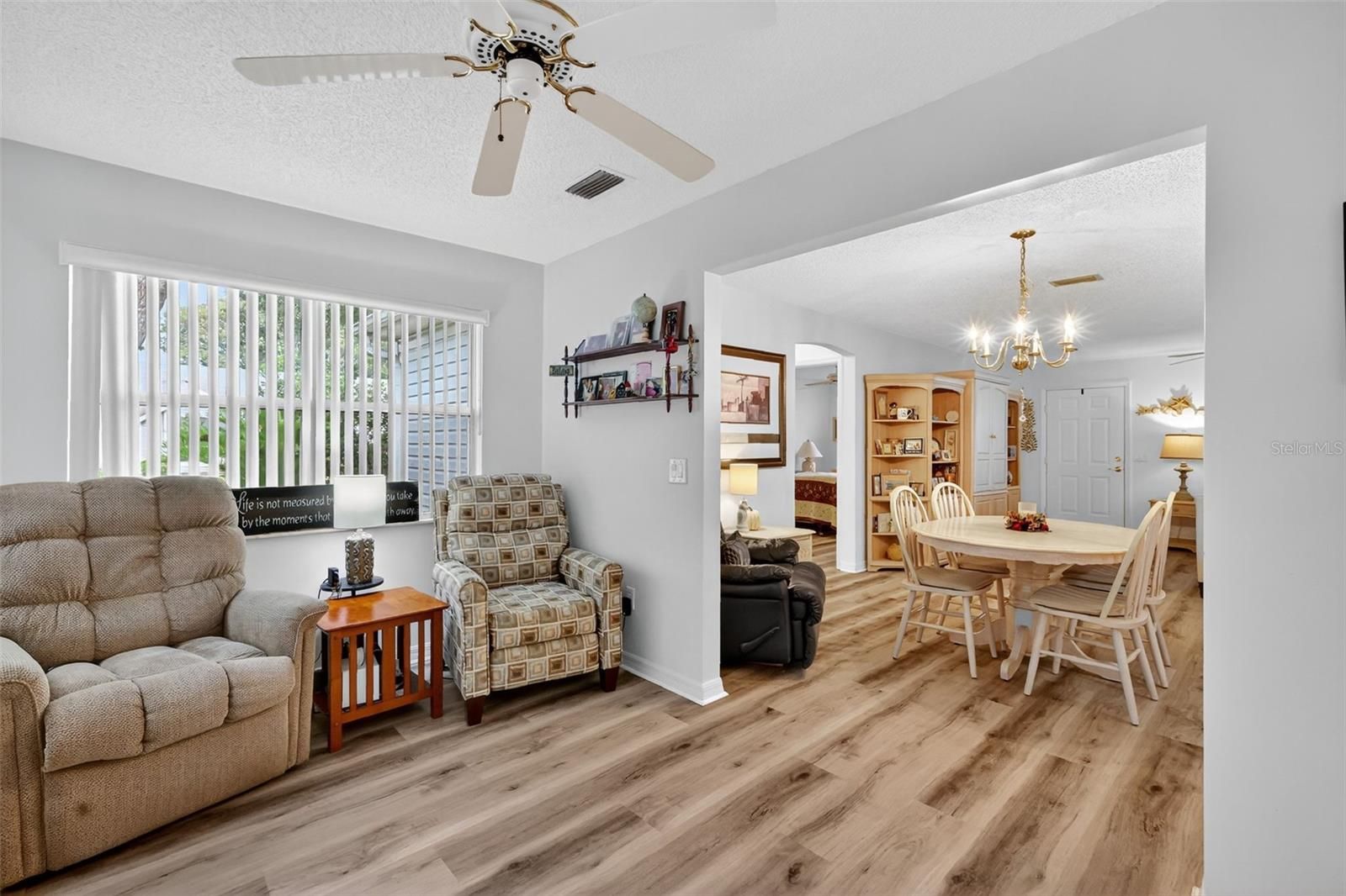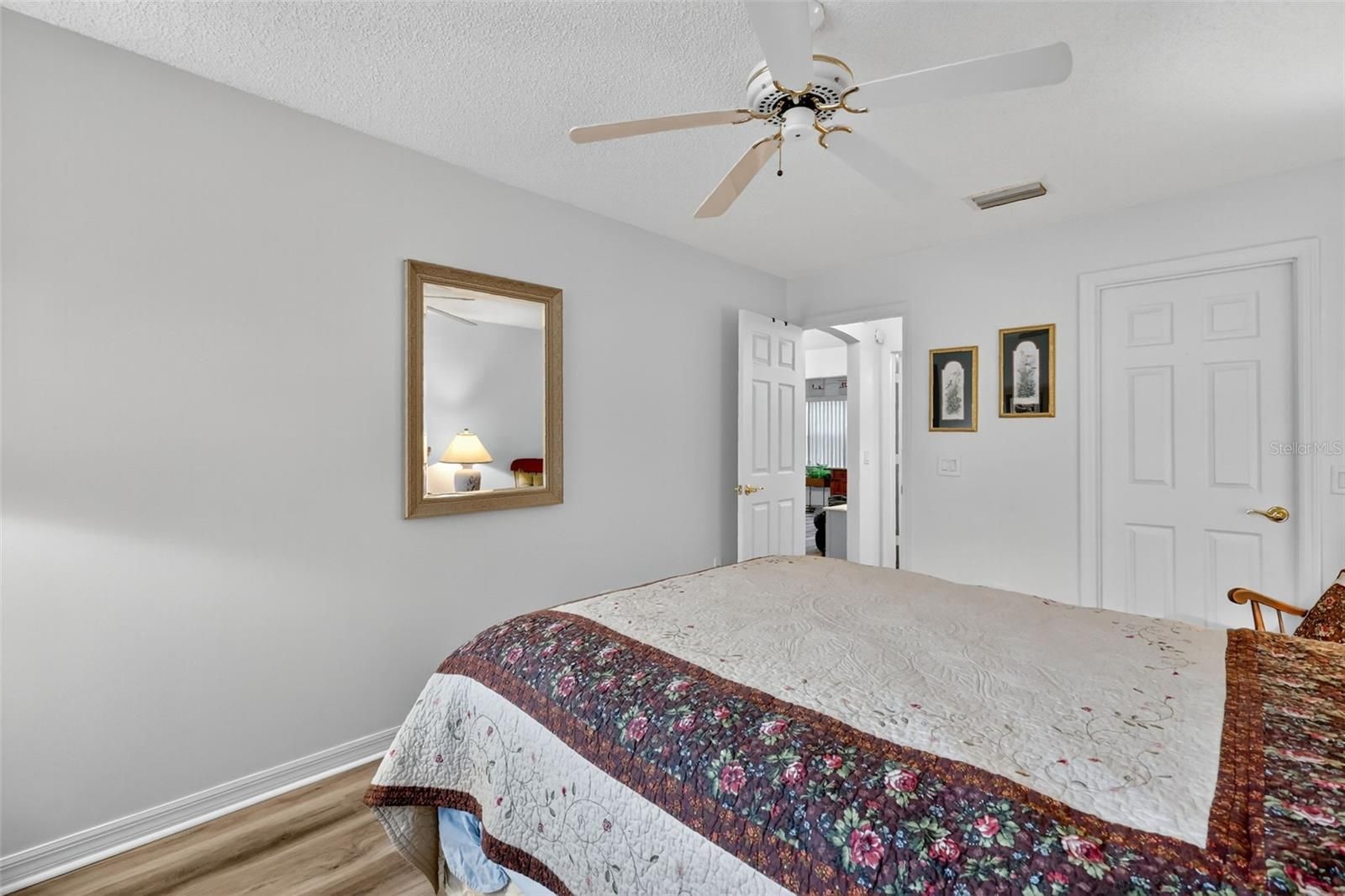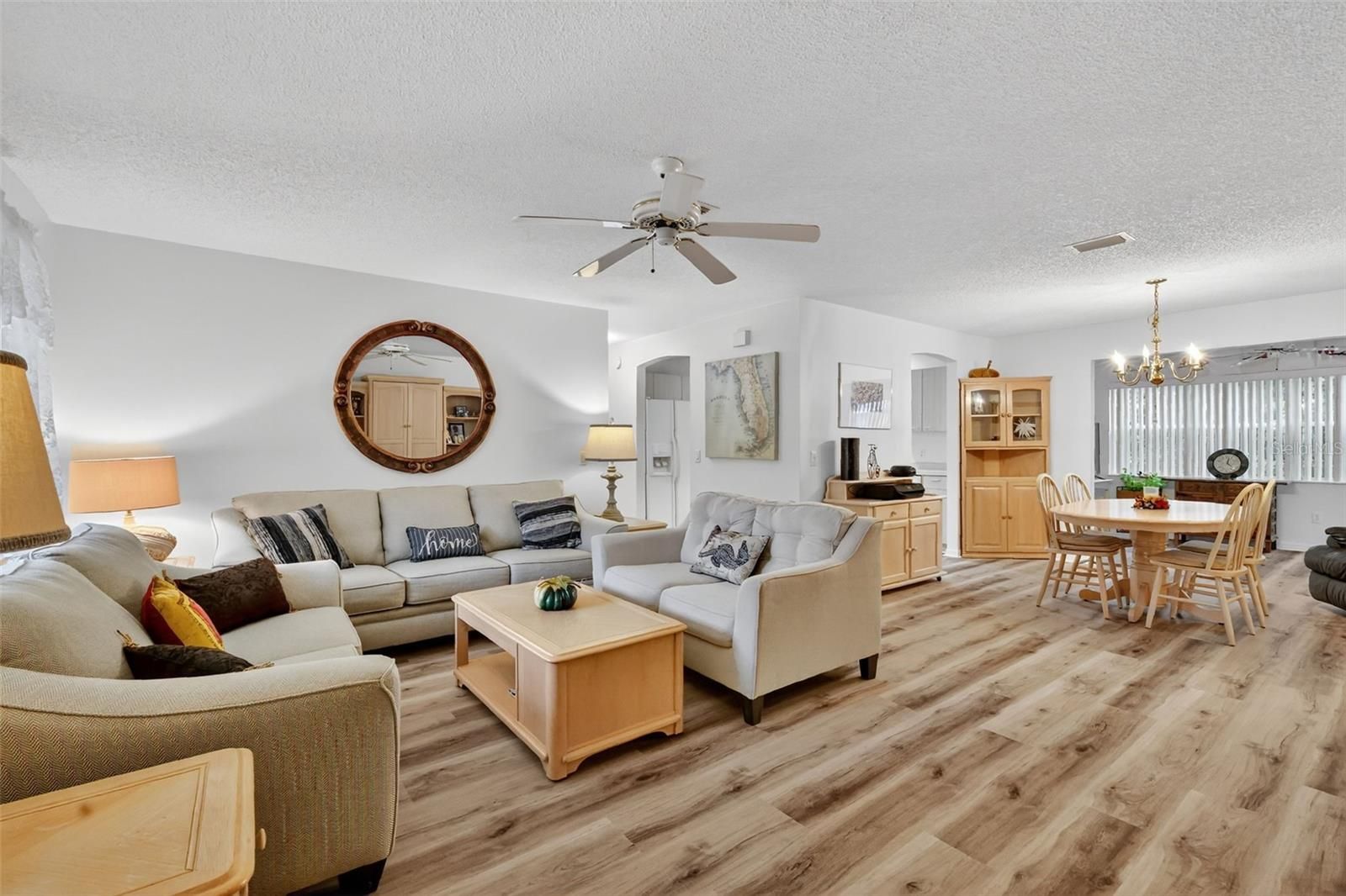INVESTMENT OPPORTUNITY! (currently rented but tenant is flexible.) BEAUTIFUL, TURNKEY, OPEN CONCEPT 2/2 Corpus Christi featuring a WONDERFUL UNDER-AIR BONUS ROOM and PAVER LANAI on a LARGE CORNER LOT in the quaint Village of Mira Mesa! CONVENIENTLY LOCATED only MINUTES to BOTH Spanish Springs Town Square and Lake Sumter Landing. BOND PAID! A lovely FRONT PORCH, PAINTED walk and driveway, and MATURE landscaping add to the exterior charm of this AMAZING home! Enter in to the SPACIOUS OPEN FLOOR PLAN of living, dining, and kitchen showcasing LUXURY VINYL PLANK flooring THROUGHOUT and THREE SOLAR TUBES for ABUNDANT natural light! The EAT-IN kitchen boasts light cabinetry and a corner DINETTE area. Just off of the dining room is a MULTI-FUNCTIONAL, UNDER-AIR BONUS ROOM with a plethora of windows. This VERSATILE ROOM offers the ideal space for a den, media room, or home office. A side door, off of this area, allows easy access to the adjacent screened LANAI featuring PAVER floors and roll down shades. This FANTASTIC OUTDOOR SPACE is surrounded by lush, MATURE landscaping, offering plenty of PRIVACY—perfect for peaceful relaxation or entertaining family and friends! Back inside, the primary bedroom features LVP flooring and a generous WALK-IN closet. Its en-suite bathroom has WHITE cabinetry with a make-up vanity, a LINEN closet, and a WALK-IN shower. A SPLIT FLOOR PLAN with an additional bedroom and a second bathroom ensures a PRIVATE guest wing. Bedroom two offers LVP flooring, DOUBLE windows, and a built-in closet. The second bathroom features a WHITE vanity, TILED tub and shower combination, and a hallway LINEN closet. The INTERIOR LAUNDRY room features ADDITIONAL cabinetry with a built-in PANTRY for extra storage. It leads you into the two-car garage with PAINTED floors, cabinets, a suspended storage rack, ceiling fan, and PLENTY of space for parking! DON’T MISS THE OPPORTUNITY TO MAKE THIS INCREDIBLE HOME YOUR OWN! The village of Mira Mesa is conveniently located between Spanish Springs Town Square and Lake Sumter Landing; Close to Tierra Del Sol Country Club and Championship Golf Course; Mira Mesa Executive Golf Course; Hacienda Regional Recreation Center; Chula Vista Recreation Center; multiple pools, golf, and pickle ball; The Villages Regional Hospital; and 466 with an abundance of shopping, restaurants, banks, medical, and more! PLEASE WATCH OUR WALKTHROUGH VIDEO OF THIS BEAUTIFUL, TURNKEY HOME and call today to schedule your Private Showing or Virtual Tour!