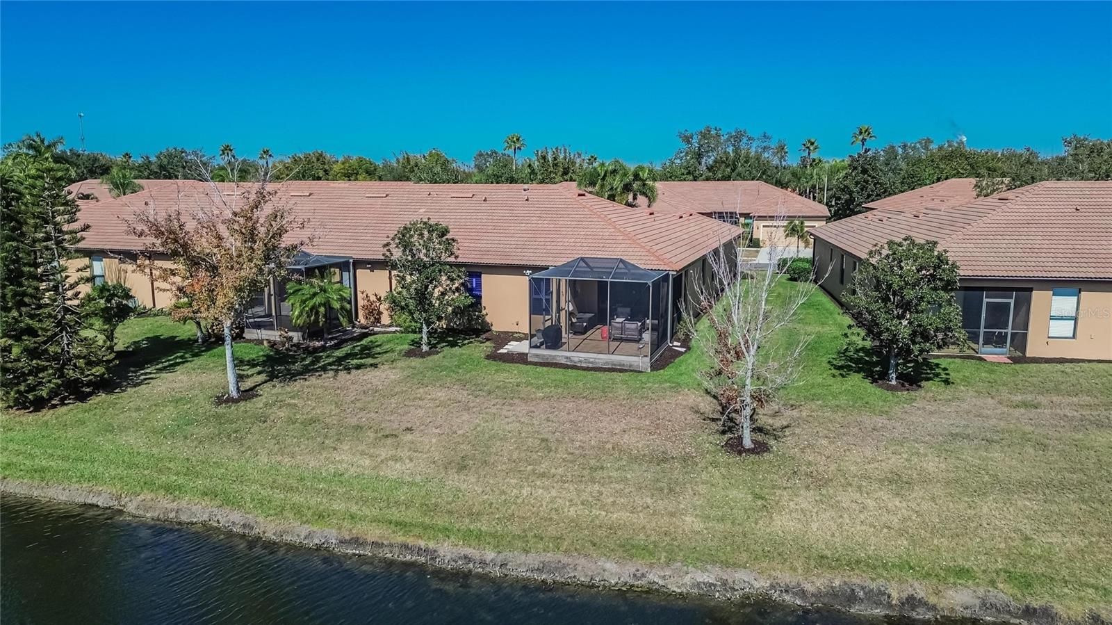 PARADISE AWAITS!! GORGEOUS WATERVIEW.. METICULOUSLY MAINTAINED 2 bedrooms, with an office/den, 2 bath 2 car garage villa located in the maintenance free living of Southshore Falls..... This beautiful villa is move in ready. Villa has a beautiful WATER view. Screened entrance and also full screen on garage door. Wonderful cross breeze throughout the home during the cooler months. Landscaping maintained by HOA. This pristine condition home boasts an open kitchen with breakfast bar and room for bistro seating. Many upgrades including large tiled lanai, shower with glass enclosure, plantation shutters, & water softener. Split floorplan works great for when you have guests. As you step outside into the lanai and a enjoy the peace and quiet of no backyard neighbors. Perhaps enjoy a cup of coffee or an adult beverage with a good book or watch the ever-changing views of nature on the beautiful pond. Landscaping maintained by HOA. COME CHECK THE STATE OF THE ART RESORT STYLE AMENITIES... YOU WILL BE WANTING TO PROLONG YOUR VISIT WITH A DIP IN THE BEAUTIFUL POOL OR RELAX AT THE CLUBHOUSE. You will never be bored in this gated community that offers lots of social activities and clubs. 3 pools, including LAGOON POOL, RESISTANCE POOL, AND EAGLES NEST POOL are all heated, hot tub, clubhouse, with state-of-the-art fitness center! Casual coffee cafe, hobby/craft room, Ballroom, library/card room, billiards, putting green, shuffleboard and bocce ball courts!! Walking trails, tennis and pickleball courts, fitness, and a community that allows pets. NO CDD, don’t miss your opportunity and make this your home today!! Easy to view. Chat with the neighbors and learn first hand what this community has to offer... plan on relaxing at the pool or enjoying some exercise at the pickleball courts or gym, or perhaps playing cards, or Bingo or crafts.. so much to do.. so stop by and hear all about the fun your new friends and neighbors are experiencing living in this beautiful community. Make an appointment to view. Easy to view. YOU WILL NOT BE DISAPOINTED! Furnishings available for purchase under separate contract.