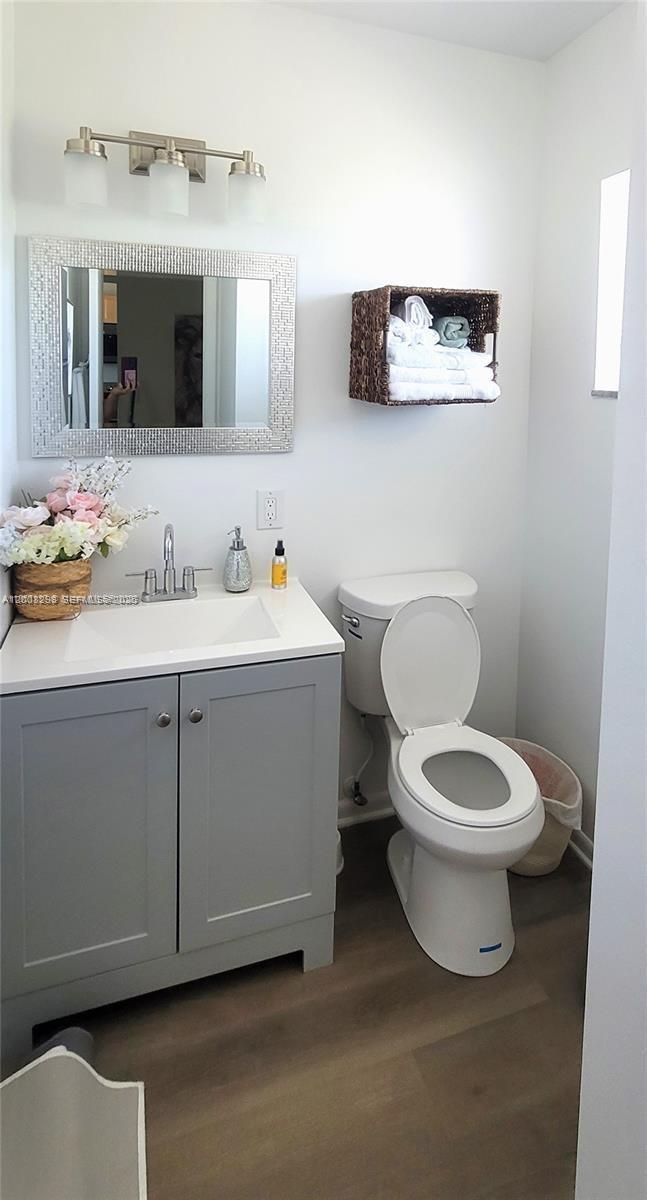 This beautifully updated 1 bedroom 1.5 bath condo is waiting for you! With screened porch in 55+ community. Renovated kitchen with quartz countertops and stainless-steel appliances, double door fridge. New A/C and compressor, new water heater, new vinyl floors, desk area with quarts top and updated bathrooms with new vanities and toilets. New faucets and lights, new fans and fresh neutral paint. New impact door. All done in 2023. Convenient location off of I95 near Hollywood close to shopping, restaurants and the beach. Ample closet space and unit comes with separate storage room. Many amenities include lakefront clubhouse, heated pool, gym and cable. Can rent after 1st year. Schedule your visit in advance. SELLER WILL PAY $23,000 SPECIAL ASSESTMENT WITH FULL PRICE OFFER