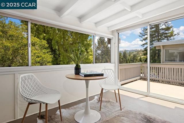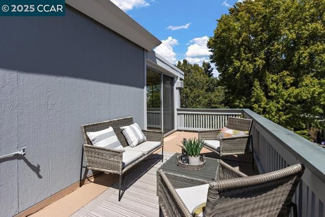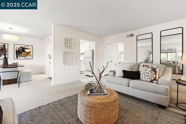 This bright and cheerful Sequoia Wrap end-unit feels like a private tree house, offering relaxing views of Mt. Diablo and an easy indoor–outdoor flow. The partially enclosed wrap is perfect for a home office, art studio, or hobby retreat, while the open side deck invites peaceful morning coffee and glowing evening sunsets. Extra windows in the kitchen and bath fill the home with natural light, and thoughtful updates—smooth ceilings, a step-in shower, newer refrigerator, washer/dryer, and air conditioner—make daily living comfortable and convenient. With no yard to maintain and exterior building care handled for you, you’ll spend less time on chores and more time enjoying everything Rossmoor offers. Residents love the championship golf, popular pickleball courts, swimming, tennis, a top-notch fitness center, movie theater, art and hobby studios, and nearly 200 clubs and organizations. If you’re looking for a welcoming space in an unbeatable setting—where your free time is actually free—this is the one.