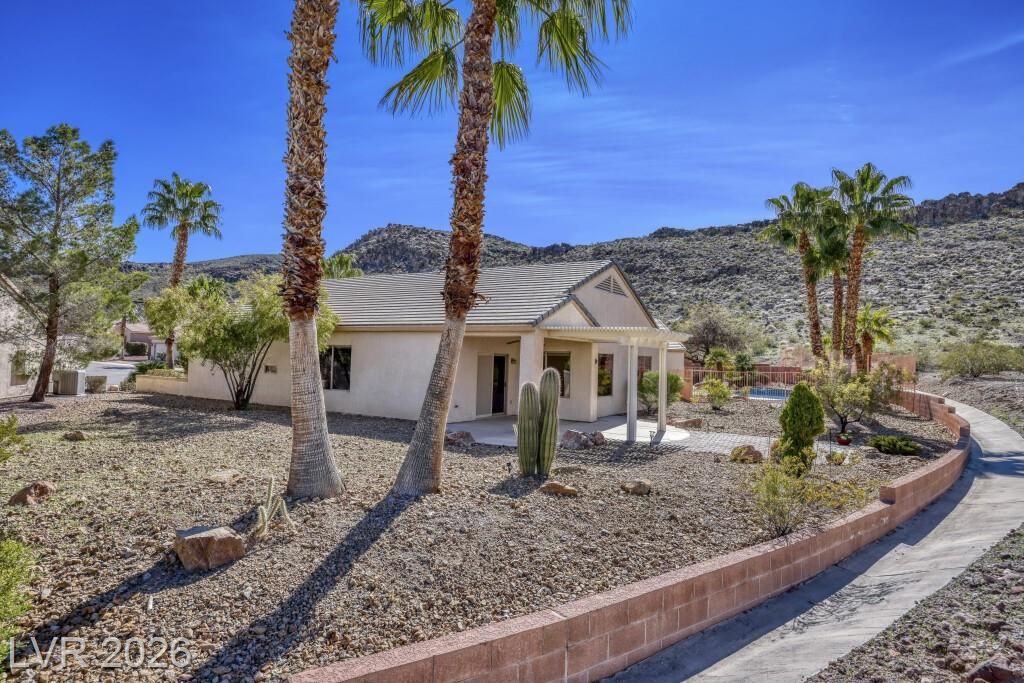 Location! On a premium cul-de-sac lot within Sun City MacDonald Ranch, this beautifully maintained home offers mountain views from the inviting front courtyard and extended covered patio, perfect to relax or entertain. Enjoy the spacious living and dining area filled with natural light, kitchen offering ample cabinets and a cozy dining nook. The versatile office/den is onveniently located off the main living area. The spacious primary suite provides comfort and privacy, plus beautiful views that create a peaceful retreat. Tile flooring throughout. All appliances included. Enjoy the exceptional clubhouse and recreation center featuring 18-hole executive golf course, fitness facility, resort-style pool and spa, pickleball, tennis and bocce courts, scenic walking trails, and Willows Restaurant. Ideally located near The District at Green Valley Ranch, you’ll appreciate nearby shopping, dining, and easy freeway access. Experience the lifestyle you’ve been waiting for — Welcome Home!