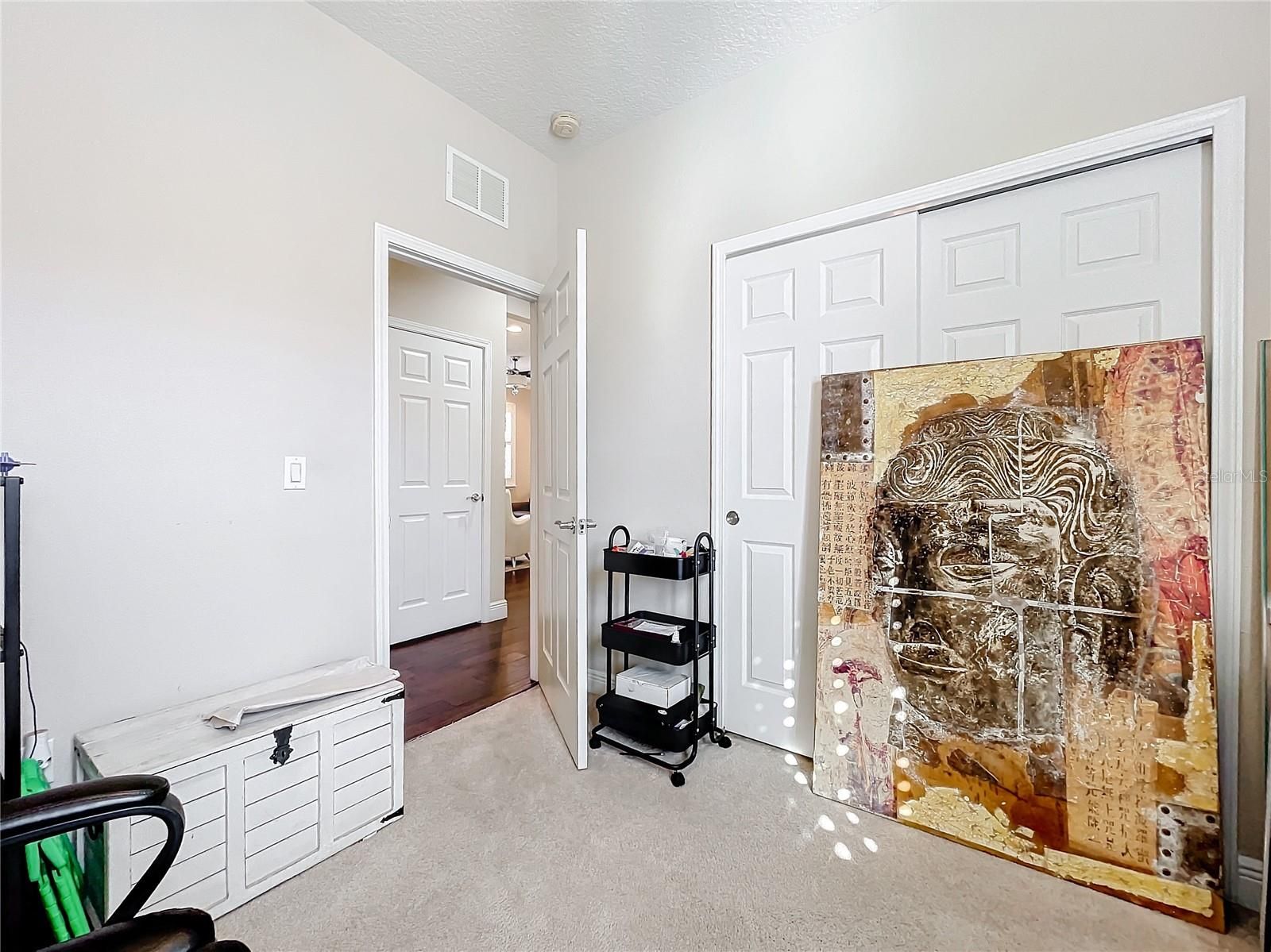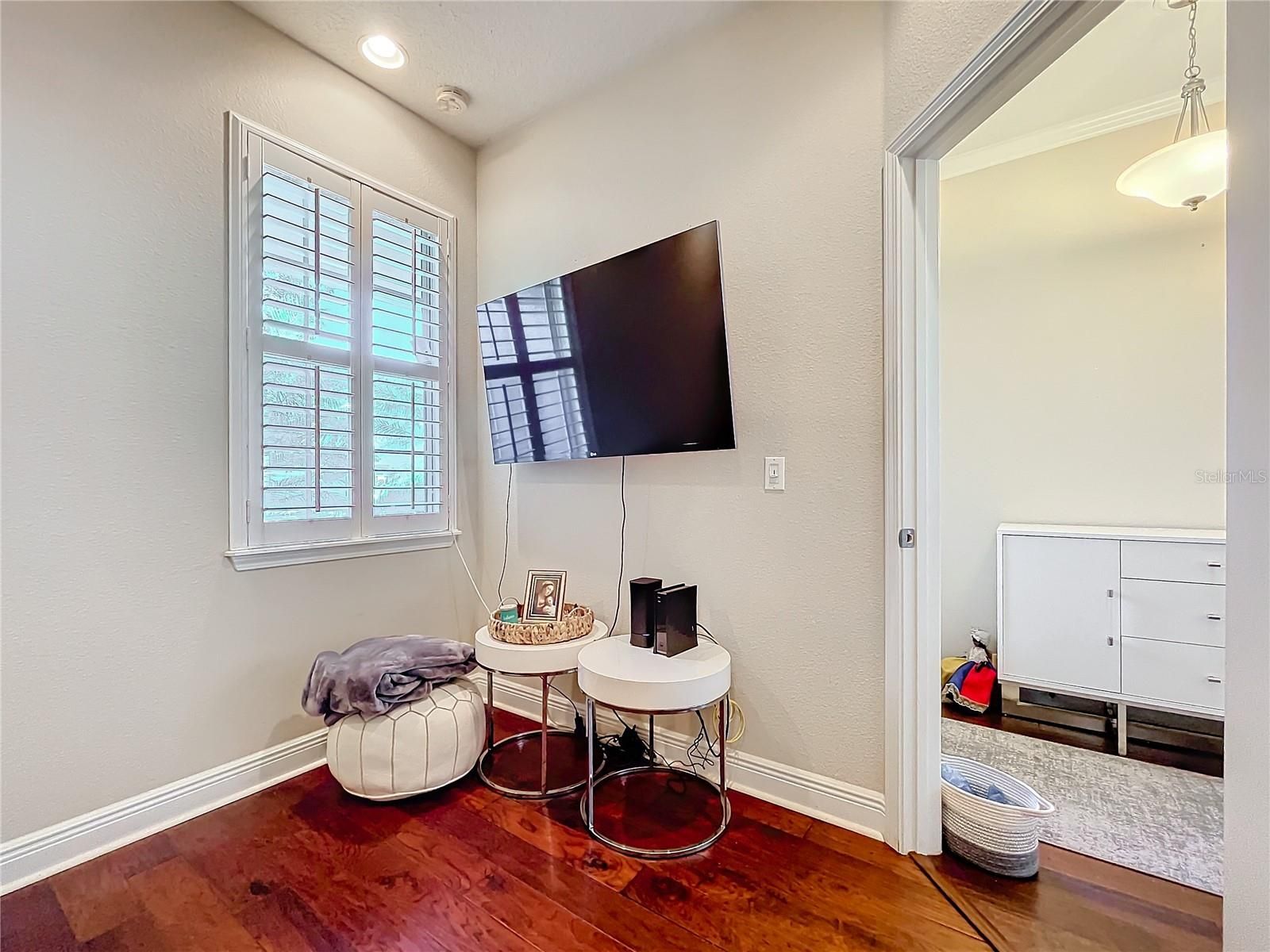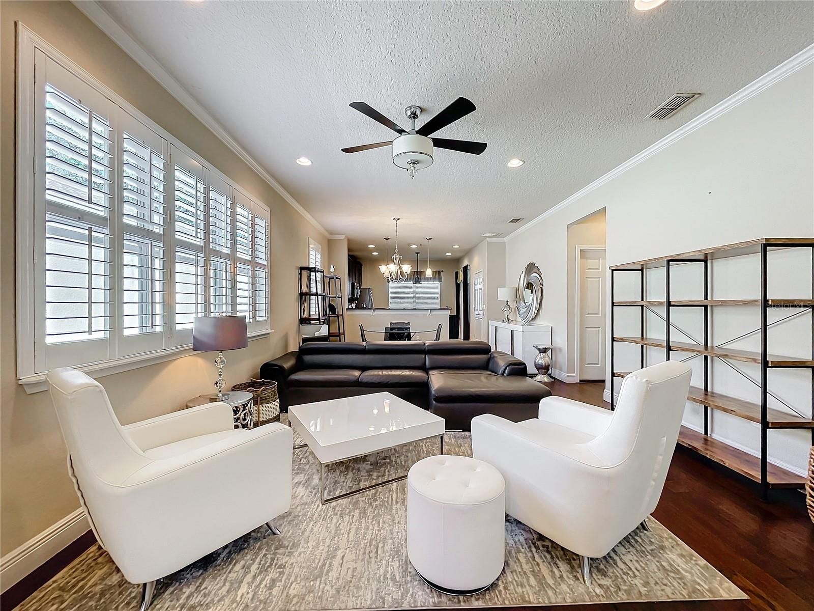 - Ceiling Fan(s), High Ceilings, Living/Dining Room, Open Floorplan, Main Level Primary, Solid-Wood Cabinets, Stone Counters, Thermostat, Walk-In Closet(s), Window Treatments