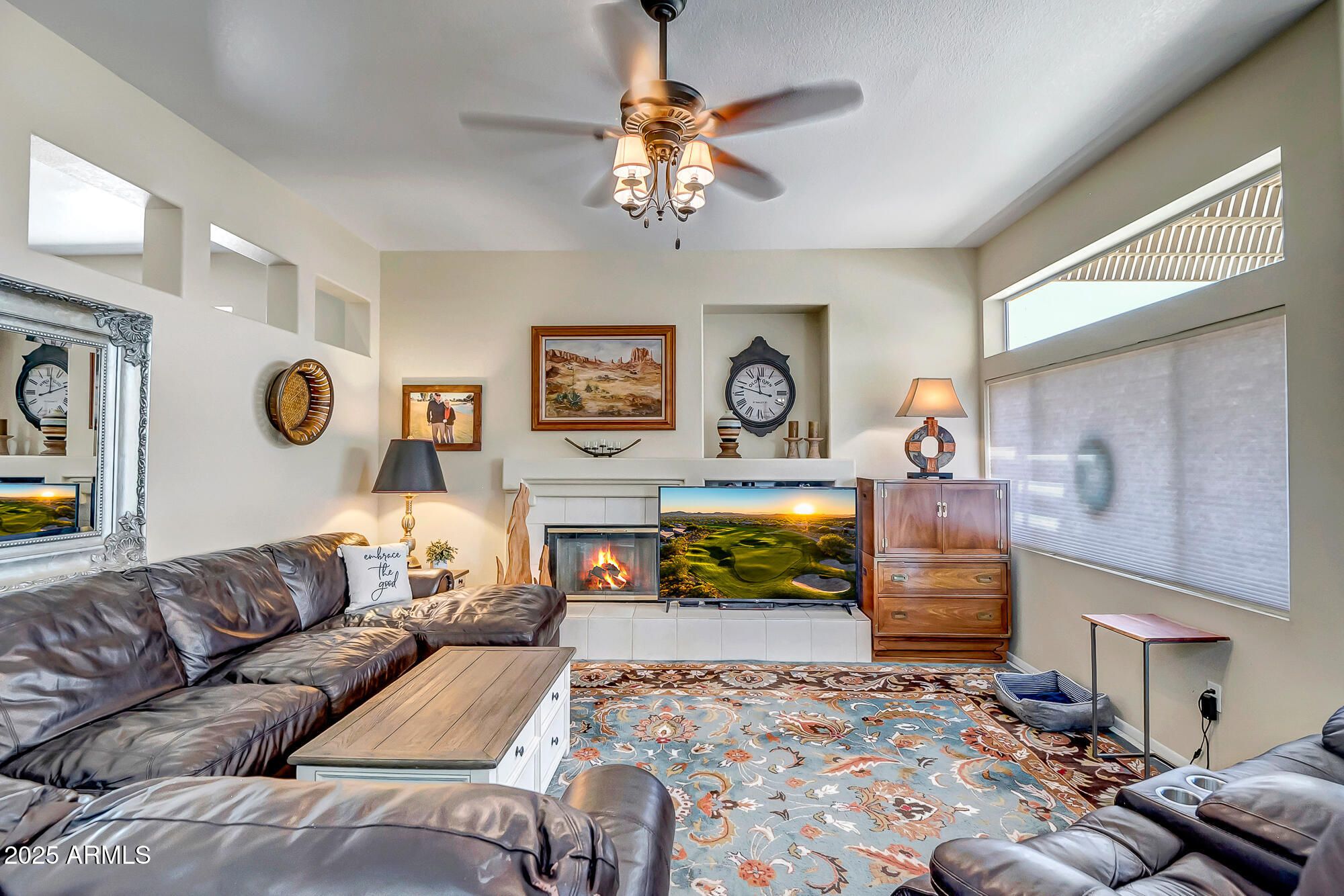 Back on the market. You haven't missed your chance to own this beautiful and desirable Cottonwood floor plan. The kitchen is a stunner—granite, center island, sleek lighting, and a 36-inch, 5-burner stove that'll turn every meal into an event. It flows into a sunny den with fireplace and also into a breakfast nook—ideal for pancake Sundays or fireside Netflix binges. And this home is stacked with updates. Two newer HVAC units, sleek appliances, and even attic plywood storage for all your holiday treasures. Love cozy evenings? Enjoy the den with fireplace and large TV area. The master suite is a true retreat, featuring a bay window sitting area, and spa-like ensuite bath. And your guests will love their oversized suite just as much. Outside, relax under the extended covered patio or soak your stress away in the luxury heated spa surrounded by lush landscaping and total privacy. Spa day, every day. From the smart updates to the private backyard oasis, this home has style, comfort, and just the right amount of "wow. This is what the adult lifestyle in Sun City West is about, numerous daily activities and a home to cherish.