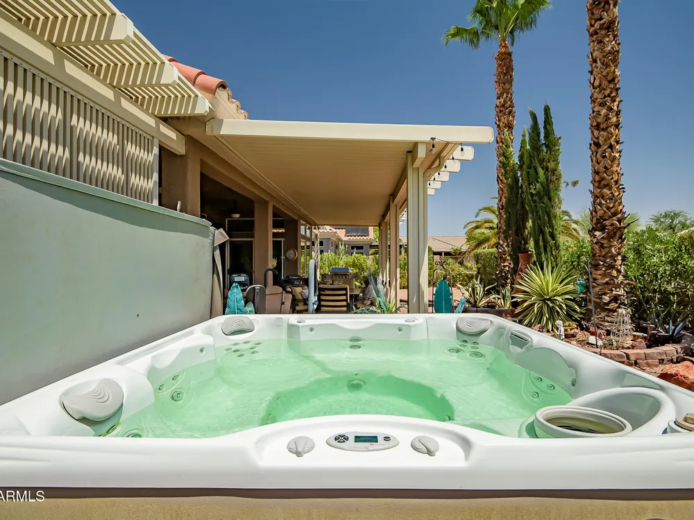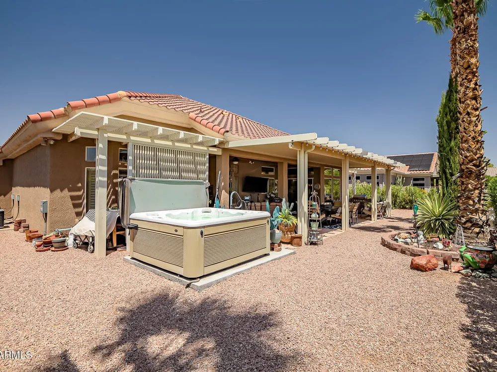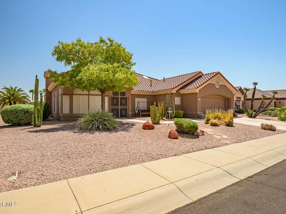 Some homes just get it, and the Cottonwood floor plan is one of them. Step through the double doors and into a welcoming foyer that opens into a flexible great room—perfect for living, dining, dancing, or an impromptu art gallery. The kitchen is a stunner—granite, center island, sleek lighting, and a 36-inch, 5-burner stove that'll turn every meal into an event. It flows into a sunny den with fireplace and also into a breakfast nook—ideal for pancake Sundays or fireside Netflix binges. And this home's resume is stacked with updates. Two newer HVAC units, a fresh roof underlayment, sleek appliances, and even attic plywood storage for all your holiday hoarding. Love cozy evenings? Enjoy the den with fireplace and large TV area. The master suite is a true retreat, featuring a bay window, sitting area, barn door, and spa-like bath. And your guests will love their oversized suite just as much. Outside, relax under the extended covered patio or soak your stress away in the luxury heated spa surrounded by lush landscaping and total privacy. Spa day, every day. From the smart updates to the private backyard oasis, this home has style, comfort, and just the right amount of "wow. This is what the adult lifestyle in Sun City West is about, daily activities and a home to cherish.