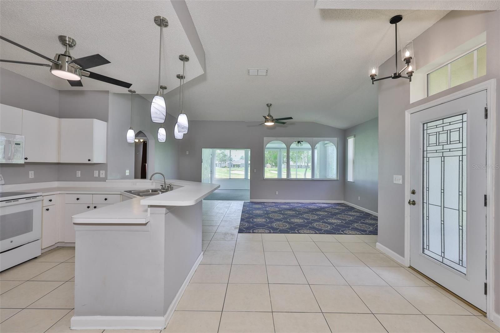 - Ceiling Fan(s), Kitchen/Family Room Combo, Open Floorplan, Main Level Primary, Split Bedrooms, Vaulted Ceiling(s)