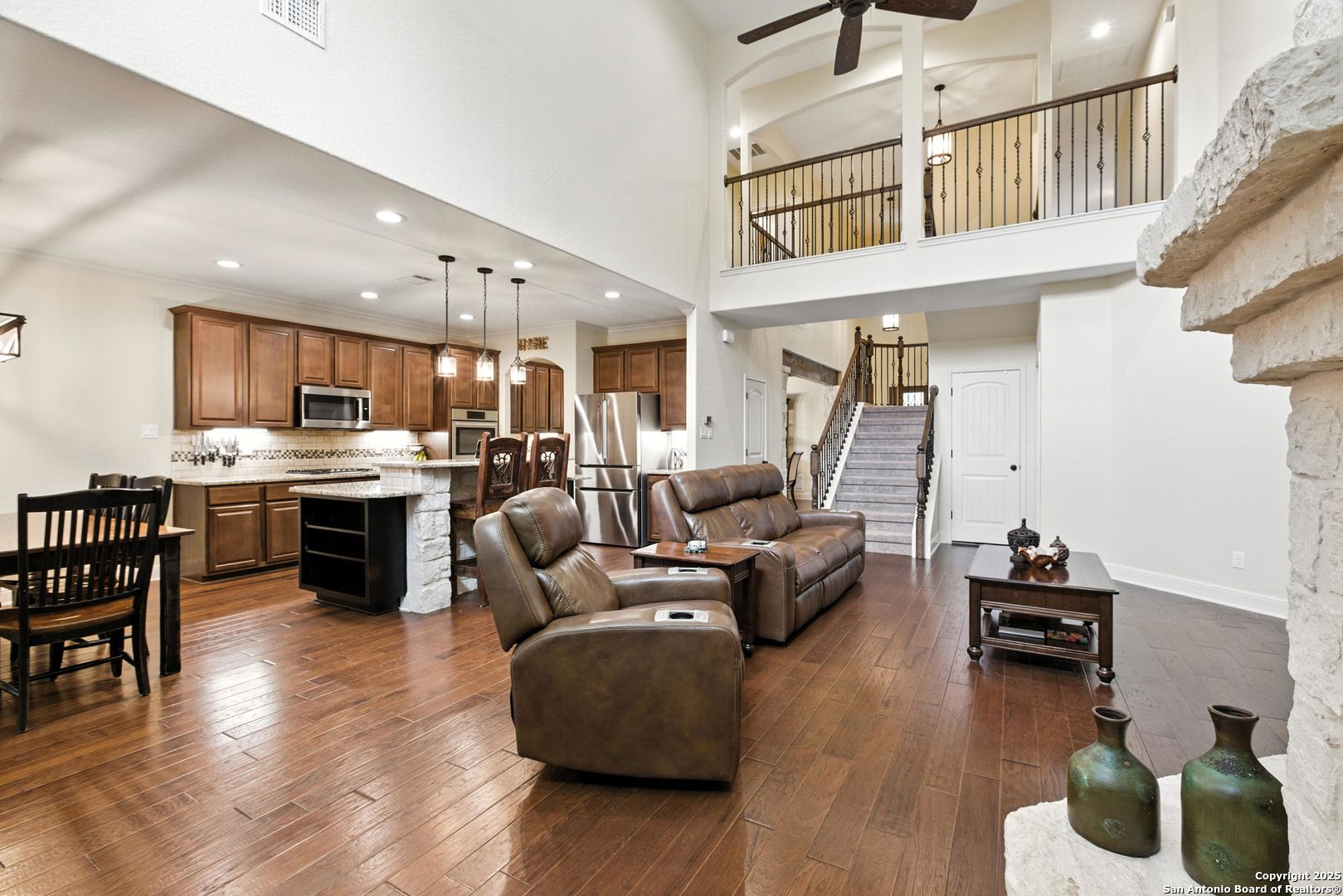 UPGRADES GALLORE! Welcome to 2203 Bella Daisy, a home that's been absolutely loved and cared for in the beautiful Willis Ranch community. Built in 2014, this spacious two-story sits on a generous .24 acre lot and offers 3,628 square feet of thoughtfully designed living space. It has 5 bedrooms, and 3 full baths and 2 half baths, including the rarity of two primary suites - one upstairs and one down which has been perfect for multi-generational living or hosting guests comfortably. From the moment you walk in, the grand entry and curved Cinderella balcony make a big impression. Throughout the home, you'll notice warm wood floors, stone accents, and big open spaces that are ideal for both quiet nights in and entertaining. The kitchen has been a favorite spot-tons of space, a huge island, built-in appliances, butler's pantry, and a layout that makes it easy to cook and still be part of the conversation. We've also loved the formal dining room, cozy living area with a fireplace, dedicated office, and the media and game rooms upstairs - perfect for movie nights or letting the kids spread out. But where this home really shines is outside. The backyard is an entertainer's dream. We added an outdoor kitchen, a Forno Bella pizza oven and Kamado Grill, and a fireplace, creating the ultimate hangout spot for friends and family. There's plenty of room to relax, cook, and enjoy the peaceful surroundings-it's been one of our absolute favorite features. Summer or winter, you can still enjoy, we added heaters and misters for either. Also take note of the levered blinds we customized for added privacy, outdoor movie viewing and breeze control. We built a custom shed that blends nicely with the outdoor living. In addition, in 2021 we replaced the roof, solar panels, and furnace and in 2024 a new A/C. Installed in the home is a Solaris Whole House Air Cleaner & in the garage, for those car fanatics, a lift in included. Plus, we're in a great location in Comal ISD, walking distance to Kinder Ranch Elementary, Pieper Ranch Middle, and Pieper High. The neighborhood itself is quiet and friendly, with community amenities like a pool, parks, and trails that we've really enjoyed. This home is such a special place -whether hosting big get-togethers or just enjoying a quiet evening under the stars. It's a great blend of comfort, flexibility, and thoughtful upgrades, all in one of San Antonio's most desirable areas. Come love it as much as we have!