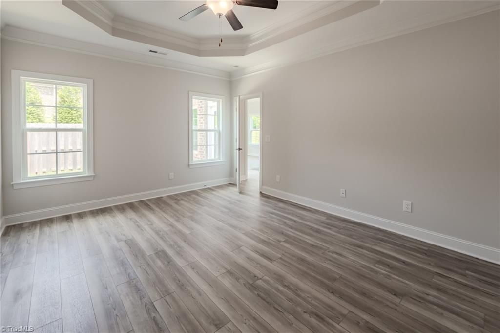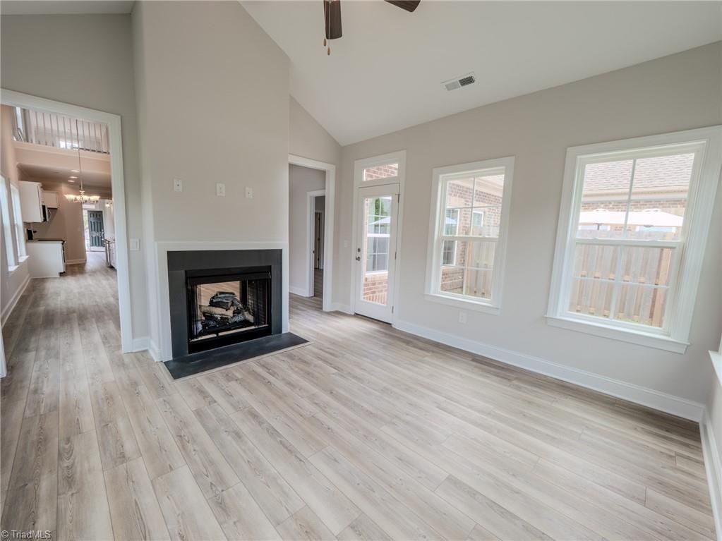 This New Construction Greenwich has a pass through kitchen with White cabinets and buffet extension, Ceramic tile backsplash, and Quartz countertops. This home has a beautiful sunroom which also shares a double sided fireplace. Stone to ceiling around fireplace in Family room. Primary bath has a 5’ tile shower with a frameless door, Rectangular sinks and comfort height (ADA) Toilet. Level 3 Resolute Plus flooring whole main level. Primary bedroom on main level. Travel upstairs to a carpeted catwalk loft, office, bedroom, and full bath. A 5,000 sq. ft resident clubhouse to include a saltwater swimming pool, pool table, putting green and TV. You will also be within minutes of major highways, Medical Centers, Hanes Mall, and other shopping. Low Davidson Taxes
