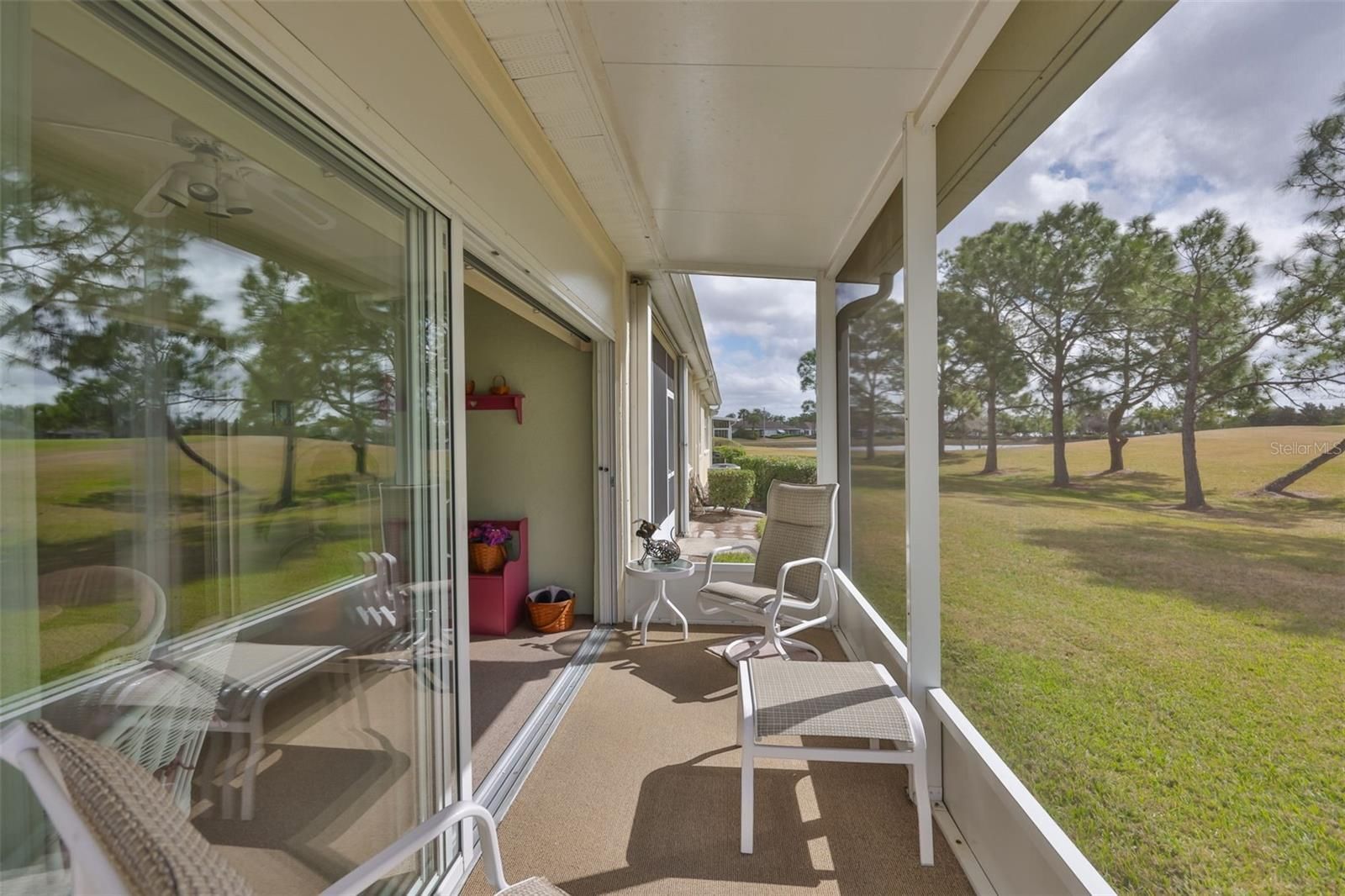 LOCATION, LOCATION, LOCATION! Imagine a spacious two-bedroom home with a 1.5-car garage, private courtyard entry, and an oversized screened lanai overlooking water and the golf course. Welcome to your Florida lifestyle inside the gated community of Kings Point. This light and bright home features an open floor plan with high ceilings and comfortable carpeting in both bedrooms. The kitchen offers a large breakfast bar, pantry, and generous counter space — perfect for entertaining or casual meals. This home features a thoughtfully designed split bathroom with a pocket door dividing the space for added privacy. One side offers a private toilet and sink, while the other includes a second vanity, toilet, and a full shower — ideal for guests or shared living. Step outside and enjoy: -A beautifully landscaped, gated front courtyard -An exceptionally large screened lanai (17’4” x 13’5”) -An additional screened extension (5’2” x 12’11”) -Water views to the left and golf course views straight ahead It’s the perfect setting for morning coffee while watching golfers and golf carts pass by. The 1.5-car garage easily accommodates your car and golf cart and includes the washer & dryer. Living in Kings Point means more than just a home—it’s a lifestyle. This gated, resort-style community offers two clubhouses with dining and a full-service bar, a new poolside TIKI bar, six pools (indoor and outdoor), a state-of-the-art fitness center, tennis and pickleball courts, an 850-seat theater with live entertainment, and hundreds of clubs, classes, and social activities. The monthly association fee includes cable, internet, water, sewer, landscaping, exterior insurance, and reserves for painting, paving, and roofing—providing low-maintenance, worry-free living. Conveniently located near award-winning Gulf beaches, premier shopping and dining, major sporting venues, and both Tampa and Sarasota airports, Kings Point offers the very best of Florida living. Schedule your private showing today and experience this exceptional golf course property for yourself. Come experience resort-style living at its best!