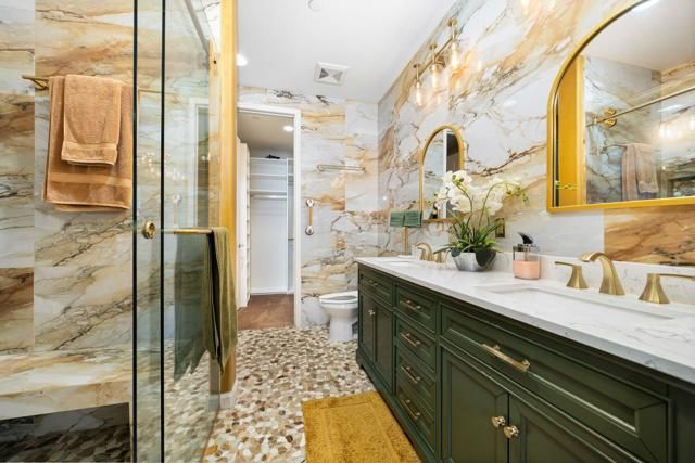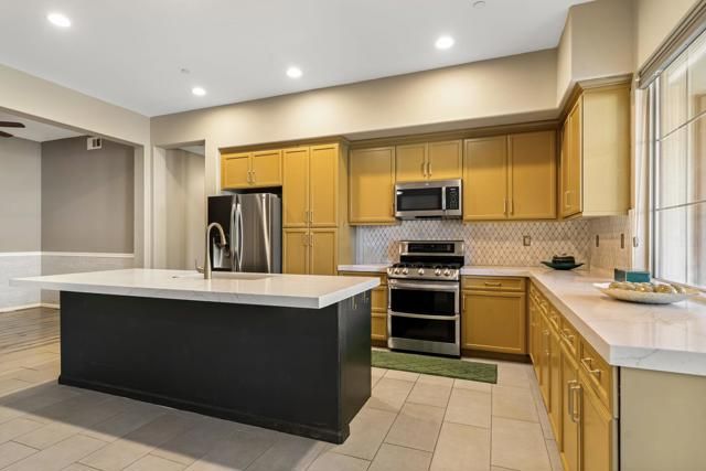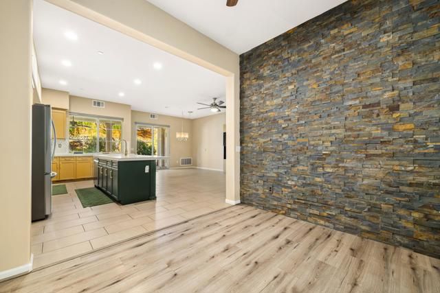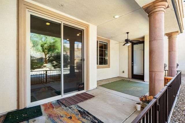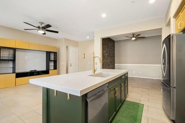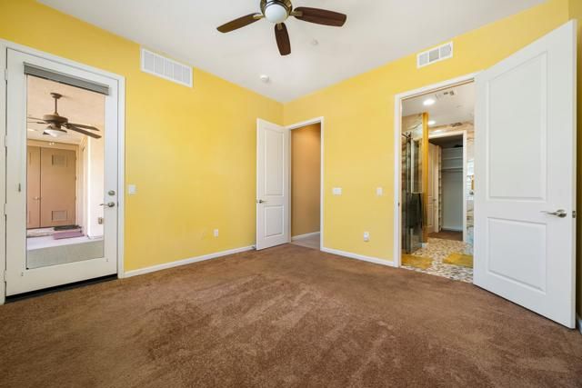 Welcome to Via Portofino in Palm Desert, a premier 55+ Community! This ground-level, upgraded 1 bedroom, 2 bathroom home offers a bright, open layout with soaring ceilings, plenty of natural light throughout, and modern finishes. Open floorplan, including a versatile den, ideal for a home office or additional living space, along with a private patio for outdoor relaxation. The custom kitchen includes quartz countertops, a large island, and stainless steel appliances. The primary suite offers a dual vanity, a custom walk-in shower and a spacious walk-in closet,.Enjoy a spacious two-car garage! HOA fees include water, internet, premium cable TV, and earthquake insurance. Low utilities due to the community Solar System! Residents enjoy access to a clubhouse with two restaurants, a 100-seat movie theater, Sports Bar, Game room,Library, Fitness Center, and a Resort-Style Pool and Spa with cabanas, plus a mini putting course.Unbeatable location near El Paseo shopping, Eisenhower Medical Center, McCallum Performing Arts Center, golf, and grocery stores within walking distance. Don't miss this opportunity to live in Palm Desert's premier active adult community. Schedule a private showing today!