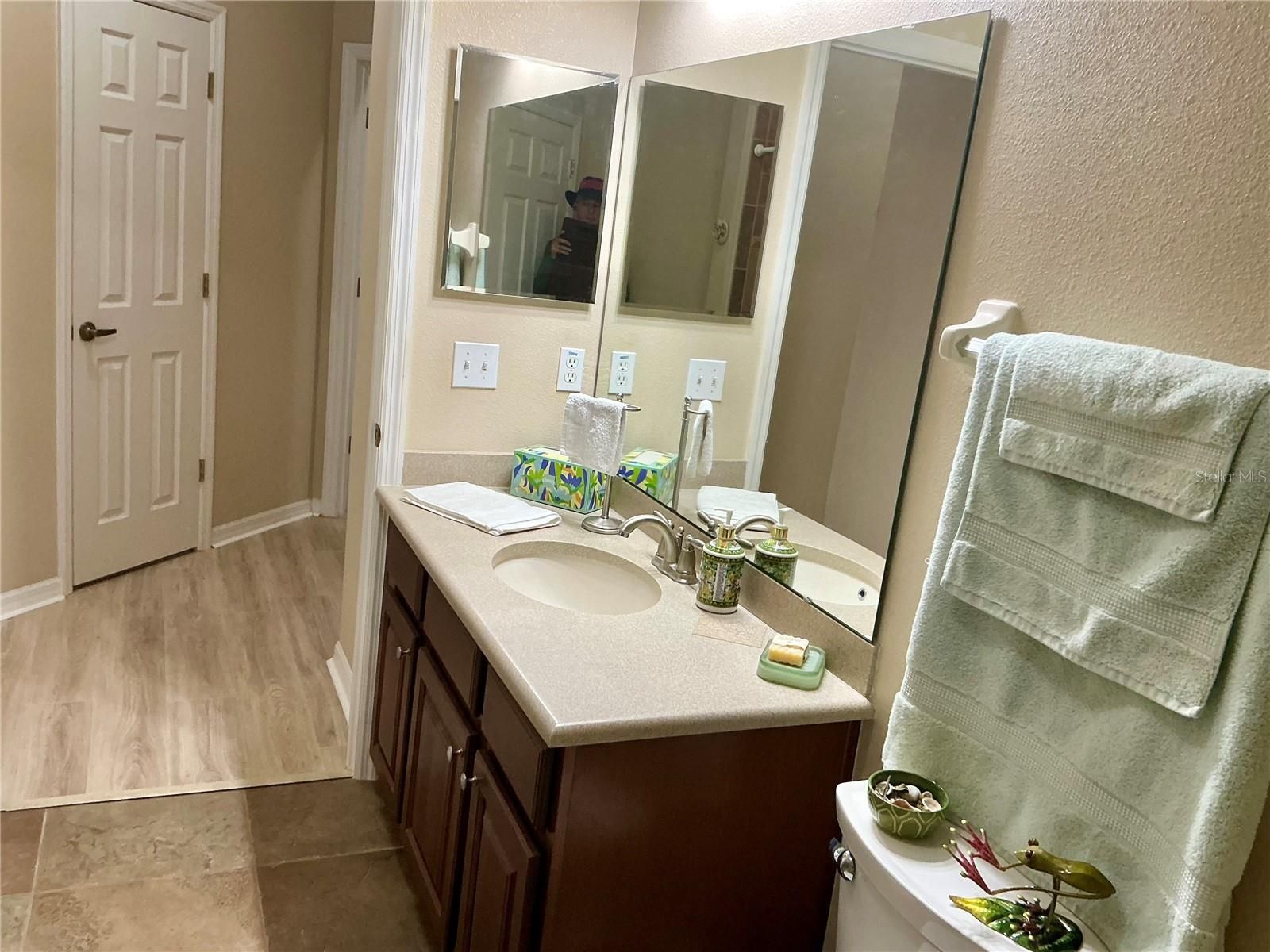 Waiting for a premium Villa on a spectacular lot in Sullivan Ranch? It’s here! This Villa, located in the 55+ section is situated on a large corner lot with no rear neighbors and just a short walk to the community clubhouse which features a junior olympic pool, clubhouse for private events and fitness center. This villa boasts numerous upgrades. 9’4” ceilings throughout. The kitchen 42 inch raised panel cherry cabinets with dove tail construction pull out drawers, granite countertops with stainless steel drop in sink, tile backsplash. The owners suite has double walk-in closets, separate garden tub and shower, private water closet and double sinks. The rear lanai has been screen enclosed. Laundry room has maple cabinet uppers. Tile floors in kitchen and baths. In 2021 the owners added all new stainless steel kitchen appliances including a french 4 refrigerator and garbage disposal, new carrier air conditioning system, whole house water softener/treatment system, 220V garage outlet, ungraded waterproof vinyl plank flooring in living area, new ceiling light fixtures and fans with led bulbs, additional attic insulation above heat and air space, pull down attic stairs with plywood added for storage above the oversized 2 car side entry garage. The Hoa fee covers roof, which was replaced in 2021, exterior painting, irrigation, mowing, and plant trimming. About the only thing you need to do outside is sit on either your front or rear porch and enjoy the views. In addition to the clubhouse and pool, the amenities include a children’s playground with water feature, dog park, gated entrance, sidewalks and street lights and miles of walking paths both above and below the wooden bridge and around the lake. Sullivan Ranch is situated close to the new beltway with easy access to everything central florida has to offer while only just a couple miles from historic downtown Mount Dora.