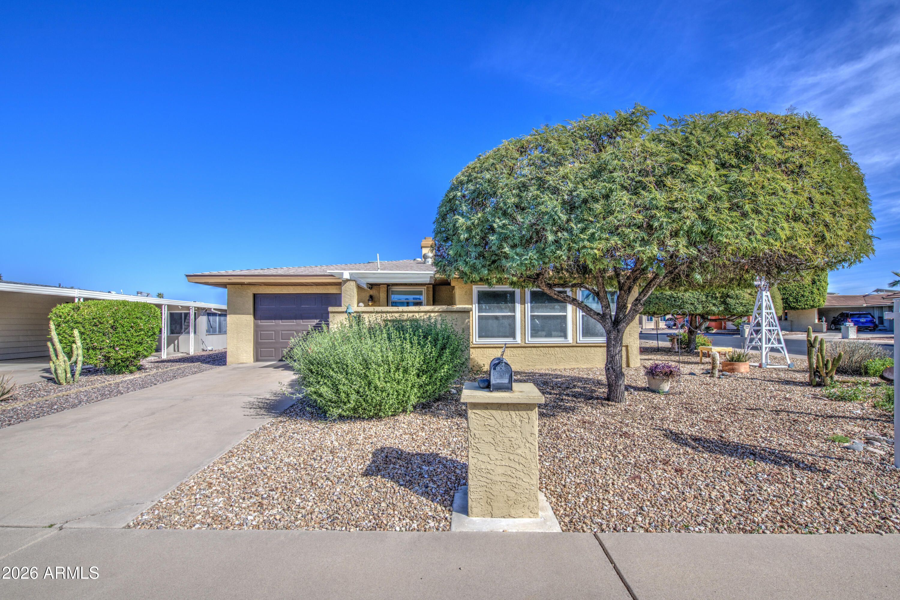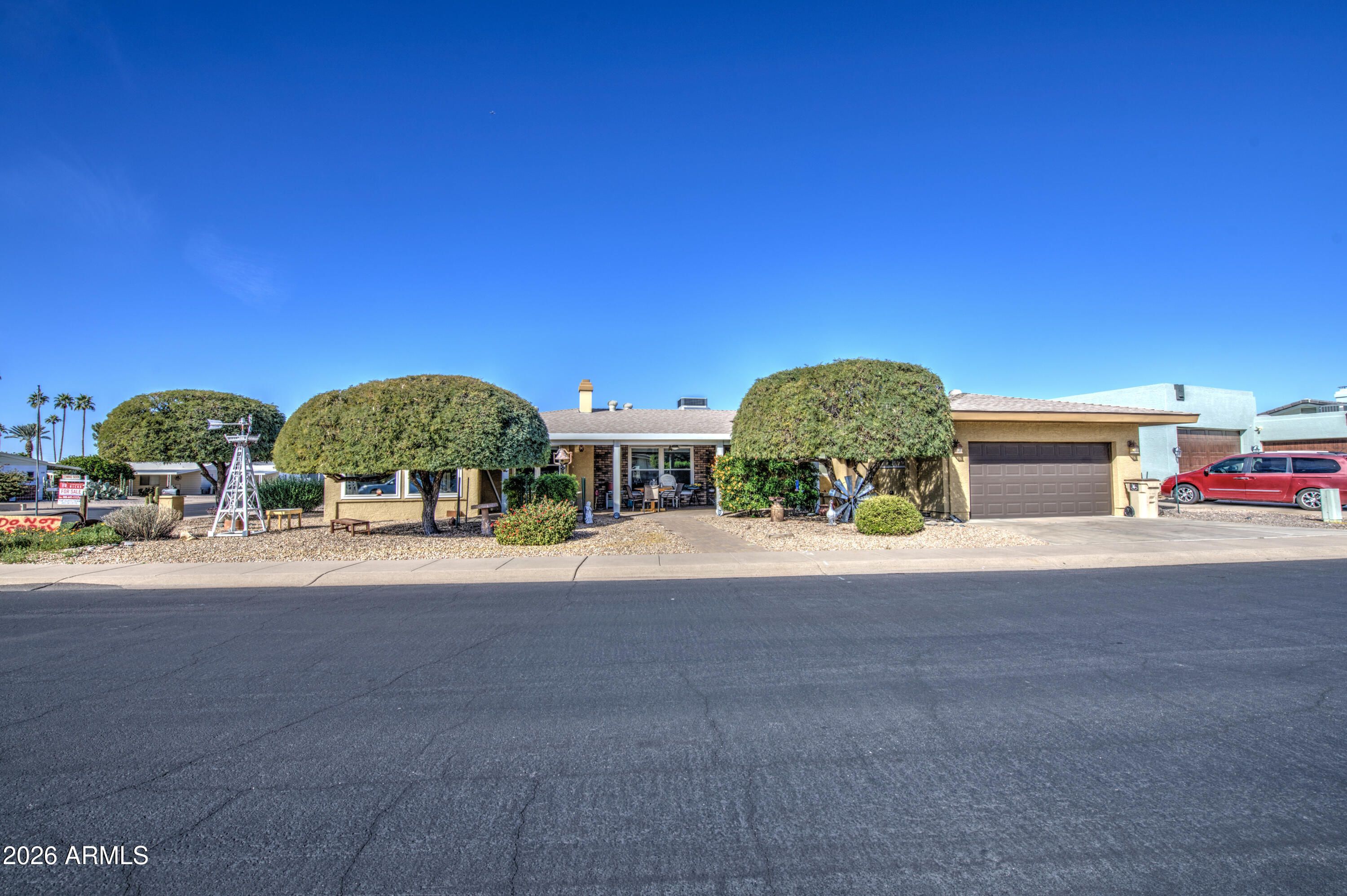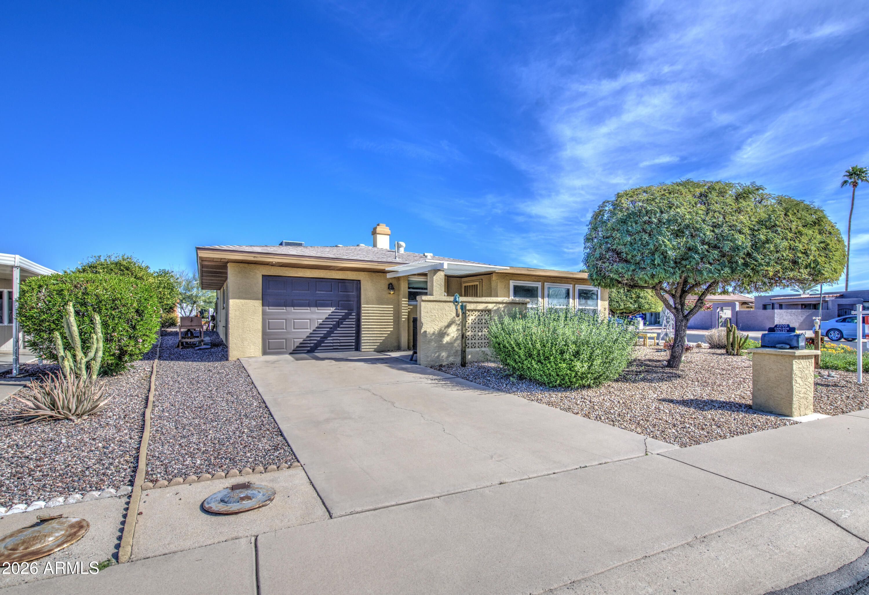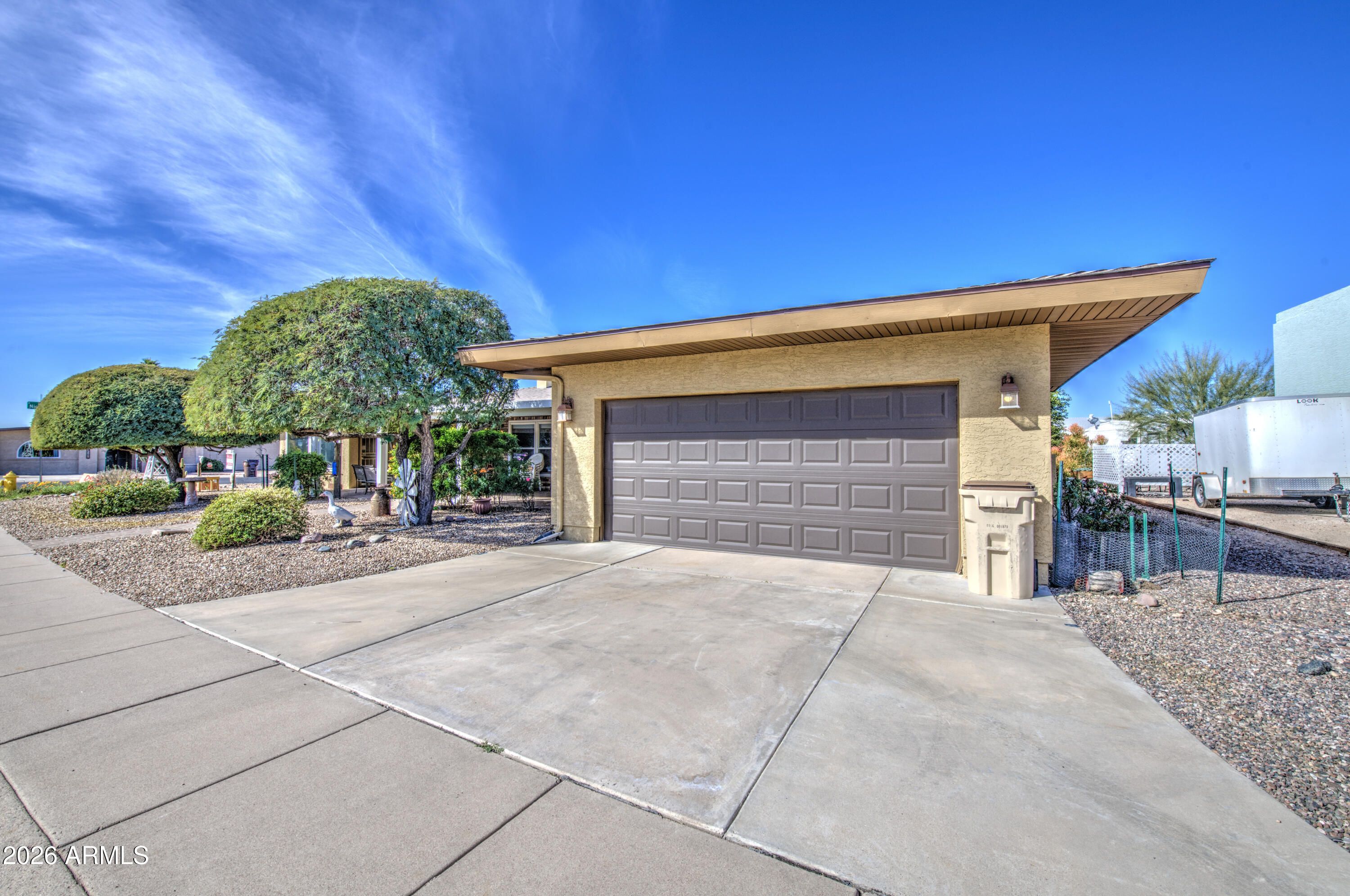 Wow-This home checks most of the boxes. This beautifully maintained 3 bedroom ,2 bath ranch offers a rare 3-car garage setup with room for up to 4 vehicles,all situated on a desirable corner lot in the Apache Wells Subdivision-a land-owned 55+ community offering a wide variety of activities for ever lifestyle. Step inside to an open floor plan concept. The living room features a cozy gas fireplace that opens into the glass enclosed Arizona room. The home offers three spacious bedrooms, including a primary suite with a full private bath, a second 3/4 bath and a convenient laundry room. Enjoy Arizona living with multiple areas to relax , including the covered front porch and the Arizona room- perfect for taking in the stunning desert sunsets. The property combines comfort functionality.