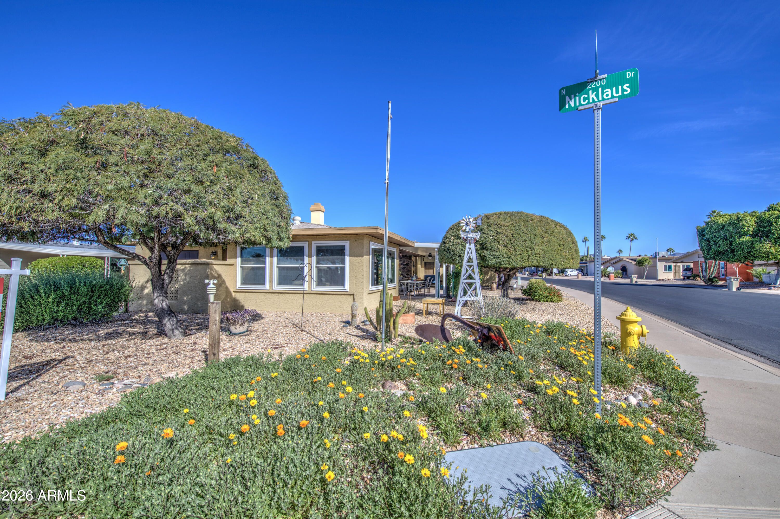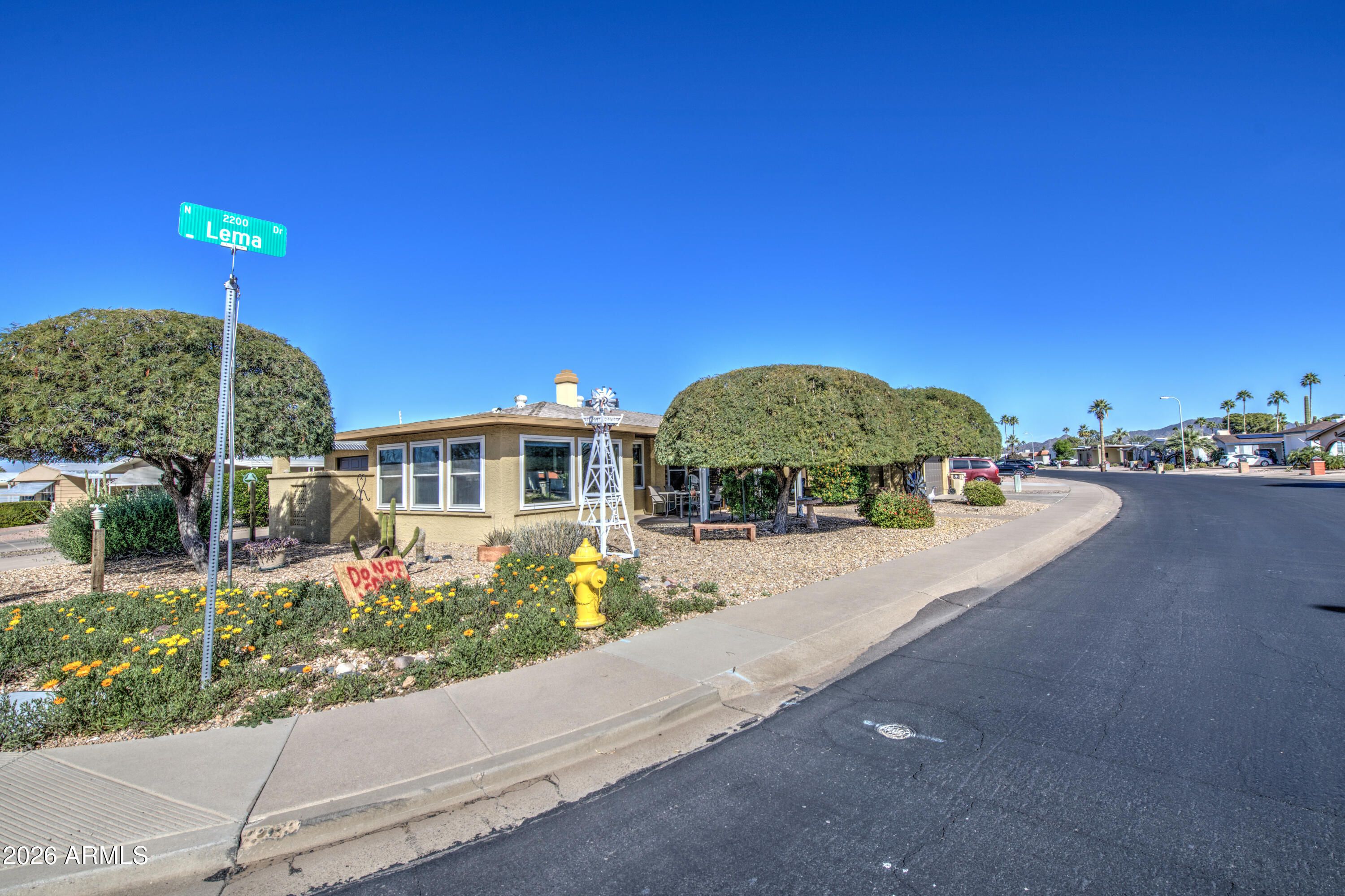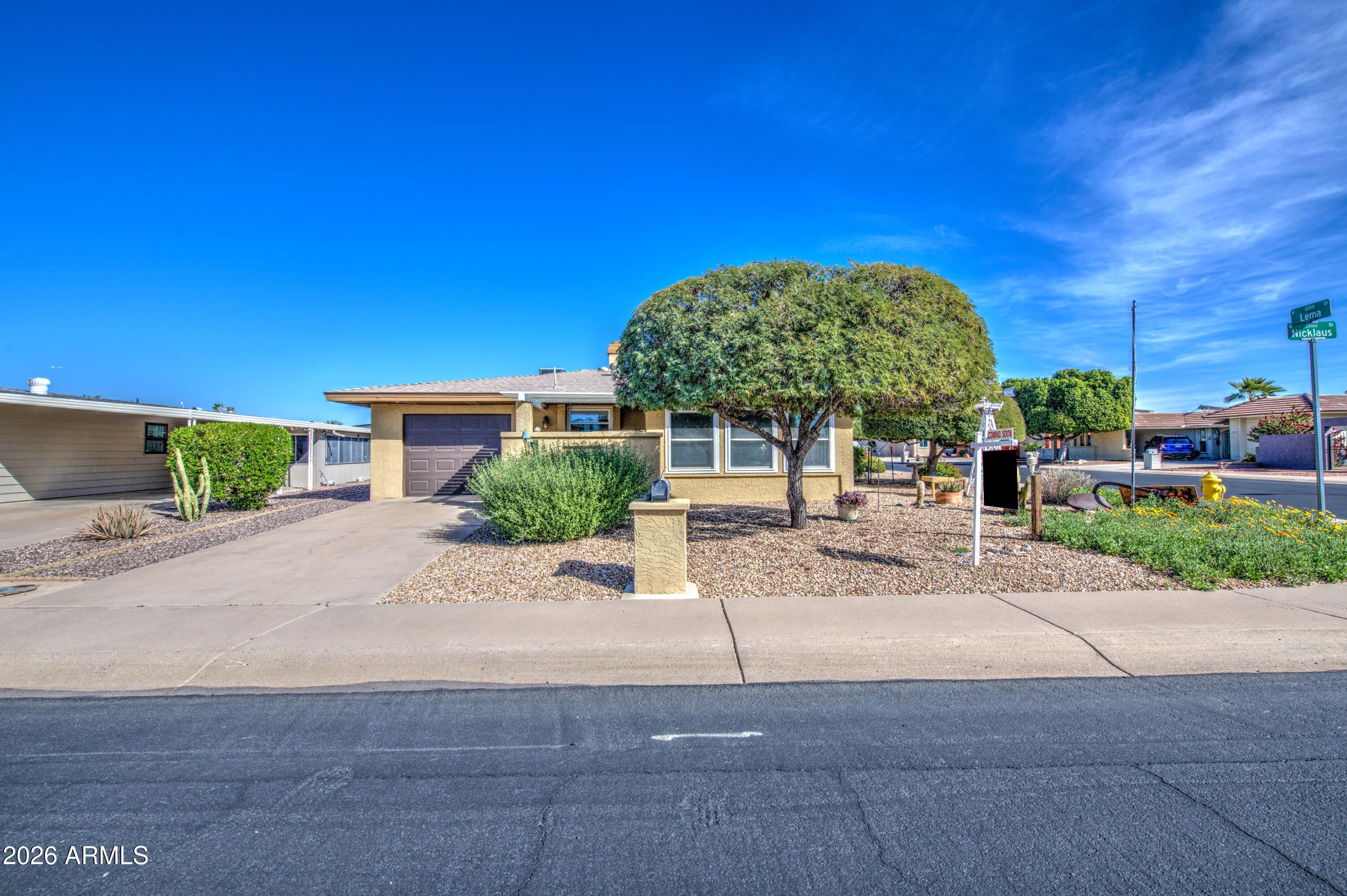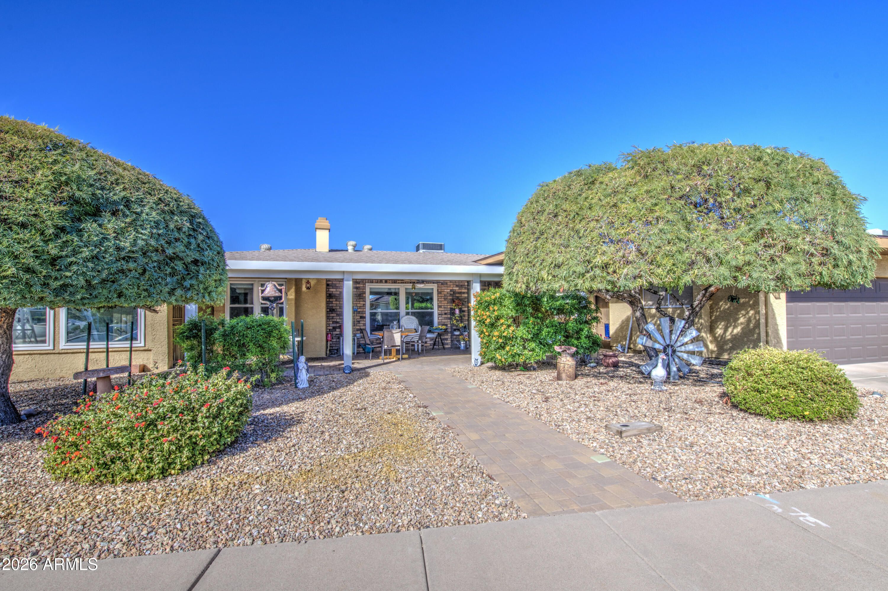 Wow-This home checks most of the boxes. This beautifully maintained 3 bedroom ,2 bath ranch offers a rare 3-car garage setup with room for up to 4 vehicles,all situated on a desirable corner lot in the Apache Wells Subdivision-a land-owned 55+ community offering a wide variety of activities for ever lifestyle. Step inside to an open floor plan concept. The living room features a cozy gas fireplace that opens into the glass enclosed Arizona room. The home offers three spacious bedrooms, including a primary suite with a full private bath, a second 3/4 bath and a convenient laundry room. Enjoy Arizona living with multiple areas to relax , including the covered front porch and the Arizona room- perfect for taking in the stunning desert sunsets. The property combines comfort functionality.