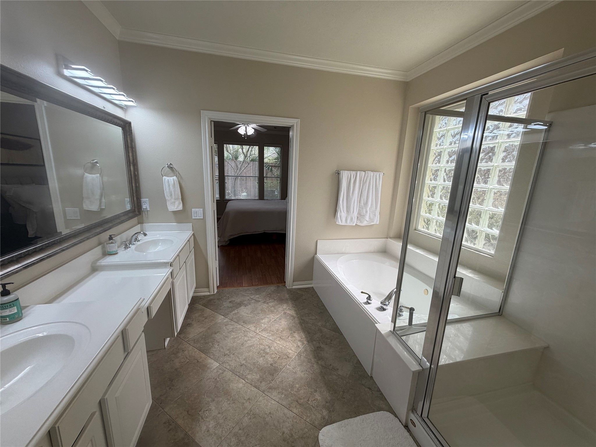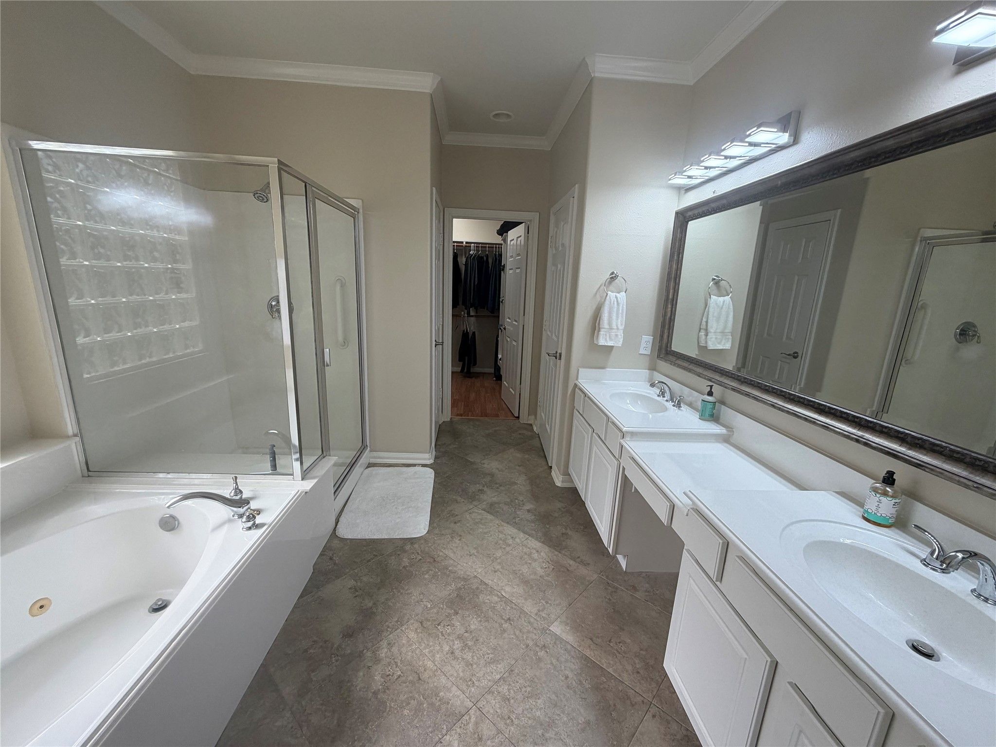 - Breakfast Bar, Crown Molding, Double Vanity, Entrance Foyer, High Ceilings, Jetted Tub, Kitchen/Family Room Combo, Pantry, Separate Shower, Tub Shower, Ceiling Fan(s), Programmable Thermostat