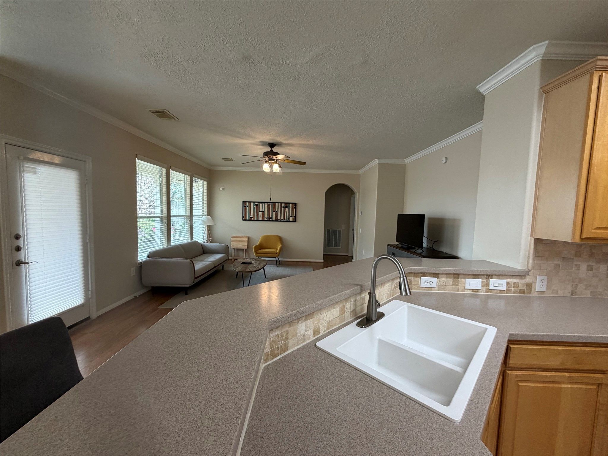 Well-Maintained Home in a Wonderful Adult 55+ Gated Community. Easy Access from Gate to Home, less than 2 Blocks away. Close to Community Center with Pool and Activities. Nice Open Concept. Dining, Kitchen, Living Areas all open to each other. Master Suite has Separate Shower and Whirlpool Tub with Double Vanity and Walk-in Closet. Study/Office/Bedroom located next to Master. Guest Room in Front of House with Full Guest Bathroom. Walk-in Pantry and Lots of Counter Space and Cabinets in Kitchen with New Sink (1/26). Utility room with extra Counter Space for Folding Laundry. Lots of Extra Storage Shelves and Cabinets in Clean Garage. Front Lawn Maintenance, Basic Cable, and Internet provided by HOA. Beautifully Landscaped Backyard with Pathways through Plants and Flowers - Nice Covered Porch with Ceiling Fans. Roof Replaced 4/25. Fresh Interior Paint, Tile and Laminate throughout. New Flooring in Kitchen and Bedrooms. New Lighting (All 1/26). Make your Viewing Appointment Today!