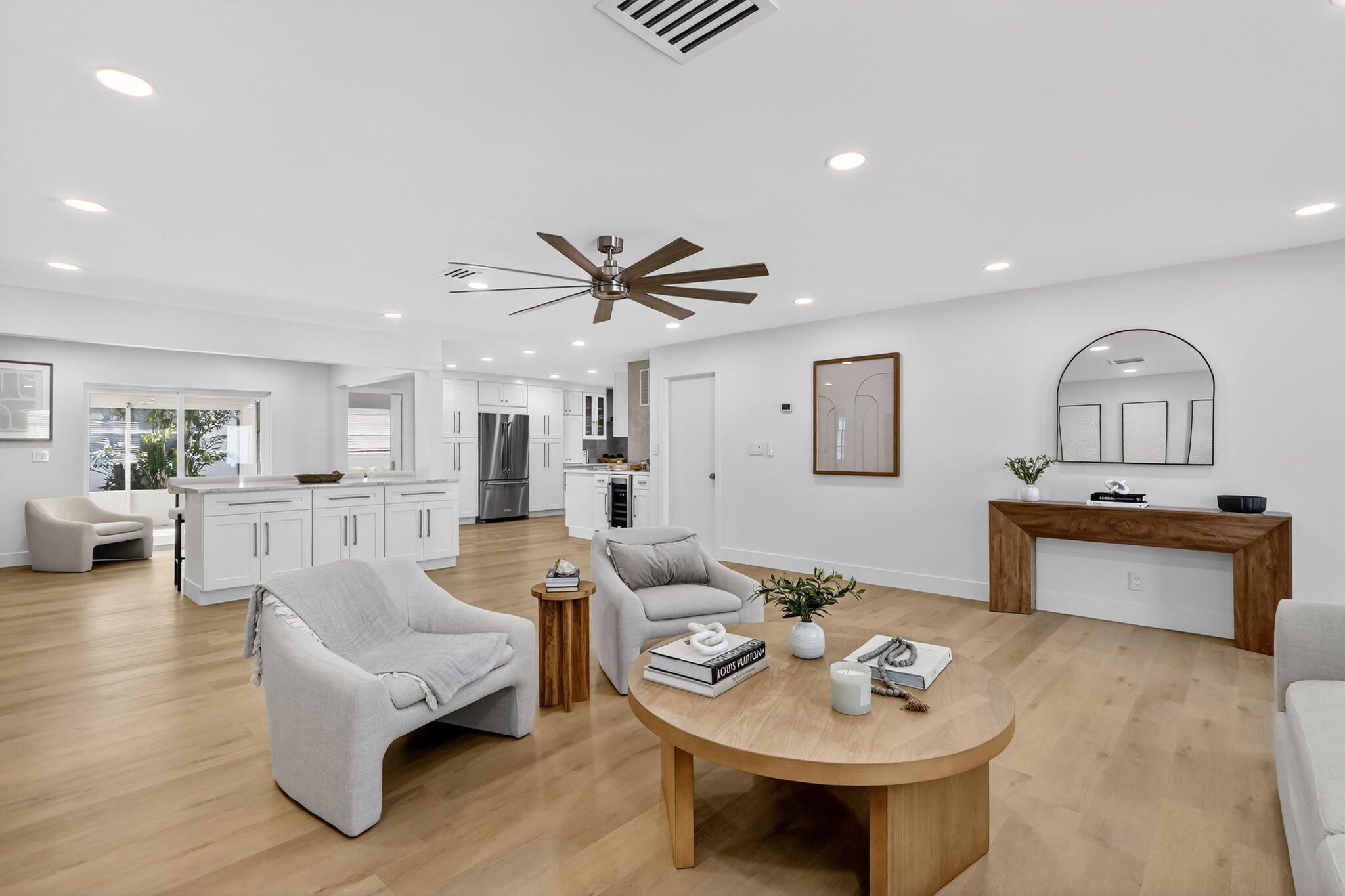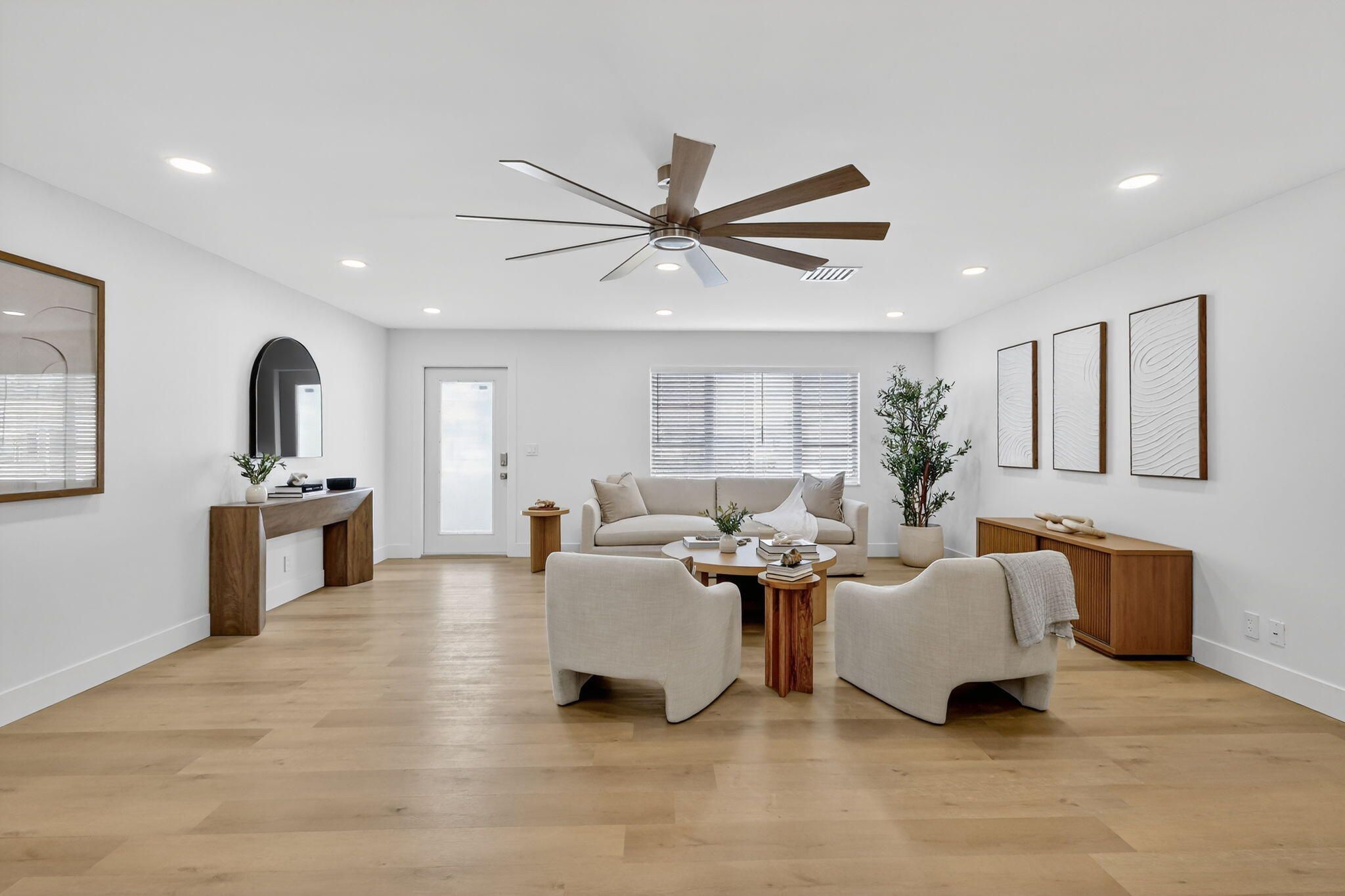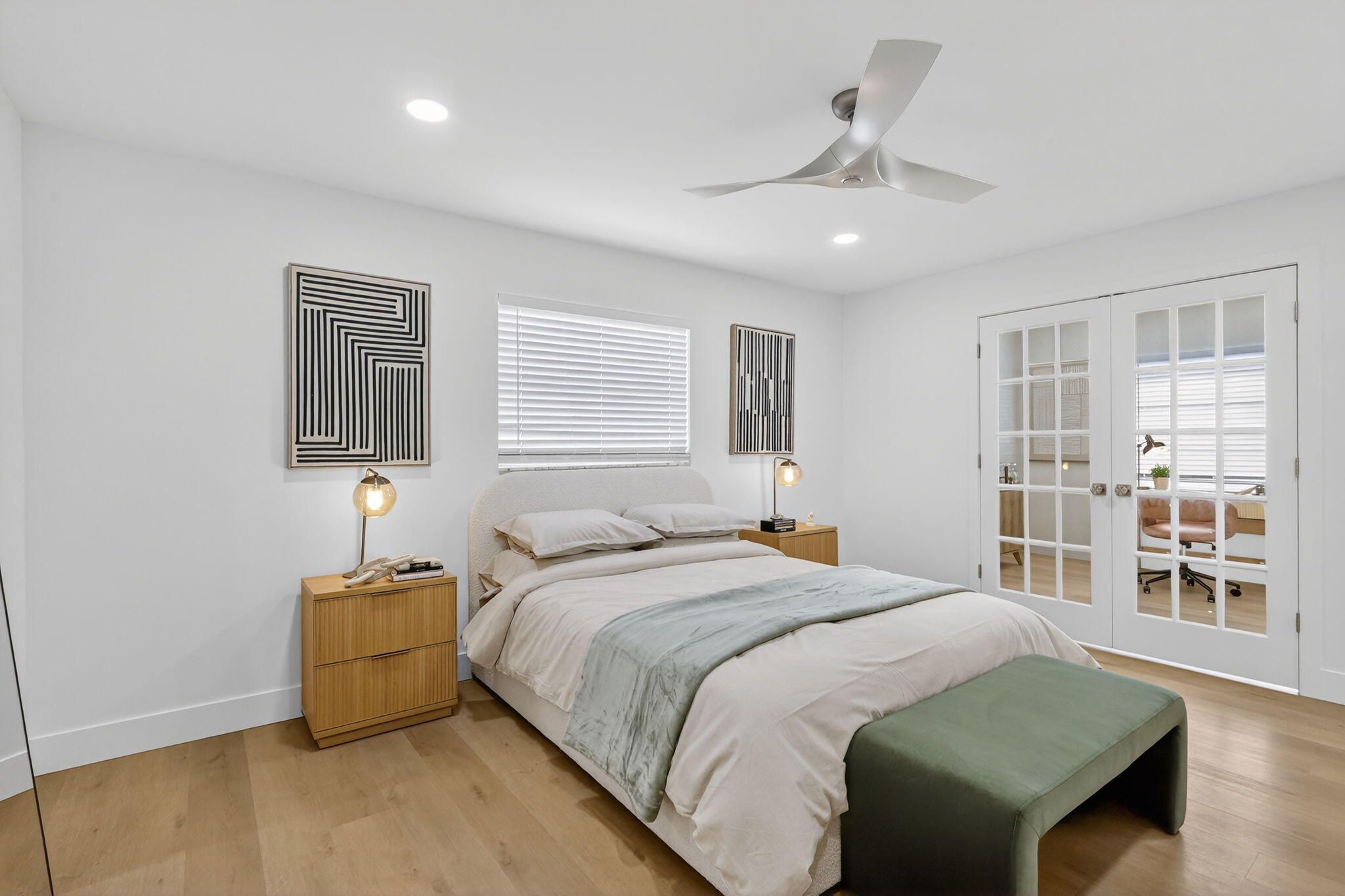 **Seller offering 1 Year of HOA payments credited to buyer at closing* This one of a kind designer home will take your breath away.Split floor plan with an open concept design. This sprawling 1700sf custom home includes two spacious ensuite bedrooms and features a den/office. Gorgeous french doors lead you through the Primary into the office/den which you can also access through the secret door on the acoustic paneled wall in the main living space.This massive home features a dream custom kitchen with Brand new KitchenAid and FORNO appliances, Large Quartz Island, substantial counter space and storage, real wood soft close cabinetry, double pantries with pull outs, Fireclay Workstation/Apron Sink Kraus Faucets w/Reverse Osmosis Water Filtration System, Custom made Hood with Pot Filler, Pottery Barn Floating Shelving , Built in 28 Bottle Dual ZoneWine Fridge. Spa like bathrooms feature floor to ceiling tile and curb less showers. New Floors/baseboards 5+inch throughout. Brand New Samsung front load washer/dryer w storage drawers & Premium Bamboo Laundry Countertop.Oversized screen enclosed patio has been newly tiled and painted. Entire interior freshly painted-no popcorn ceilings and smooth walls. All doors, handles, locks, recessed lighting, ceiling fans switches and outlets are new. Entire exterior has been stucco'd and painted New Fascia & New soffits Roof and exterior pressure cleaned 11/2025 Garage, driveway and porch repainted and sealed New hedges and rubber mulch added to front of home All new exterior lighting.