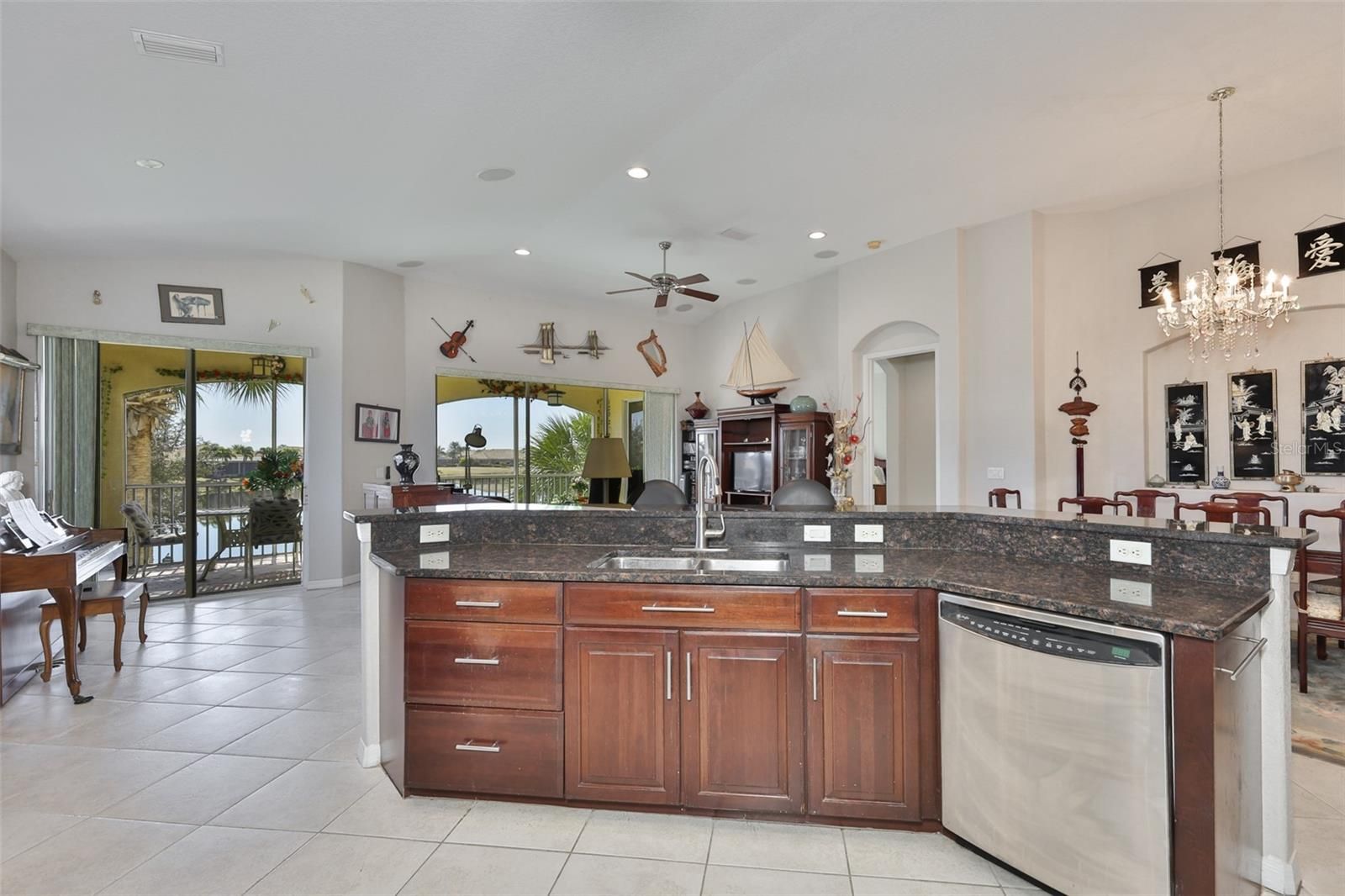 - Ceiling Fan(s), Eat-in Kitchen, Elevator, High Ceilings, Kitchen/Family Room Combo, Living/Dining Room, Open Floorplan, Other, Solid-Wood Cabinets, Split Bedrooms, Stone Counters, Thermostat, Tray Ceiling(s), Walk-In Closet(s), Window Treatments
