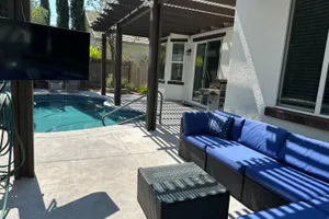 Your private retreat awaits! This backyard is simply unmatched in the Del Webb 55+ The Club at Westpark HOA...a built-in pool with SOLAR HEAT that is surrounded by palm trees and designed for entertaining, relaxing, and creating memories. This Sheley model is super clean and comes with an ABUNDANCE of custom interior cabinets not offered by the builder. Other features include 10' ceilings, 5 burner gas stove, leased solar, 2023 interior paint, 2023 new carpet in master, 2025 exterior paint, oversized 2 car garage with epoxy floor (fits 3 full sized vehicles) and LOTS of built-in garage storage, not to mention a Tesla car charger. HOA includes front yard care, private Clubhouse with pool, spa, bocce, BBQ area, outdoor fireplace, social clubs, library, concierge, and 24/7 fitness center. Close to parks, trails, golf, dining, The Fountains, Galleria, Nugget, Farmers' Market, medical, transportation, and don't forget affordable Roseville Utilities.