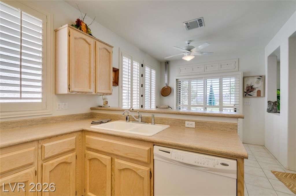 Experience this sought after location, a Granite model perfectly positioned on the GOLF COURSE with stunning views of the course and the foothills* This home features a highly functional split-bedroom layout, and the interior has been nicely appointed with ceramic tile flooring, designer shutters throughout* The kitchen is designed for efficiency with a large pantry & an abundance of cabinet space* Expanded primary suite with extended bay windows creates a serene sitting area, a perfect spot to enjoy your morning coffee while overlooking the fairways* Nice oversized covered patio and a beautifully landscaped backyard designed for low-maintenance* Practical upgrades abound, including water softening & filtration system, ceiling fans, extensive built-in storage cabinets in the garage* Located just around the corner from the popular Sun City MacDonald Ranch Community center with 18 hole golf course, heated pool and spa, pickle ball & tennis courts, ceramics, arts & crafts centers & more!