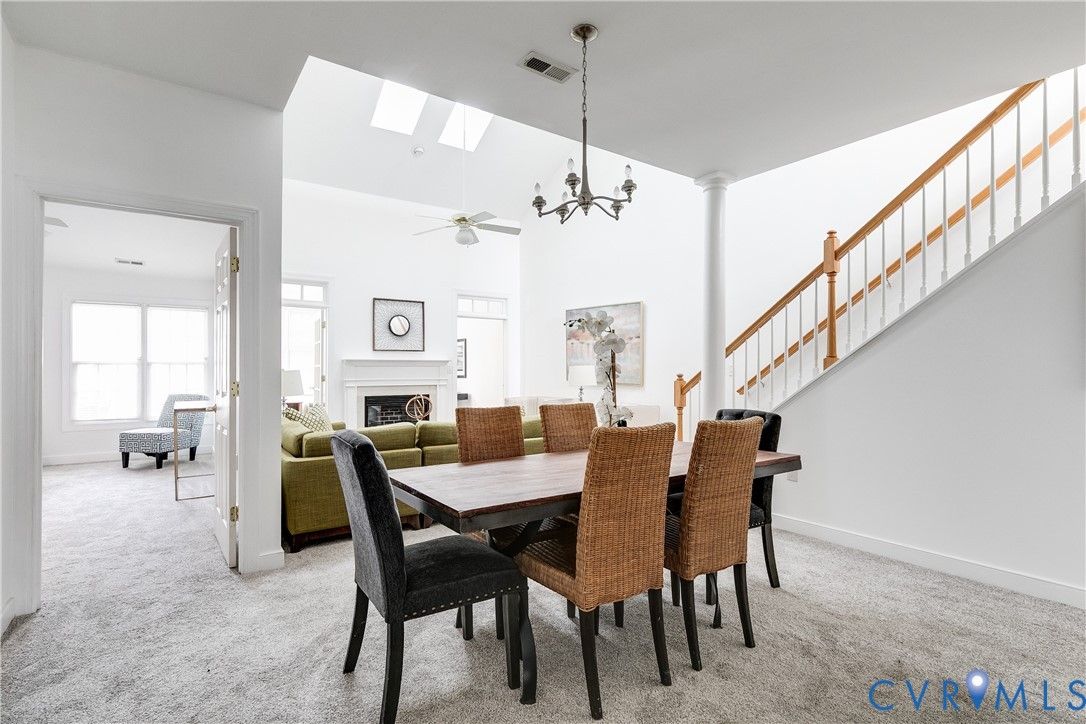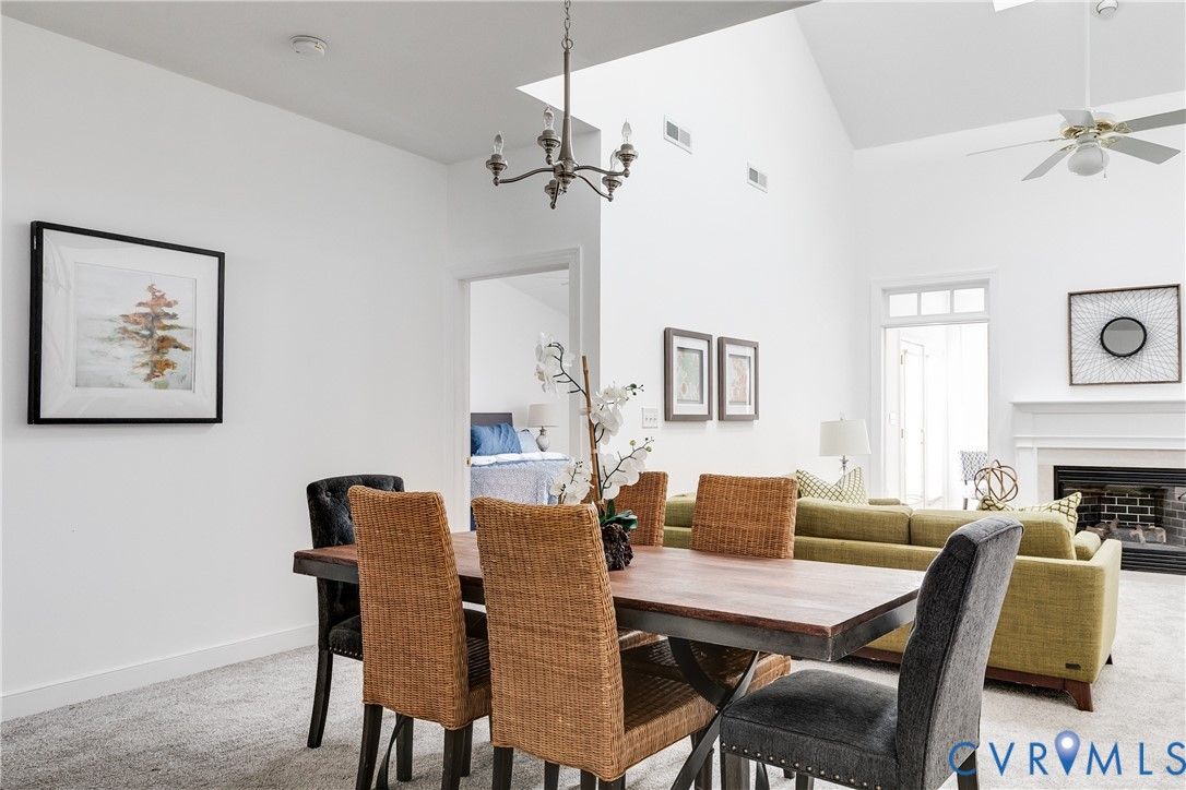 Welcome to 2209 Magnolia Way in the Pointe at Bellgrade! This 55+ community has all the convenience of maintenance-free living at the intersection of Bon Air and Midlothian in the Shoppes at Bellgrade. This unit features new neutral carpet, some stainless steel appliances, a brand-new water heater, and has been freshly painted throughout. It is MOVE-IN READY, just bring your things! There is a very nice covered front porch, open the door and step into a foyer with a generous coat closet and powder room. To your left is an eat-in kitchen with a breakfast nook in a bay window. The kitchen features a tile backsplash, stainless steel appliances, a breakfast bar, plenty of counters for work surface, and ample cabinet space. The main living area on the other side of the kitchen is a commanding double-height space, with a formal dining room area open to a generously sized living room with a gas fireplace for cozy winter nights. Behind the fireplace is a separate Florida room - not all units have this space! - with its own heating and cooling unit, which could be a great office, den, library. Access a charming concrete patio through the French doors for a charming spot to sit outside with your morning coffee. An oversized owner's suite with ensuite primary bathroom completes the first floor. The bedroom has a walk-in closet with plenty of space, the primary bath has a double vanity, separate soaking tub and stand-up shower. Upstairs there are two additional bedrooms and a Jack-and-Jill bathroom, as well as an open plan mezzanine for additional living space or another office. Additional features of the unit include a paved driveway and one-car garage with direct entry into the utility room/laundry room. Ample storage throughout the unit and all appliances convey. If you are looking for easy, maintenance-free living in a convenient Chesterfield location, this is a great opportunity! Don't miss it!